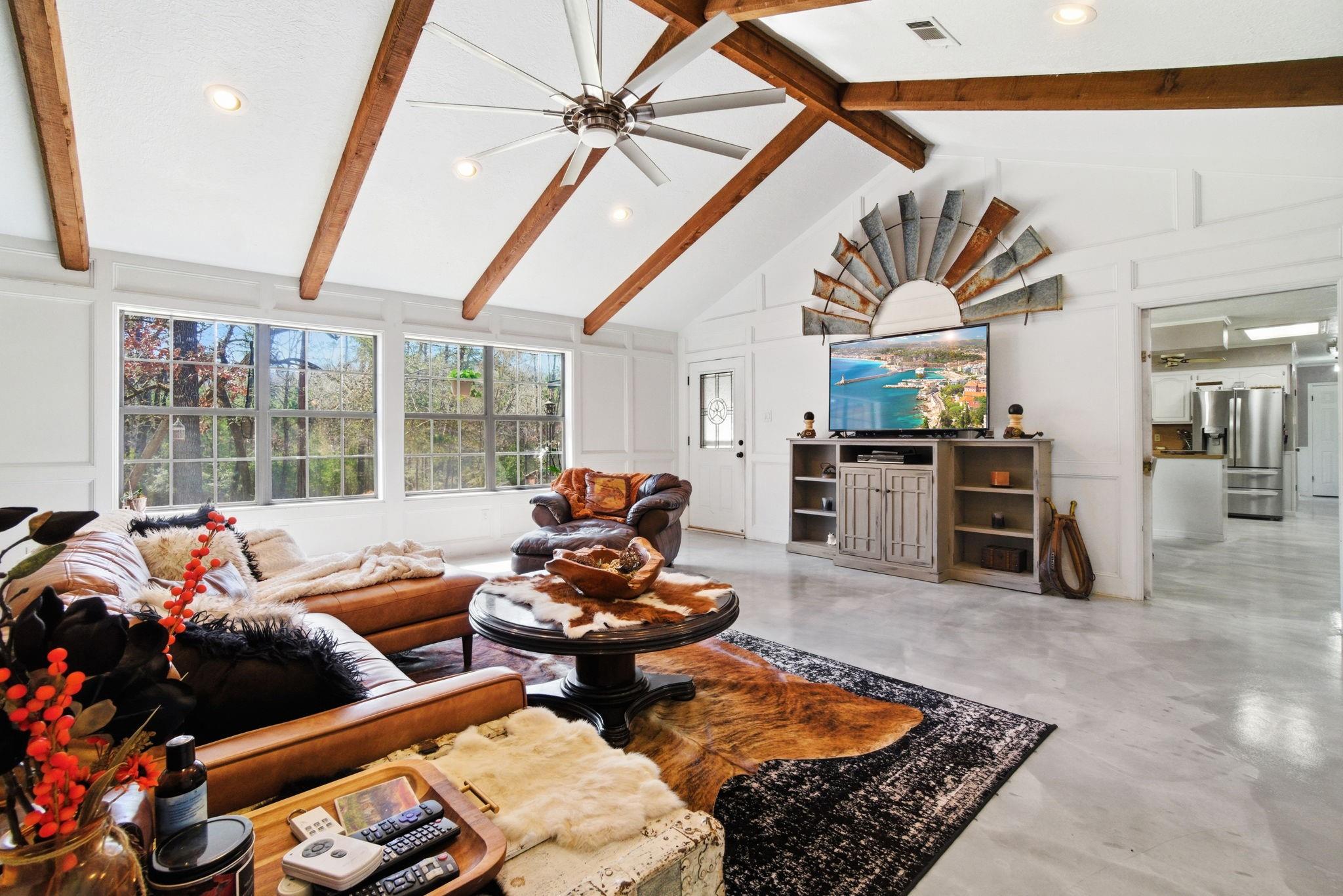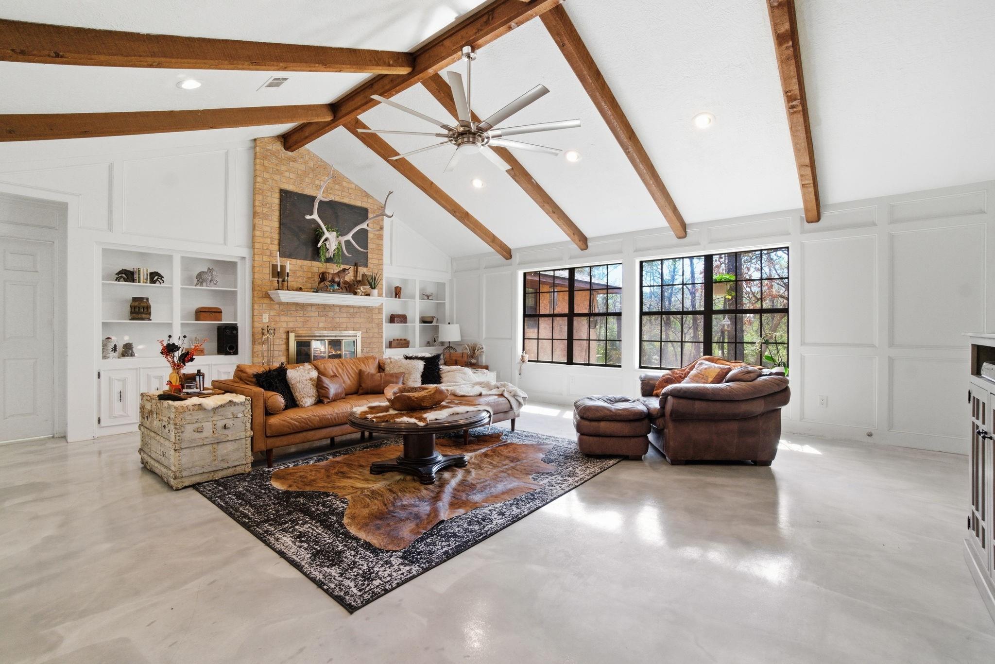InteriorFireplace:1/Wood Burning FireplaceFloors:Carpet,Concrete,Vinyl PlankBathroom Description:Primary Bath: Double Sinks,Primary Bath: Separate Shower,Primary Bath: Soaking Tub,Secondary Bath(s): Double Sinks,Secondary Bath(s): Tub/Shower ComboBedroom Desc:All Bedrooms Down,En-Suite Bath,Walk-In ClosetKitchen Desc:PantryRoom Description:Den,Home Office/Study,Kitchen/Dining Combo,Utility Room in HouseHeating:Central ElectricCooling:Central ElectricConnections:Electric Dryer Connections,Washer ConnectionsDishwasher:YesDisposal:YesCompactor:NoMicrowave:YesRange:Electric CooktopOven:Double Oven,Electric OvenEnergy Feature:Ceiling Fans,Digital Program ThermostatInterior:Fire/Smoke Alarm,High Ceiling,Water Softener - Owned