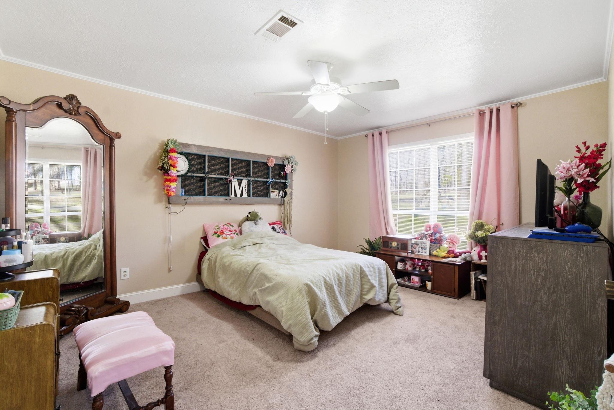 Welcome Home! Property offers: 4 beds, 3 baths, 3,152SF brick home on 4.5± acres in the desirable Pebble Creek subdivision off 350 N. Home office overlooks the serene, shaded front yard and could easily serve as a formal dining. Oversized living room features a wood-burning FP, vaulted ceilings and beautiful wood beams. Spacious kitchen offers abundant storage. The primary suite includes a soaking tub/separate shower. Exterior features: covered back porch, large backyard ideal for animal lovers (including chickens), attached 2-car garage, and detached garage perfect for a hobby space or additional living options. 40x24 metal shop with 3- 12' roll-up doors and covered parking offers opportunity for equipment storage or future outdoor kitchen space. Recent upgrades include roof, water heater, bathroom remodel, and whole-home water softener. Enjoy peaceful country living with abundant deer. Conveniently located 5 minutes from town. Escape the hustle and make this your forever home today.
