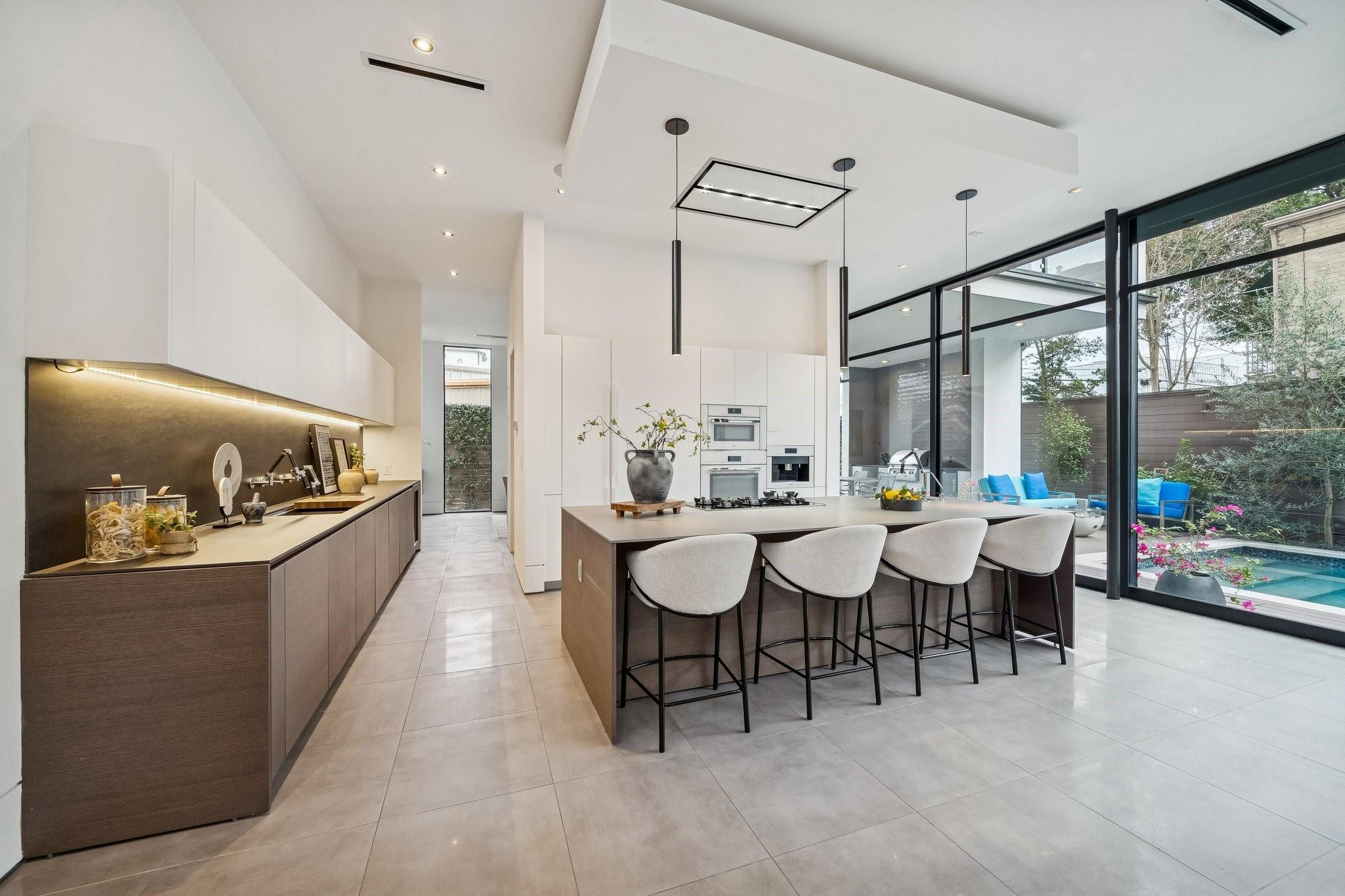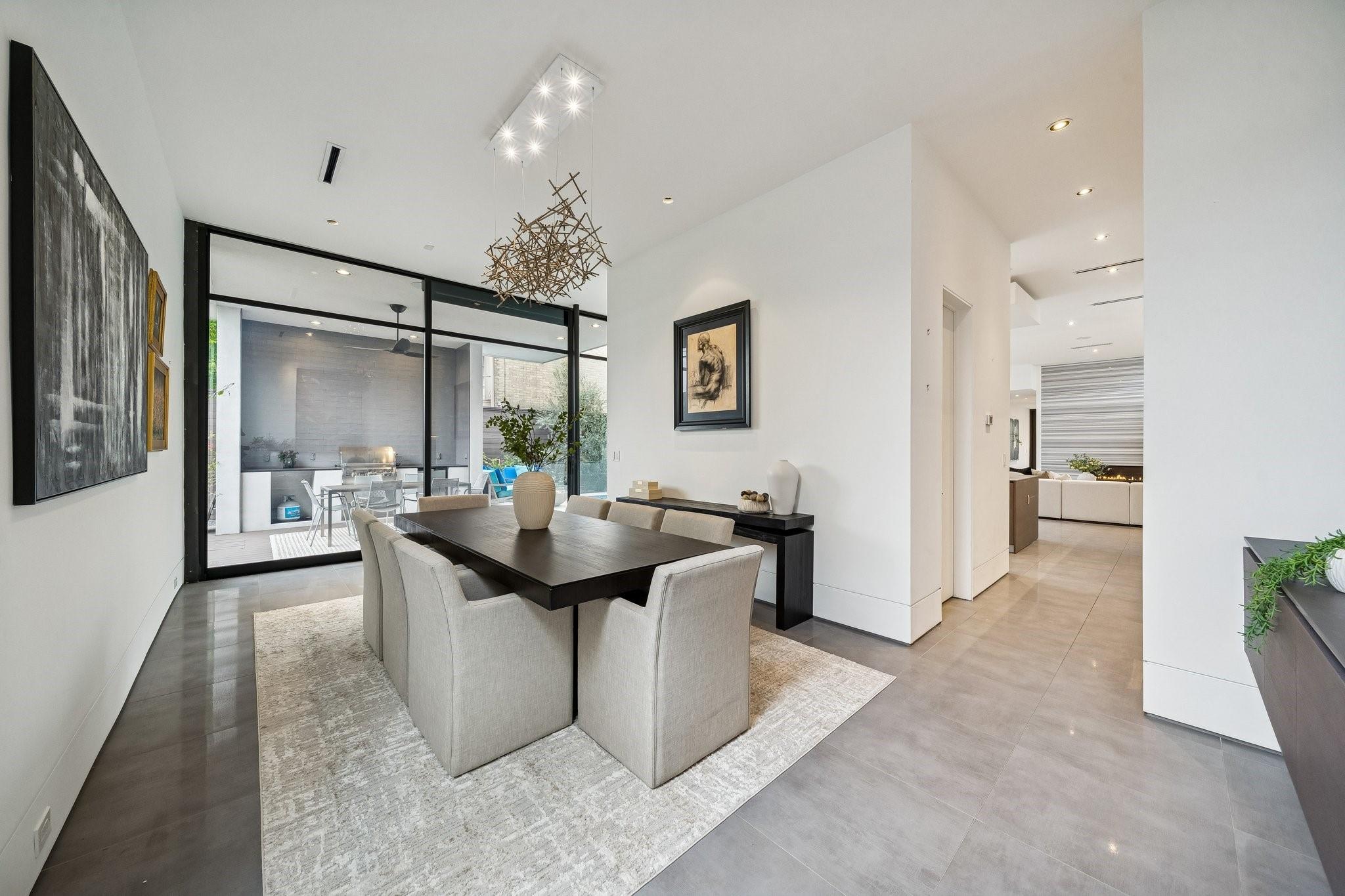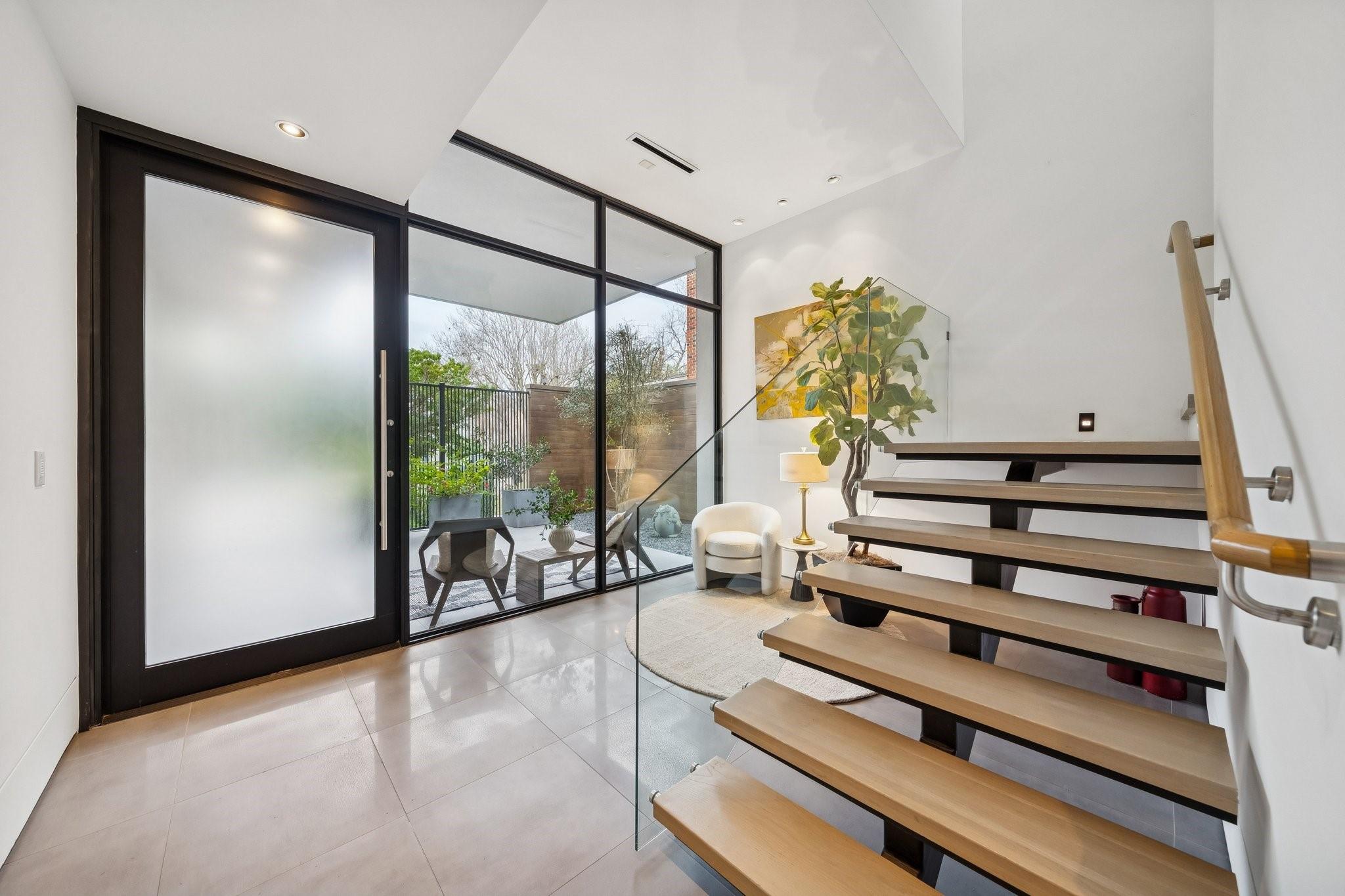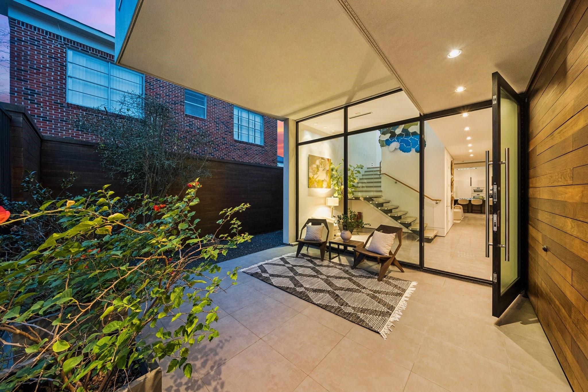 Striking modern architecture defines this exceptional residence in sought-after Southampton. Designed by Erick Ragni of Ragni Grady for Allegro Builders & featured on the 2016 AIA Home Tour, this 3-4 BD, 4 BA home is designed for seamless indoor-outdoor living w/ a private gated courtyard entry. Soaring ceilings, abundant natural light & expansive glass doors open the living spaces to a resort-style backyard w/ pool & covered patio w/summer kitchen. The 1st-floor open-concept living is anchored by a dramatic marble fireplace wall & chef’s kitchen w/ exclusive Italian Poliform cabinetry & Miele appliances. A dedicated study w/ adjacent full bath can also function as a 4th BD. A sculptural floating stairway leads upstairs to a flex living area, 2 en-suite BDs & primary suite w/ private balcony overlooking the pool. Add’l features incl. solar panels, EV charger, Savant system & elevator capability. Ideally located near Rice Univ., TX Med Center, dining, shopping & award-winning school