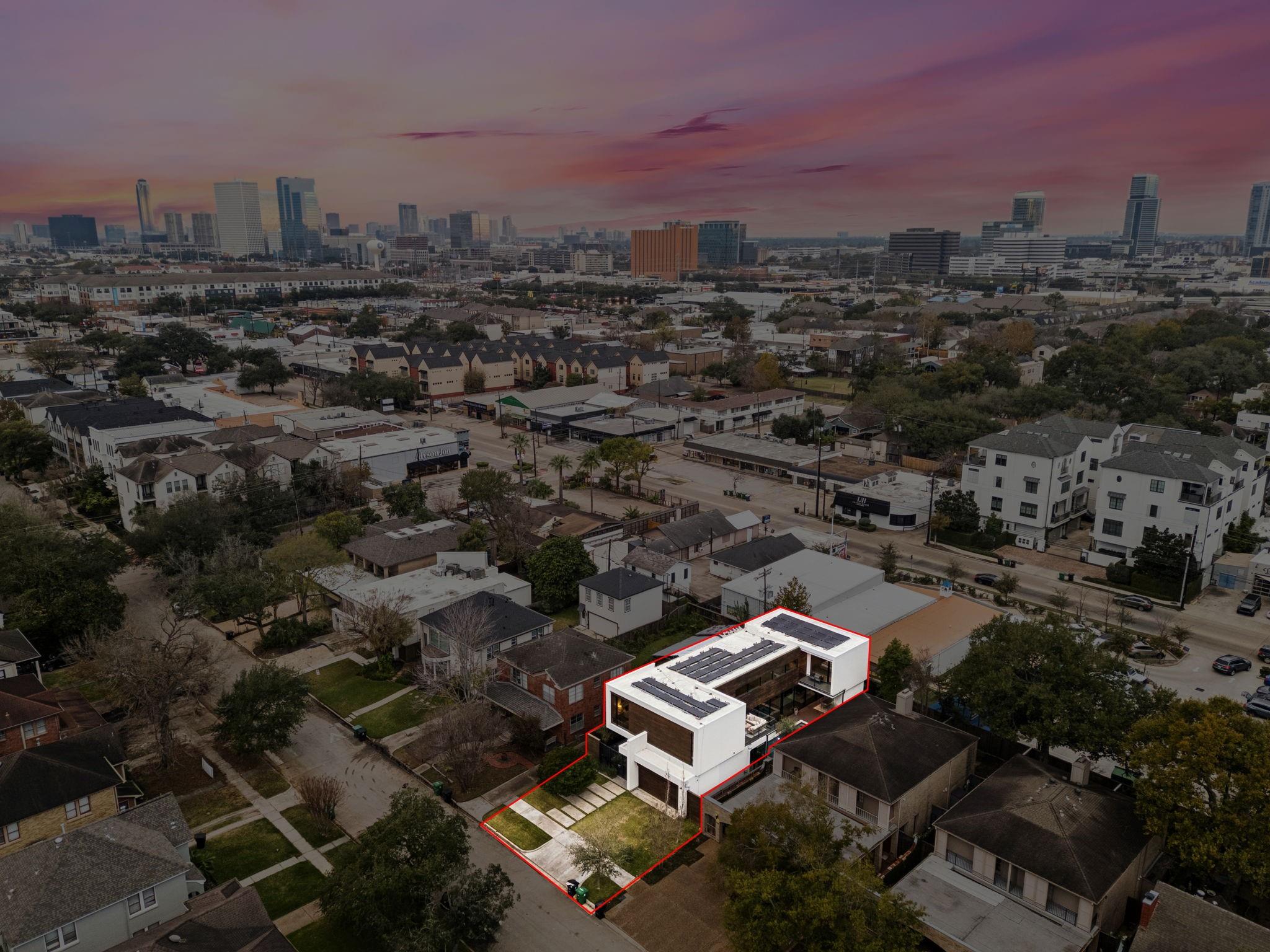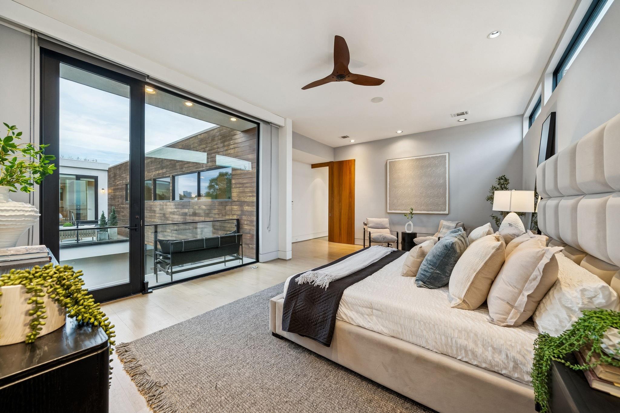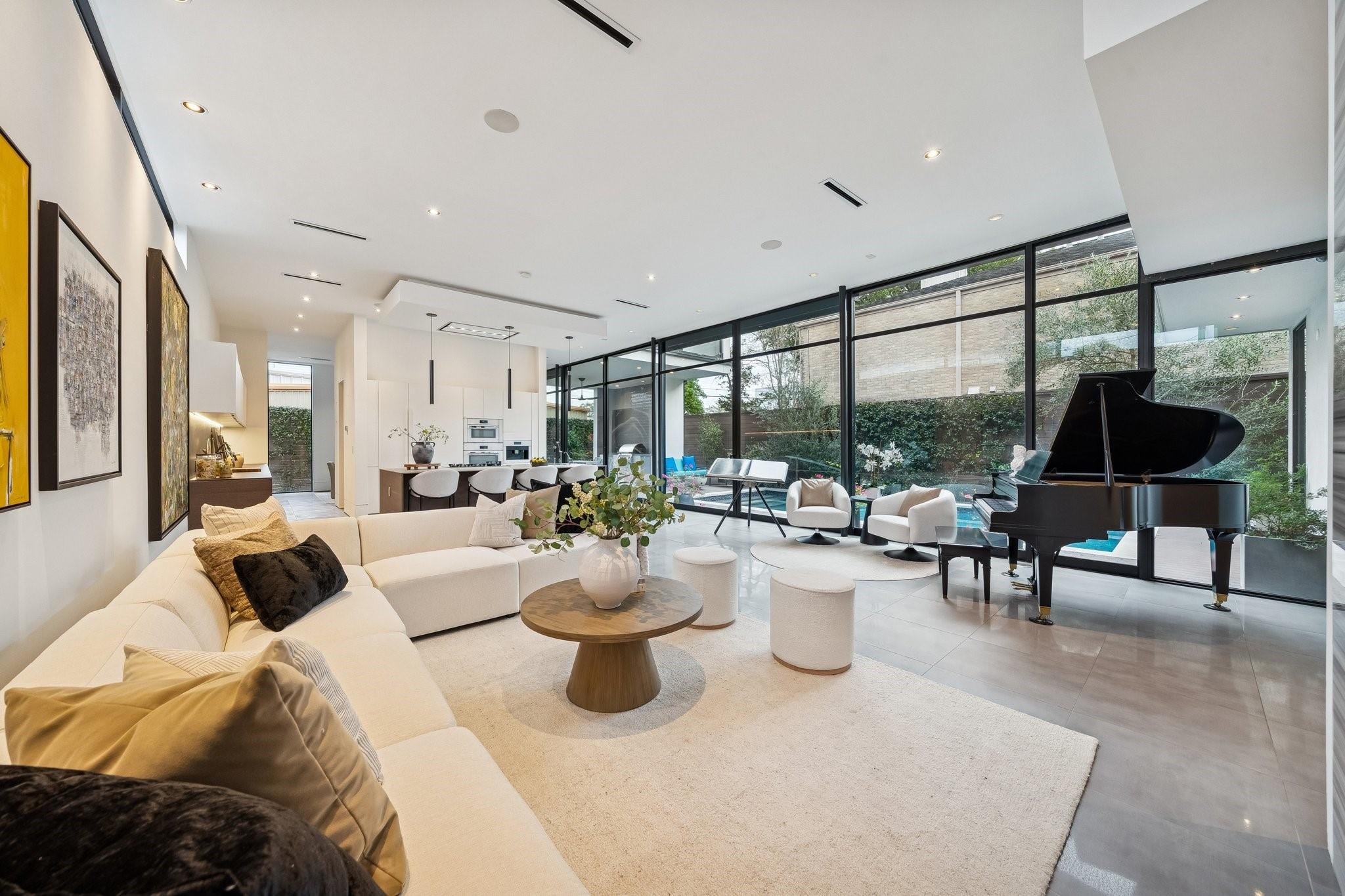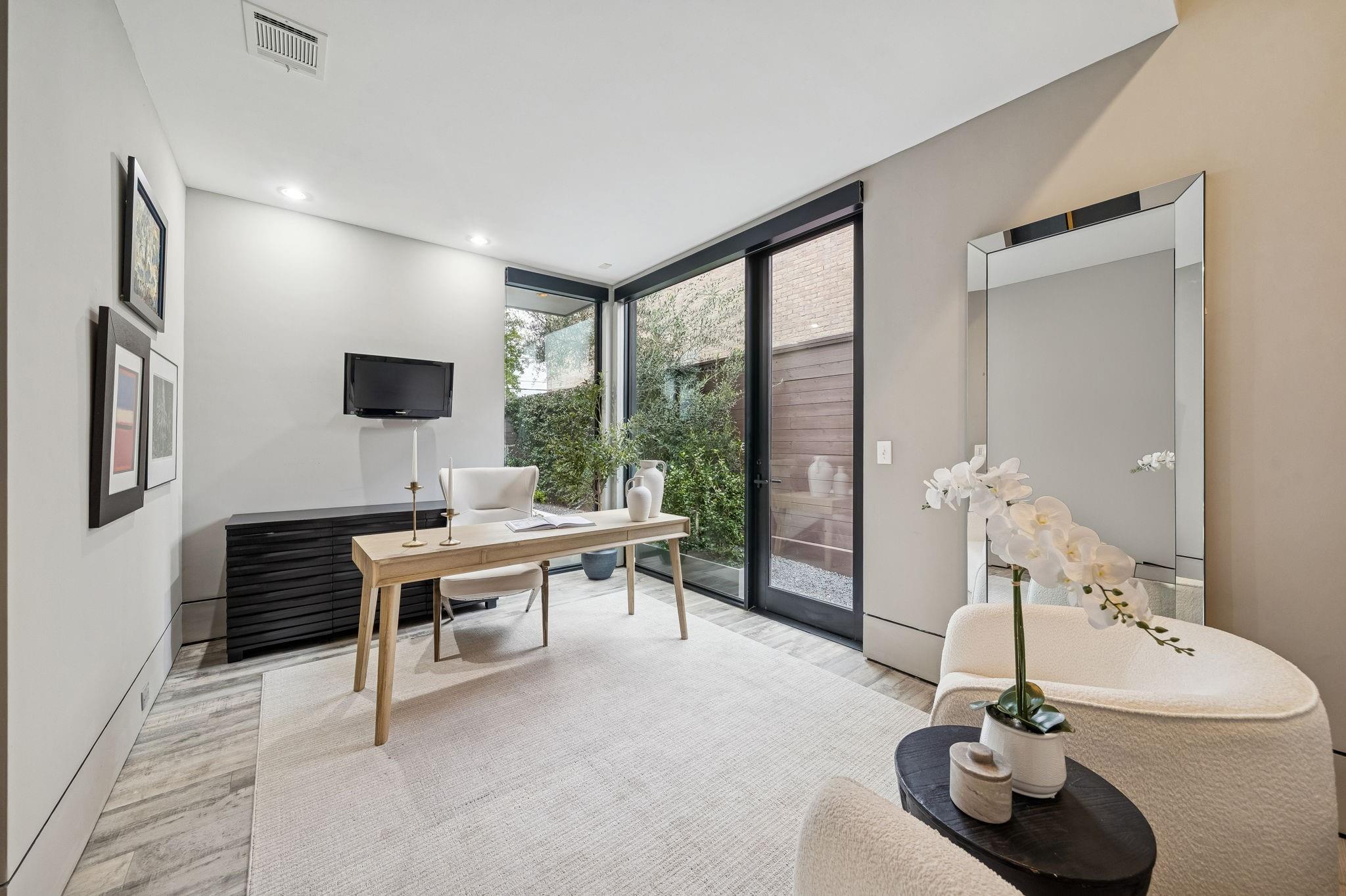 Striking modern architecture defines this exceptional residence in sought-after Southampton. Designed by Erick Ragni of Ragni Grady for Allegro Builders & featured on the 2016 AIA Home Tour, this 3-4 BD, 4 BA home is designed for seamless indoor-outdoor living w/ a private gated courtyard entry. Soaring ceilings, abundant natural light & expansive glass doors open the living spaces to a resort-style backyard w/ pool & covered patio w/summer kitchen. The 1st-floor open-concept living is anchored by a dramatic marble fireplace wall & chef’s kitchen w/ exclusive Italian Poliform cabinetry & Miele appliances. A dedicated study w/ adjacent full bath can also function as a 4th BD. A sculptural floating stairway leads upstairs to a flex living area, 2 en-suite BDs & primary suite w/ private balcony overlooking the pool. Add’l features incl. solar panels, EV charger, Savant system & elevator capability. Ideally located near Rice Univ., TX Med Center, dining, shopping & award-winning school