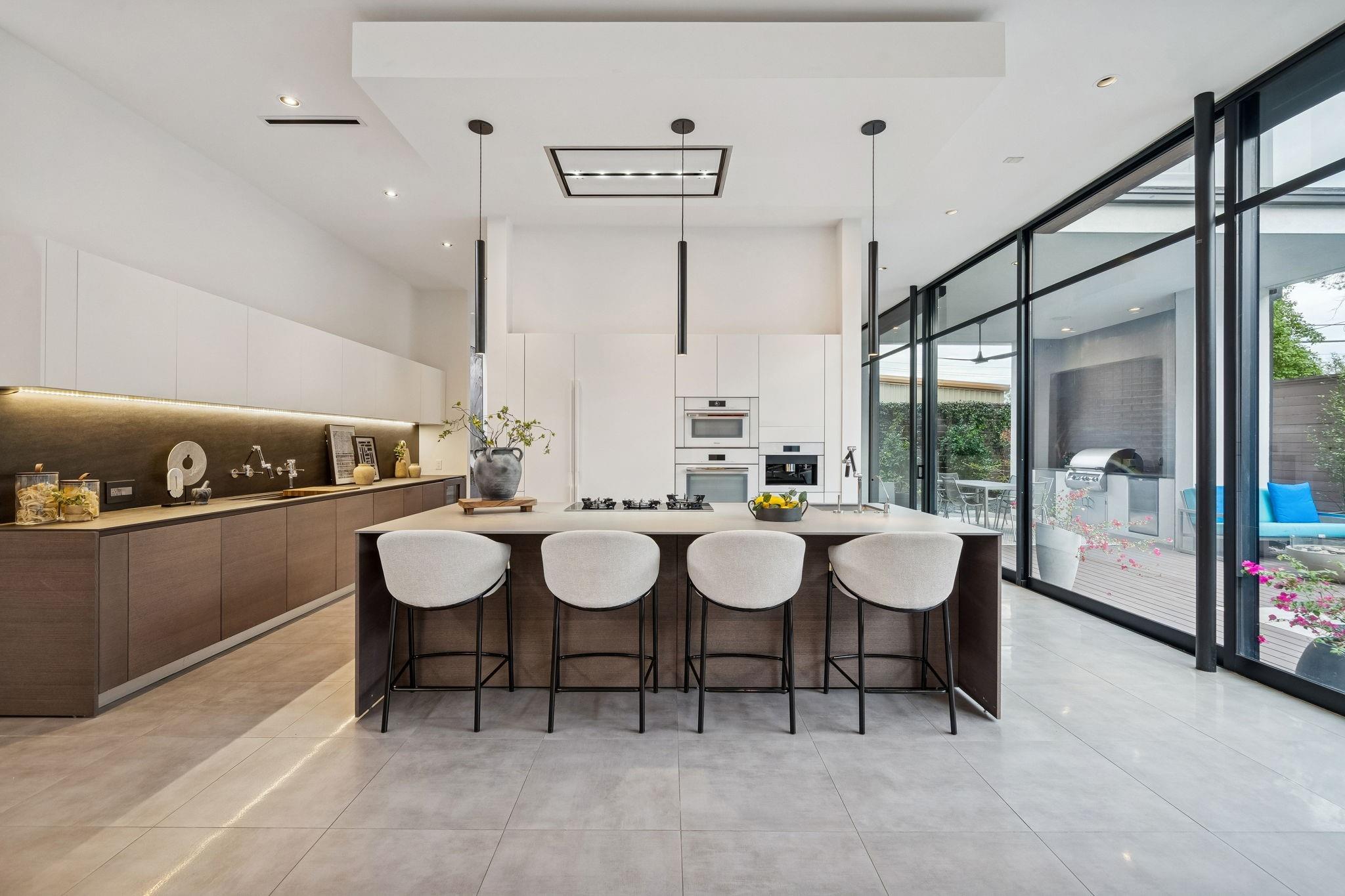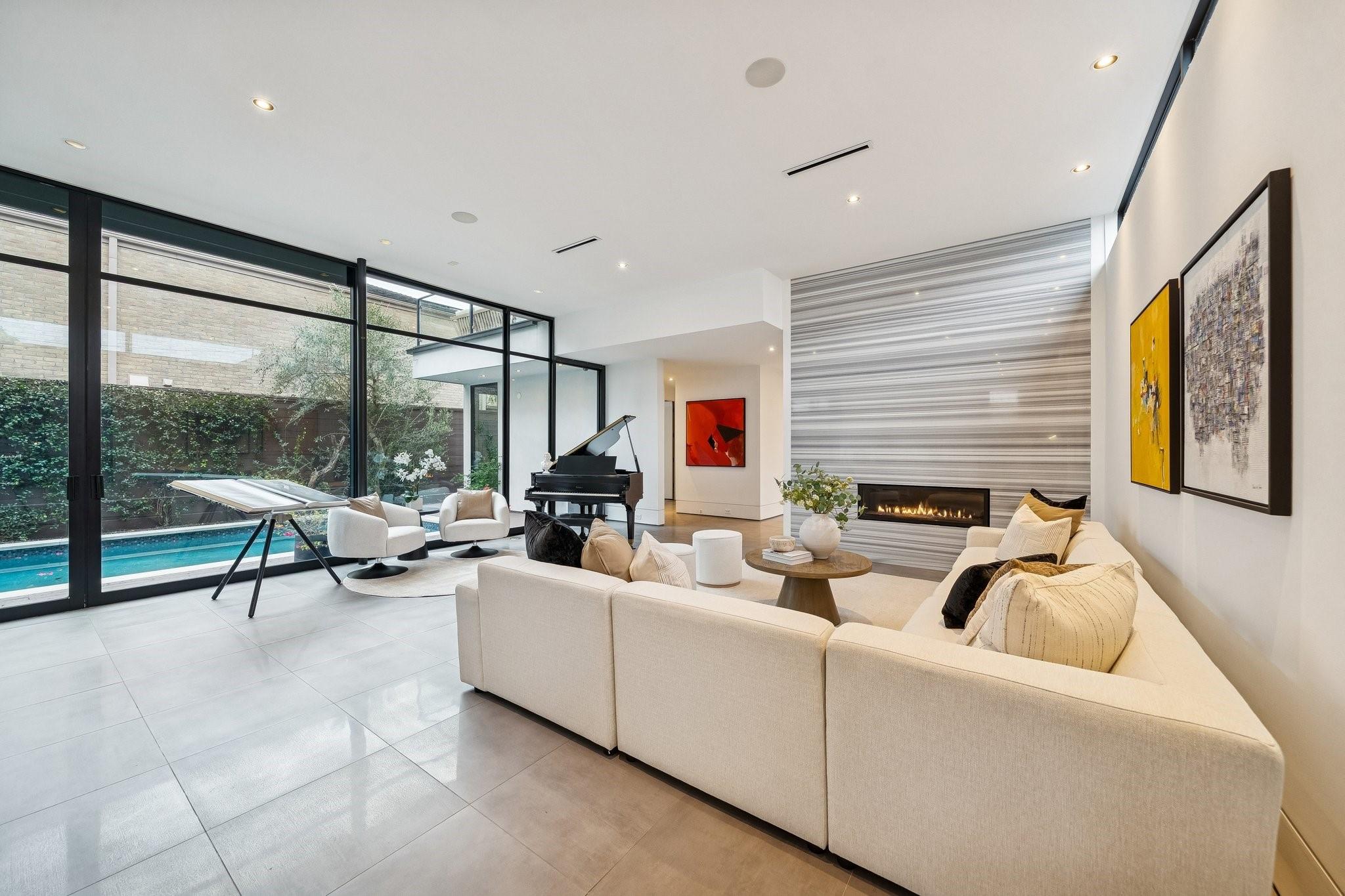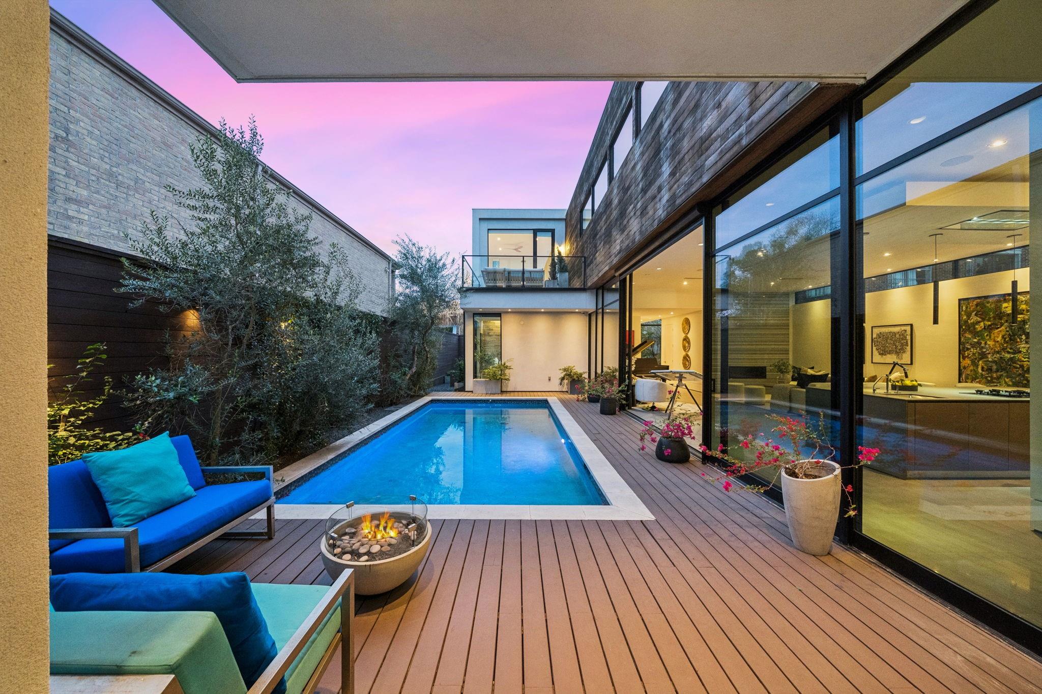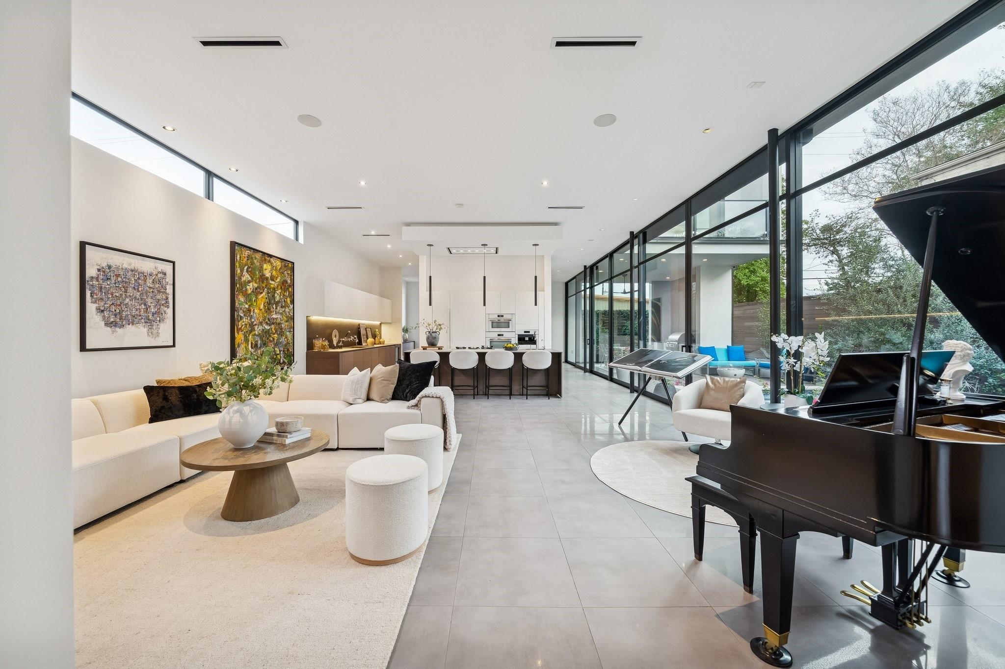 Striking modern architecture defines this exceptional residence in sought-after Southampton. Designed by Erick Ragni of Ragni Grady for Allegro Builders & featured on the 2016 AIA Home Tour, this 3-4 BD, 4 BA home is designed for seamless indoor-outdoor living w/ a private gated courtyard entry. Soaring ceilings, abundant natural light & expansive glass doors open the living spaces to a resort-style backyard w/ pool & covered patio w/summer kitchen. The 1st-floor open-concept living is anchored by a dramatic marble fireplace wall & chef’s kitchen w/ exclusive Italian Poliform cabinetry & Miele appliances. A dedicated study w/ adjacent full bath can also function as a 4th BD. A sculptural floating stairway leads upstairs to a flex living area, 2 en-suite BDs & primary suite w/ private balcony overlooking the pool. Add’l features incl. solar panels, EV charger, Savant system & elevator capability. Ideally located near Rice Univ., TX Med Center, dining, shopping & award-winning school
