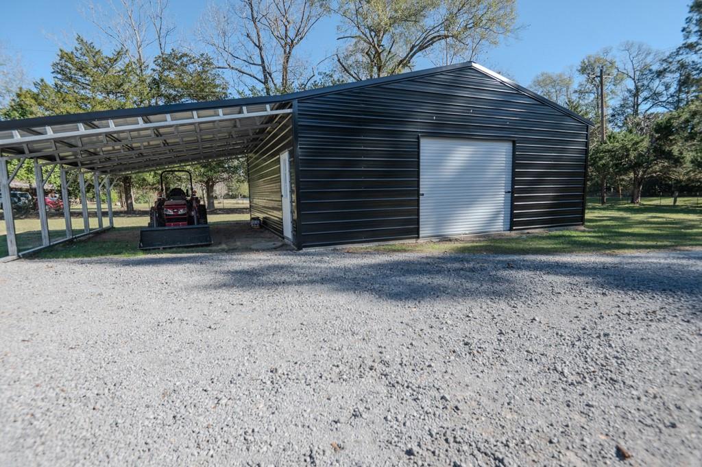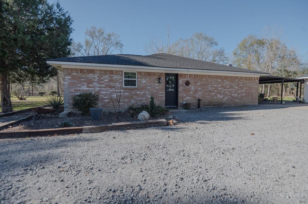 ExteriorRoof:CompositionFoundation:SlabPrivate Pool:NoExterior Type:BrickLot Description:Cleared,WoodedGarage Carport:Additional Parking,WorkshopWater Sewer:Public WaterExterior:Back Yard,Back Yard Fenced,Covered Patio/Deck,Cross Fenced,Fully Fenced,Porch,Private Driveway,Side Yard,Storage Shed,Workshop