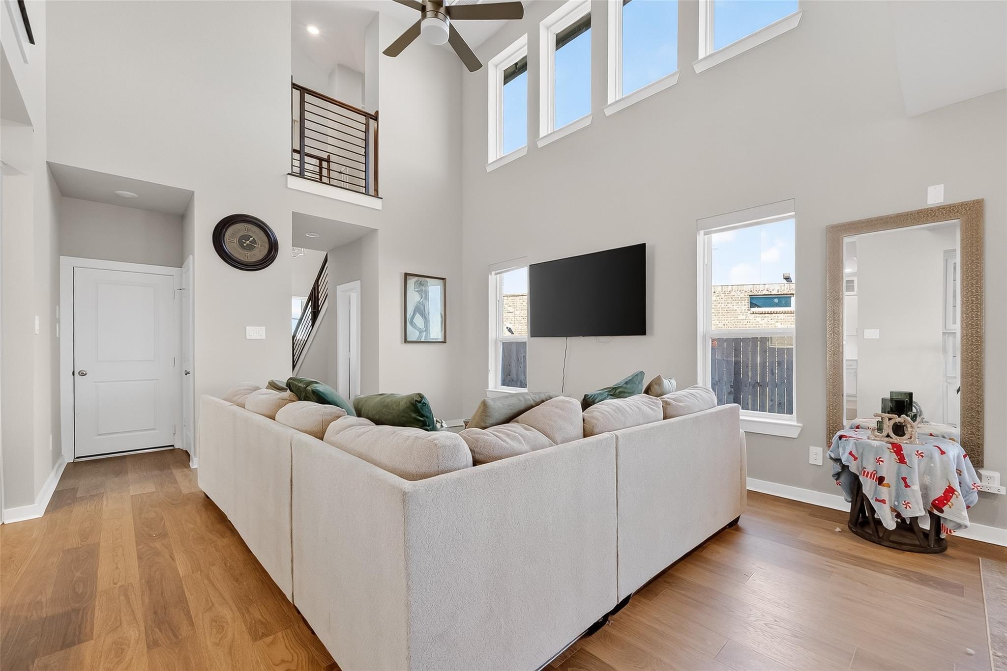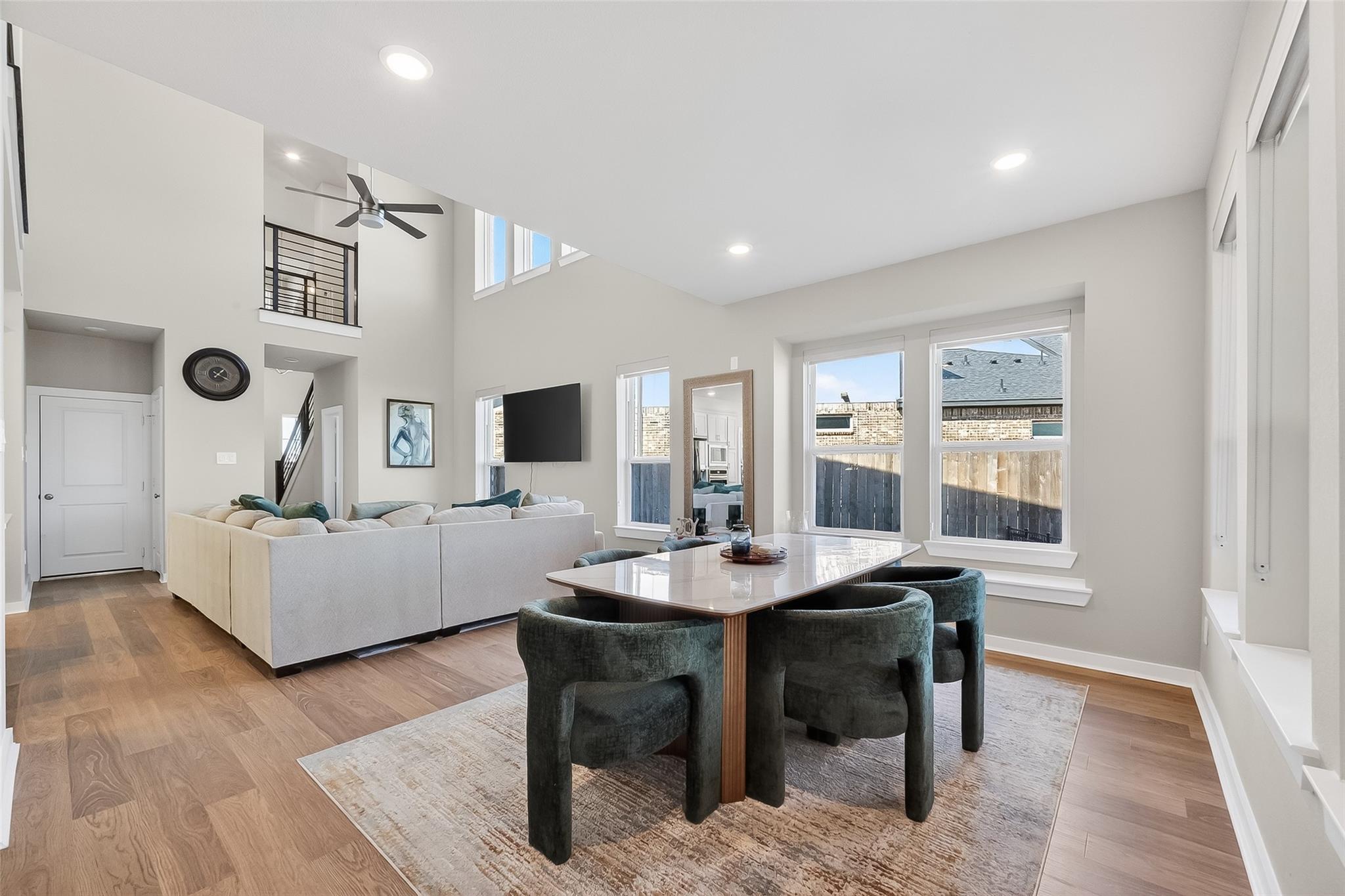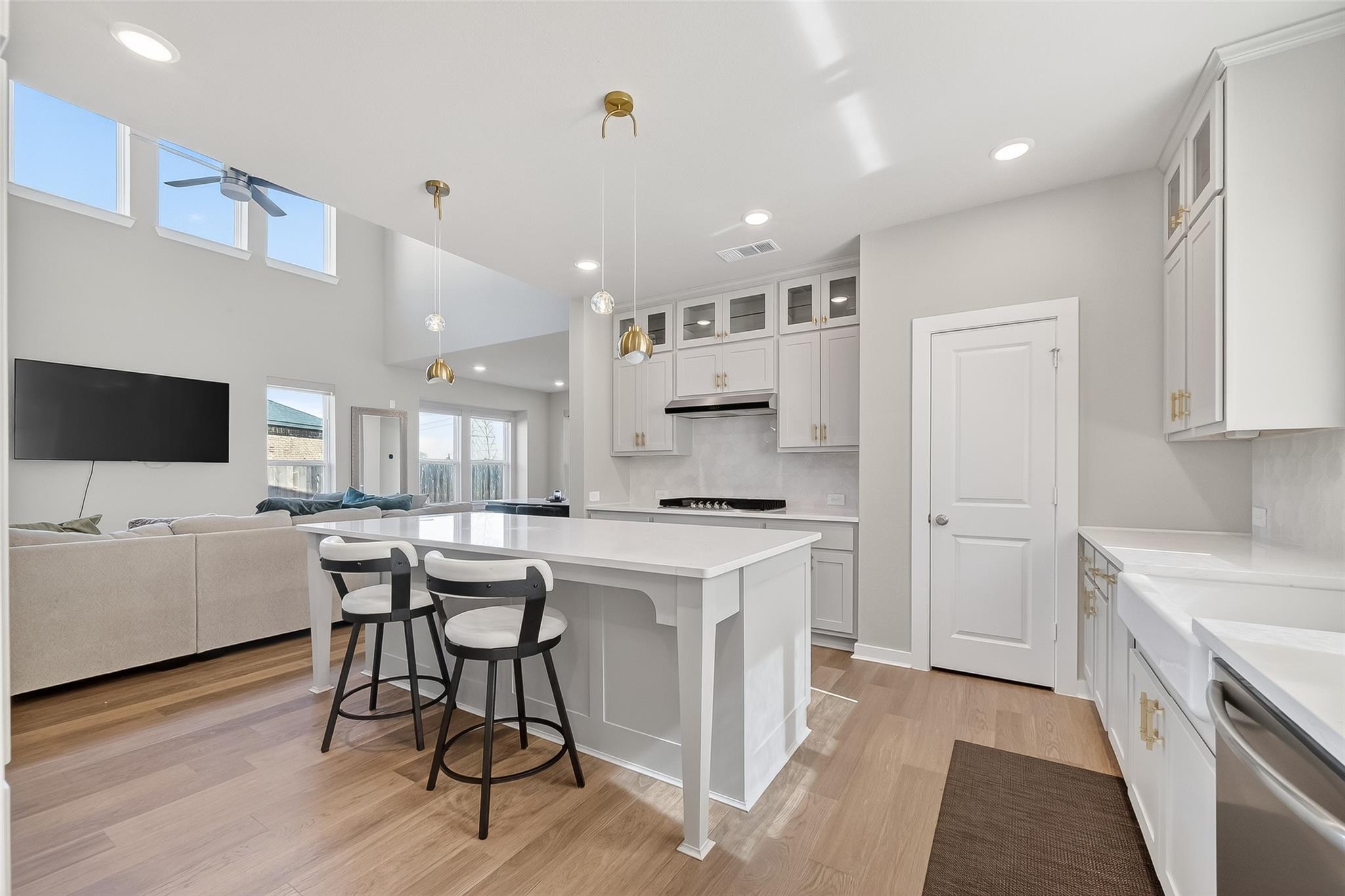 This nearly new highland home, completed in March 2025, offers extensive upgrades throughout and is located in an amazing, highly sought-after school district within the Harvest Green master-planned community. The gourmet kitchen is beautifully upgraded with high cabinets featuring glass tops, a statement farmhouse sink, modern cooktop, upgraded flooring, and a dedicated bar area, making it ideal for entertaining. The home also features upgraded carpet, spacious game room and media room, and an extended covered patio for outdoor enjoyment. Situated on a large cul-de-sac lot with no back neighbors, this home provides exceptional privacy while offering easy access to major freeways for convenient commuting. Residents enjoy access to resort-style amenities including community pools, parks, trails, and fitness facilities. Thoughtfully designed for comfort and function, this home offers modern living with privacy, upgrades, and convenience all in one.