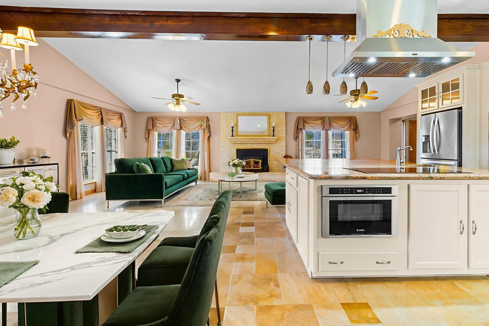 InteriorFireplace:2/Wood Burning FireplaceFloors:Carpet,Stone,TileBedroom Desc:2 Bedrooms Up,En-Suite Bath,Primary Bed - 1st FloorKitchen Desc:Island w/ Cooktop,Kitchen open to Family RoomRoom Description:Family Room,Guest Suite w/Kitchen,Living Area - 1st Floor,Utility Room in HouseHeating:Central Electric,Heat PumpCooling:Central Electric,Heat PumpConnections:Electric Dryer Connections,Washer ConnectionsDishwasher:YesDisposal:NoCompactor:NoMicrowave:YesRange:Electric CooktopOven:Double OvenIce Maker:NoEnergy Feature:Ceiling Fans,Digital Program Thermostat,Energy Star Appliances,Insulation - BattInterior:Formal Entry/Foyer,Window Coverings