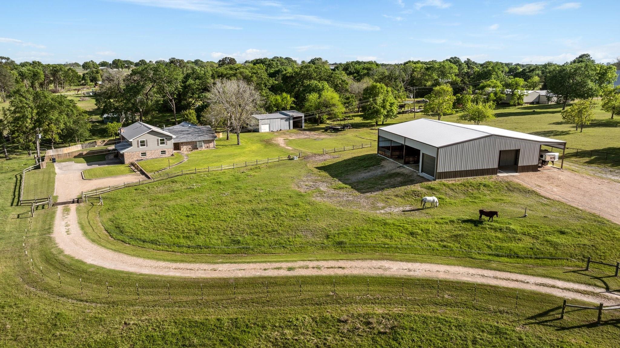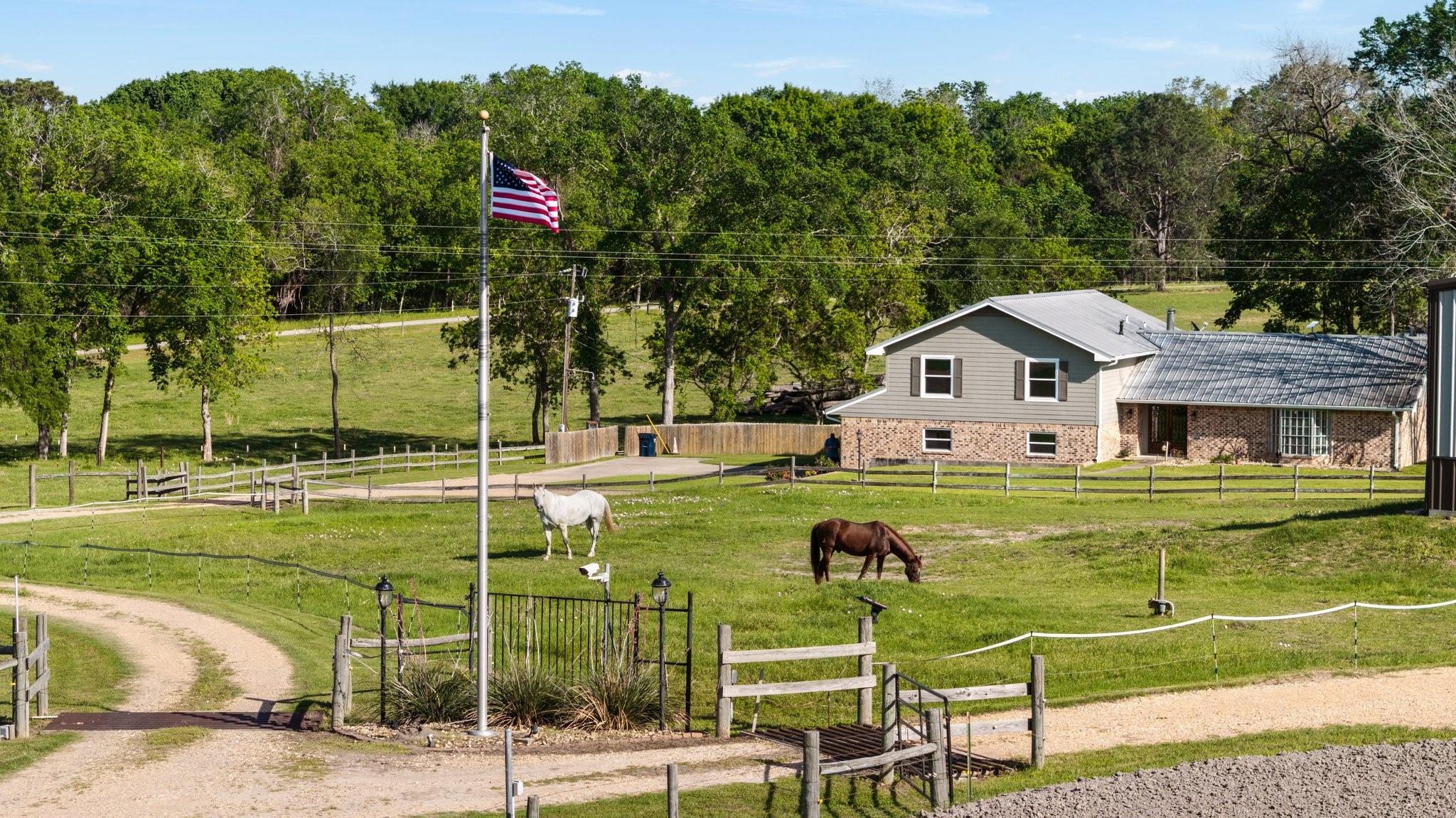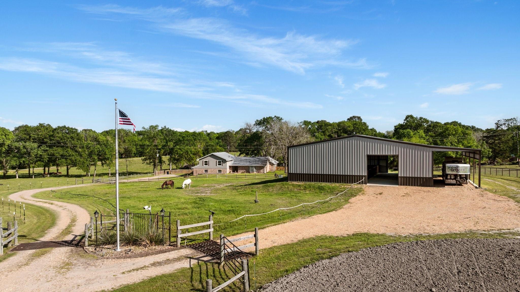 OPEN TO NEGOTIATING SERIOUS OFFERS/ SELLER FINANCING AVAILABLE WITH RIGHT AMOUNT DOWN - Live your American Dream with horses, cows, & more on an 11.7-acre ranchette in Brenham, TX. This 3,594 SF home offers 4/5 bedrooms, 3.5 baths, & a thoughtful mix of vintage country charm and modern updates. Features include a metal roof, spacious kitchen with granite island, potbelly stove, walk-in appliance pantry, living room with bay window, and a primary suite with renovated bath, multiple closets, and French doors leading to the pool and deck. Upstairs includes a second primary option, two additional bedrooms, and large office. Lower lounge offers a bar area and brick fireplace. Recent updates include new windows, gutters, & upstairs electrical, plumbing, & HVAC. Outside, enjoy a pool, large workshop, 4,875 SF barn/stable with 3-6 stalls, 10,400 SF dirt riding arena, cattle barn, pond, chicken coop, and mature oaks. Pool house provides extra storage. Cross-fenced with electric fencing.