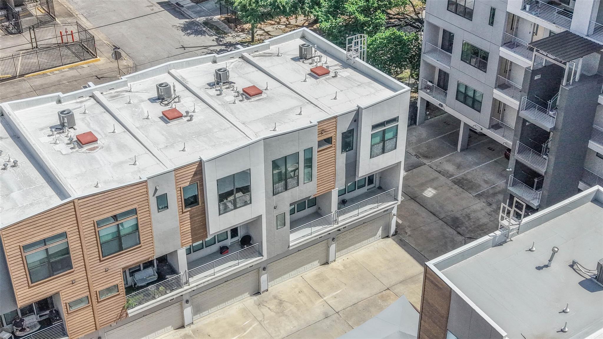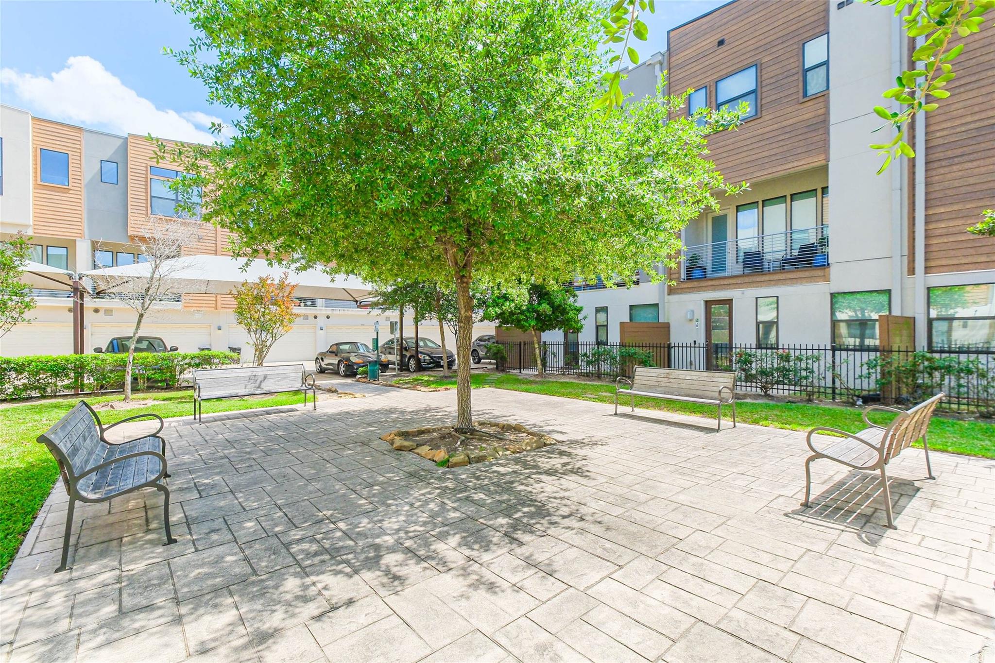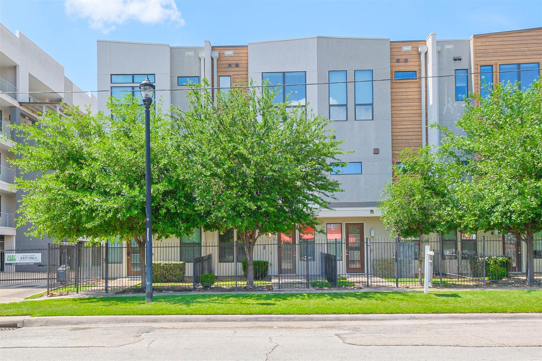 Location! Location! Location! Contemporary 3 bedroom, 3.5 bath townhome with 2 car garage in a gated community in the heart of vibrant Midtown. Plenty of on street parking for your guests outside the community and they may be greeted at your private front door, accessed through your personal yard space at the front of the home. This three story residence has one bedroom w/private full bath located on the ground floor, second floor open concept kitchen/living and dining with access to spacious balcony with gas hook up for a barbecue, and two bedrooms, each with private ensuite, on the third level. Easy access to MetroRail ( 6 blocks away), Midtown and Baldwin Parks, the Museum District & Hermann Park, Downtown and the Medical Center. All kitchen appliances, washer & dryer included. The Parc at Midtown community has a park for residents, pet area and security cameras.