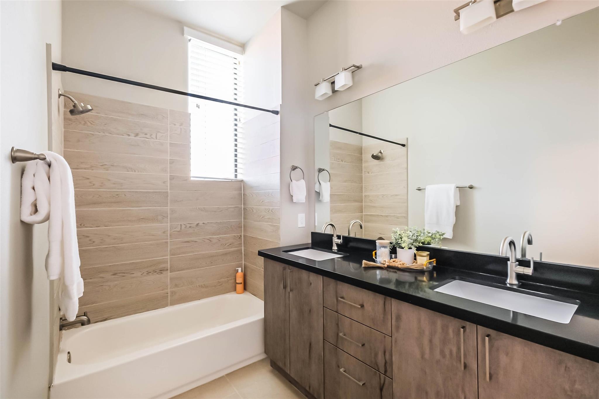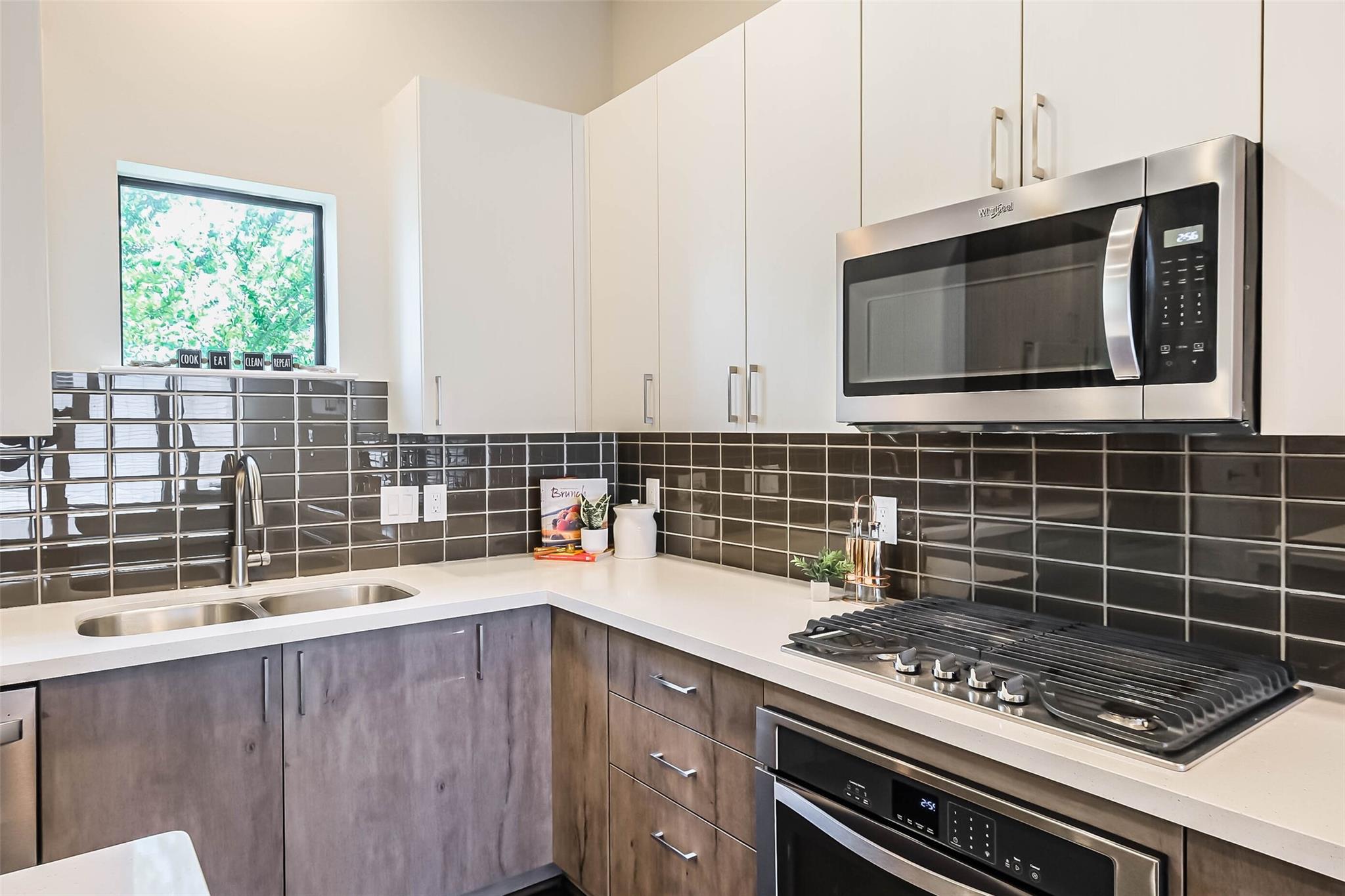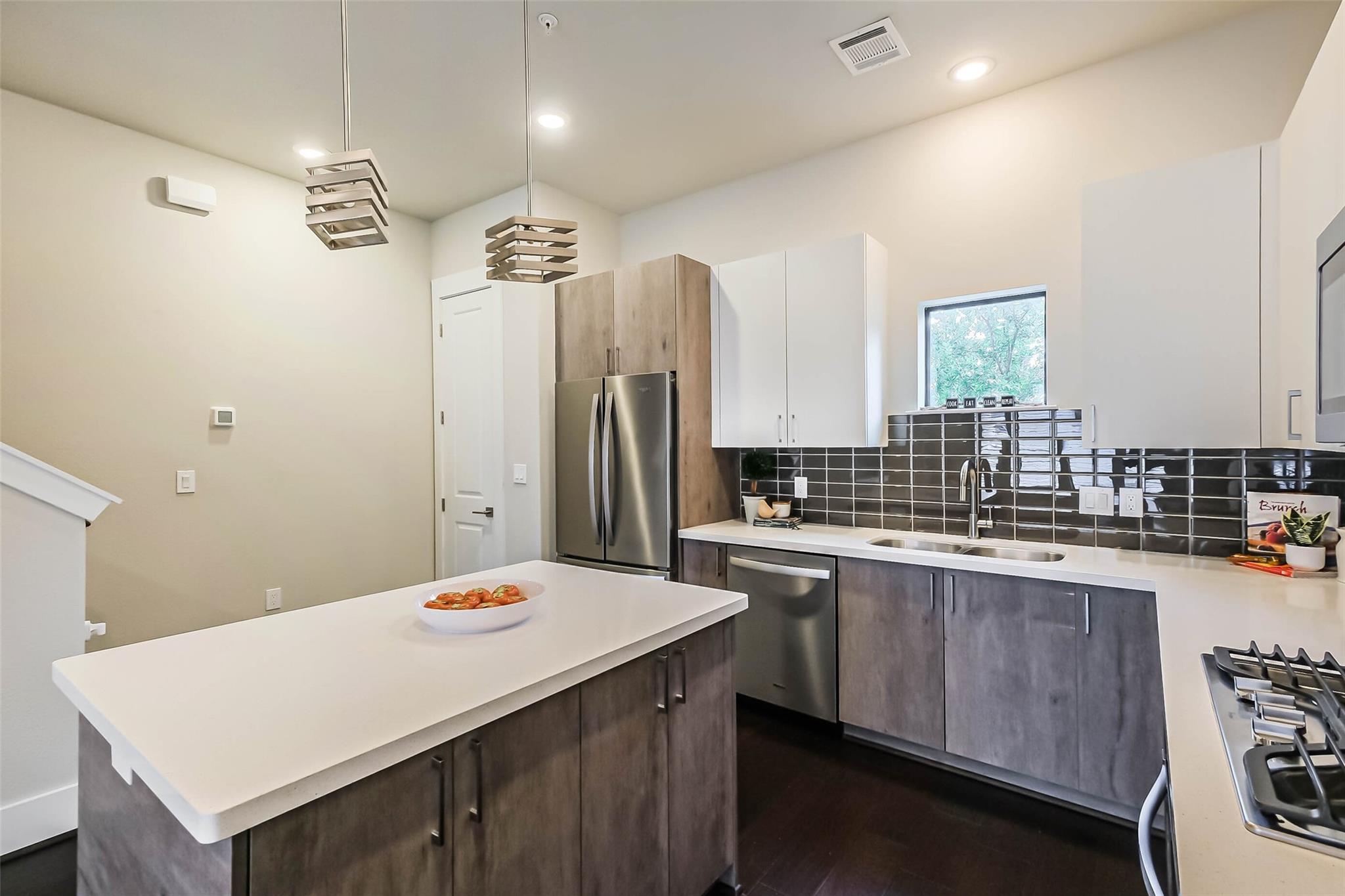 Location! Location! Location! Contemporary 3 bedroom, 3.5 bath townhome with 2 car garage in a gated community in the heart of vibrant Midtown. Plenty of on street parking for your guests outside the community and they may be greeted at your private front door, accessed through your personal yard space at the front of the home. This three story residence has one bedroom w/private full bath located on the ground floor, second floor open concept kitchen/living and dining with access to spacious balcony with gas hook up for a barbecue, and two bedrooms, each with private ensuite, on the third level. Easy access to MetroRail ( 6 blocks away), Midtown and Baldwin Parks, the Museum District & Hermann Park, Downtown and the Medical Center. All kitchen appliances, washer & dryer included. The Parc at Midtown community has a park for residents, pet area and security cameras.
