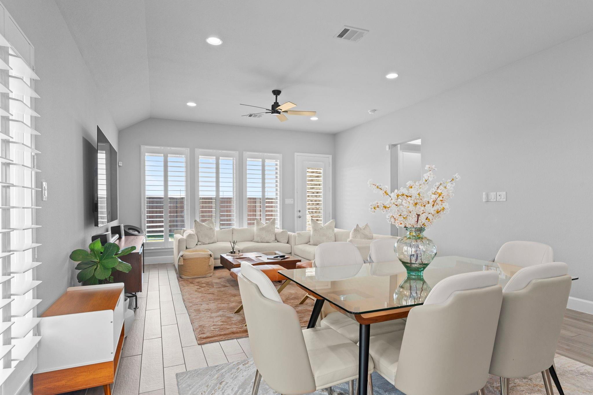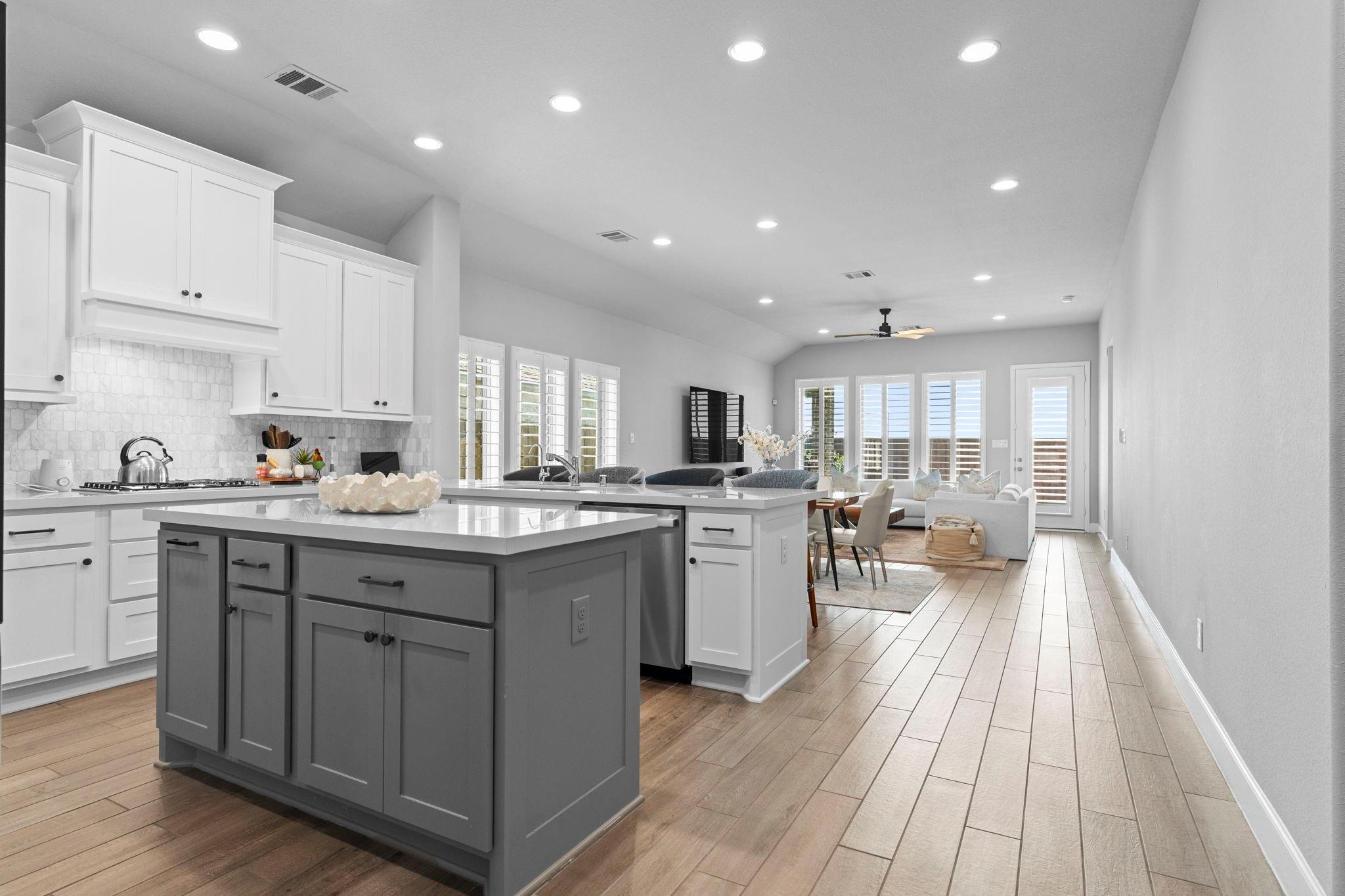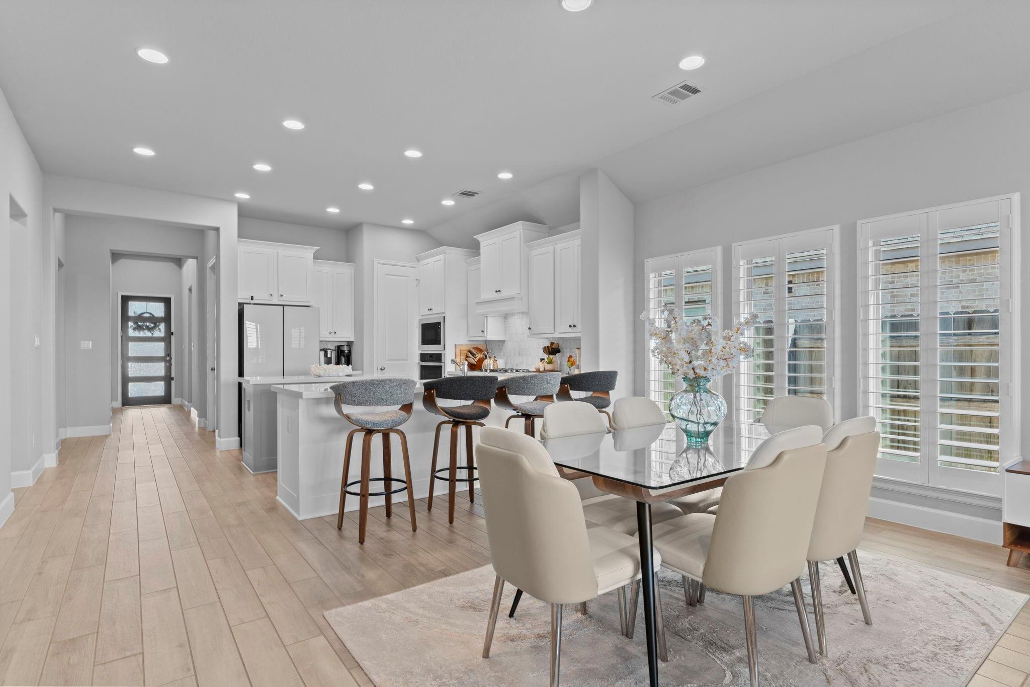 This gorgeous Perry home welcomes you with a grand 12-foot entry that flows into an open kitchen, dining, and family room with 10-foot ceilings. The chef’s kitchen features a large island with seating and a 5-burner gas cooktop. Packed with upgrades—whole-home generator wiring, premium plantation shutters, state-of-the-art water filtration, epoxy garage floor, and an outdoor gas line. Home also comes included with high end energy efficient appliances including fridge and washer dryer. The family room and primary suite both boast walls of windows. The spa-style primary bath includes dual vanities, garden tub, glass-enclosed shower, and a large walk-in closet. Enjoy the covered patio and a convenient mud room off the 2-car garage.