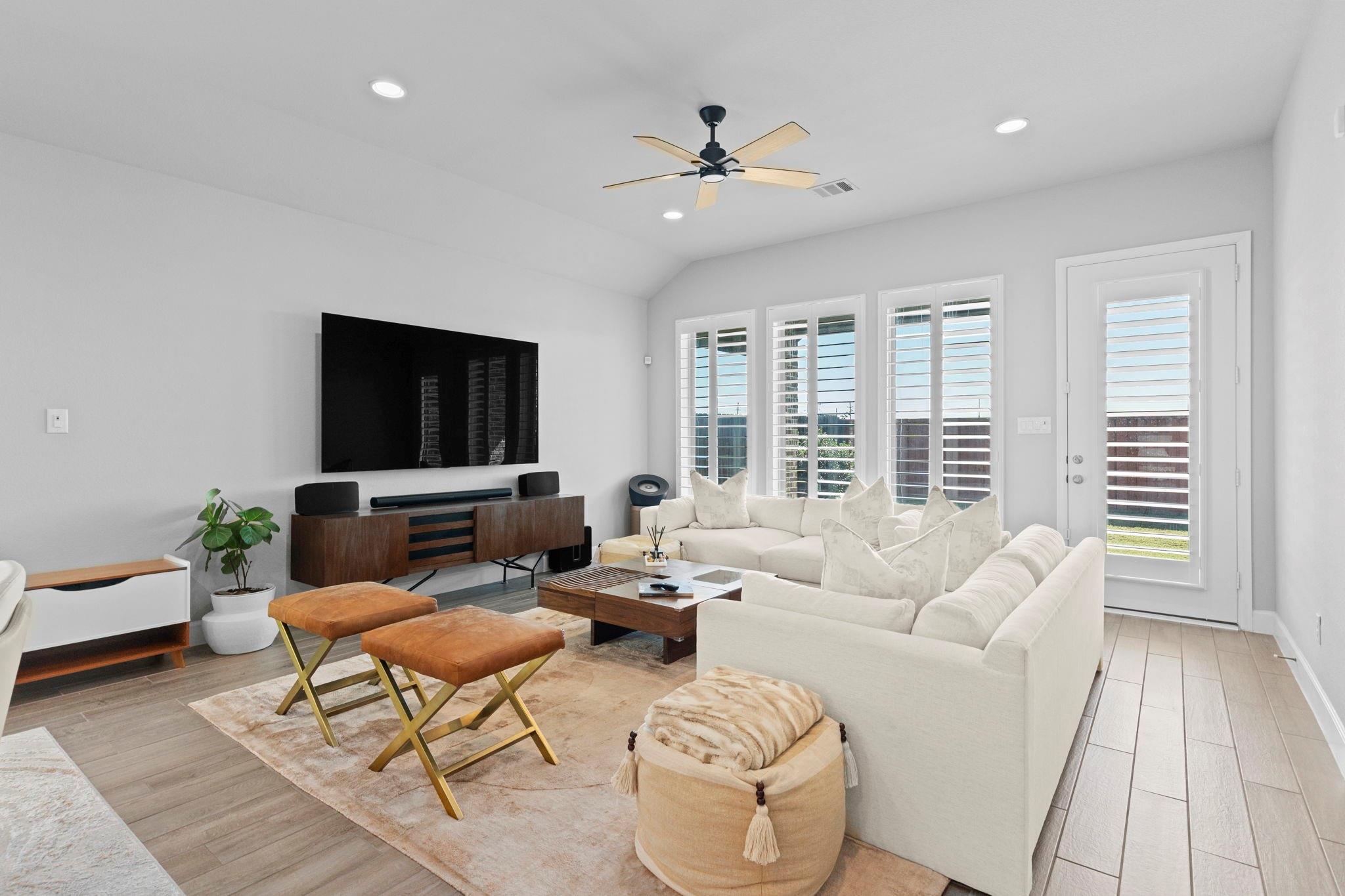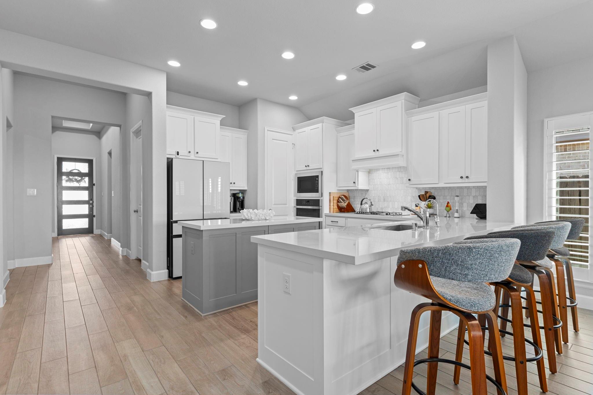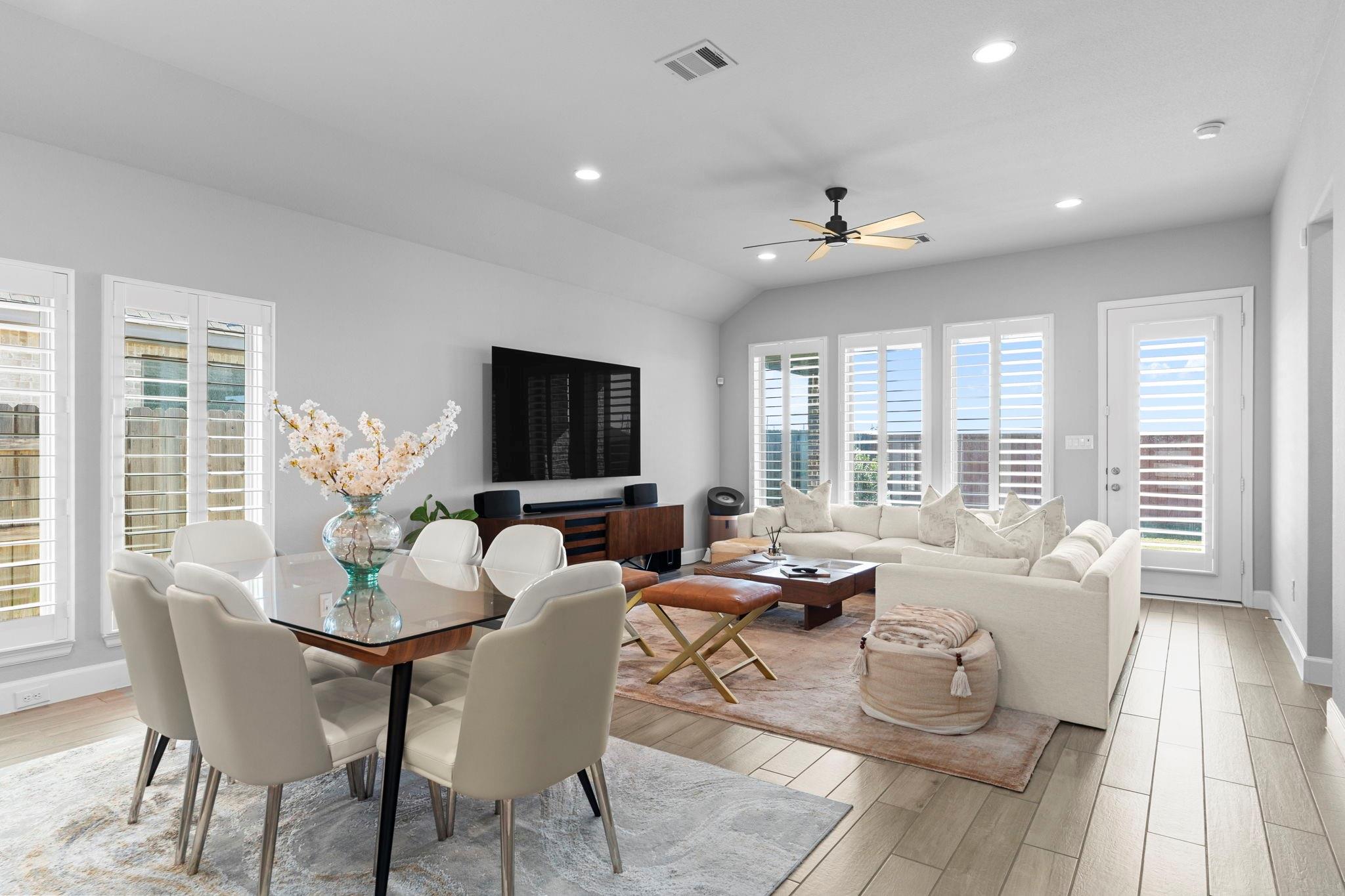 This gorgeous Perry home welcomes you with a grand 12-foot entry that flows into an open kitchen, dining, and family room with 10-foot ceilings. The chef’s kitchen features a large island with seating and a 5-burner gas cooktop. Packed with upgrades—whole-home generator wiring, premium plantation shutters, state-of-the-art water filtration, epoxy garage floor, and an outdoor gas line. Home also comes included with high end energy efficient appliances including fridge and washer dryer. The family room and primary suite both boast walls of windows. The spa-style primary bath includes dual vanities, garden tub, glass-enclosed shower, and a large walk-in closet. Enjoy the covered patio and a convenient mud room off the 2-car garage.
