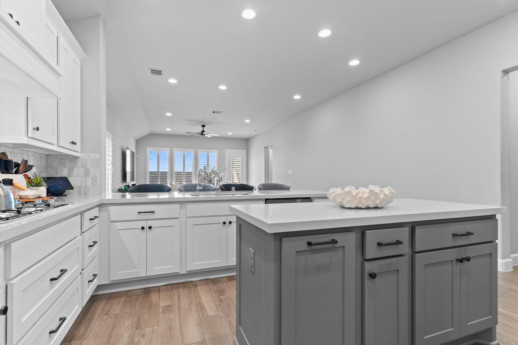 InteriorFloors:Carpet,TileCountertop:QuartzBathroom Description:Primary Bath: Double Sinks,Primary Bath: Separate Shower,Vanity AreaBedroom Desc:All Bedrooms Down,Walk-In ClosetKitchen Desc:Kitchen open to Family Room,Soft Closing Cabinets,Soft Closing Drawers,Under Cabinet Lighting,Walk-in PantryRoom Description:Family Room,Formal Dining,Home Office/Study,Kitchen/Dining Combo,Utility Room in HouseHeating:Central ElectricCooling:Central ElectricConnections:Electric Dryer ConnectionsDishwasher:YesDisposal:YesMicrowave:YesOven:Gas OvenInterior:Alarm System - Leased,Fire/Smoke Alarm,High Ceiling,Prewired for Alarm System,Water Softener - Owned,Window Coverings