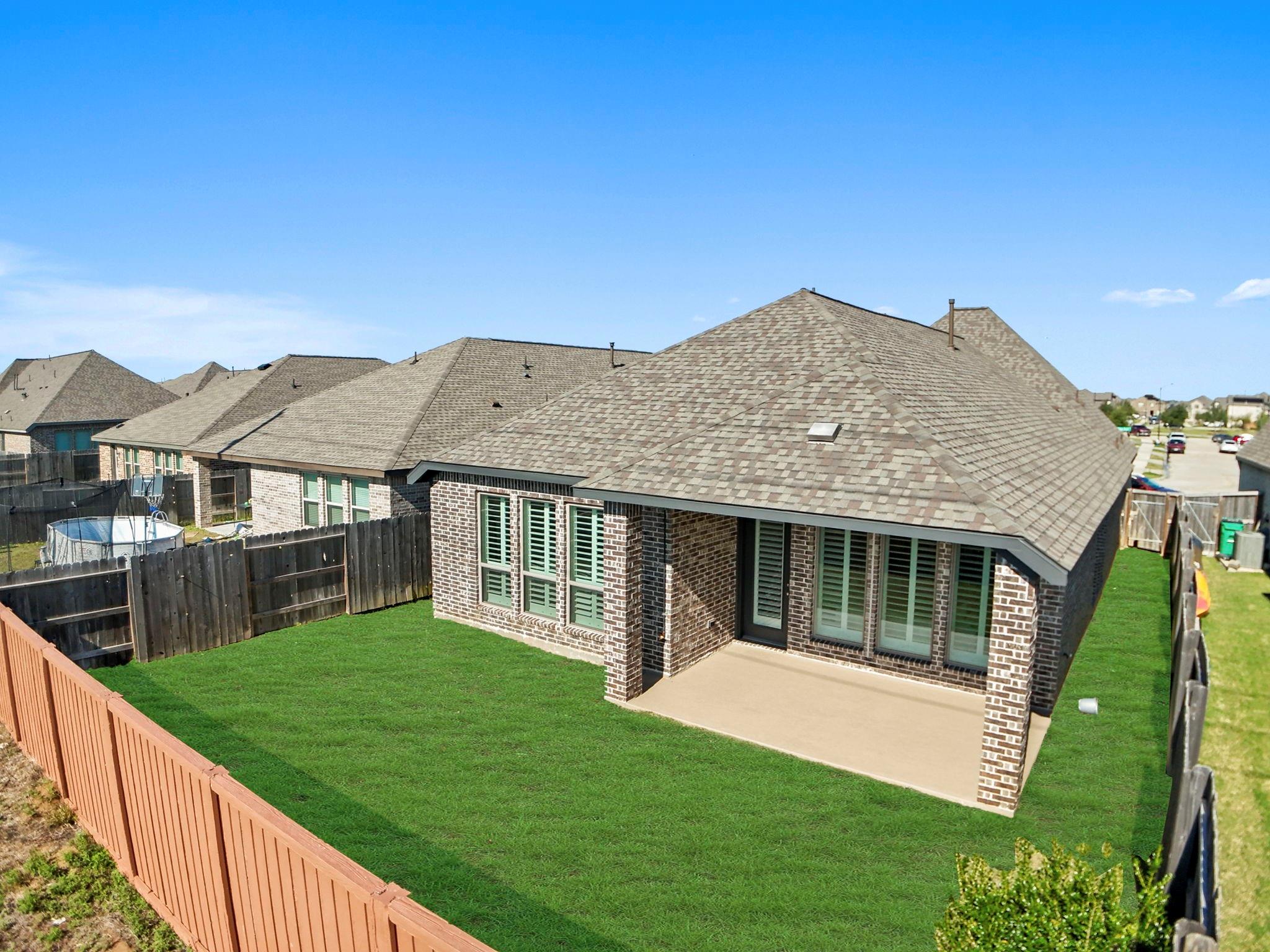 ExteriorRoof:CompositionFoundation:SlabPrivate Pool:NoExterior Type:BrickLot Description:Subdivision LotWater Sewer:Public WaterFront Door Face:NorthExterior:Back Yard,Covered Patio/Deck,Exterior Gas Connection,Partially Fenced,Sprinkler System,Subdivision Tennis Court