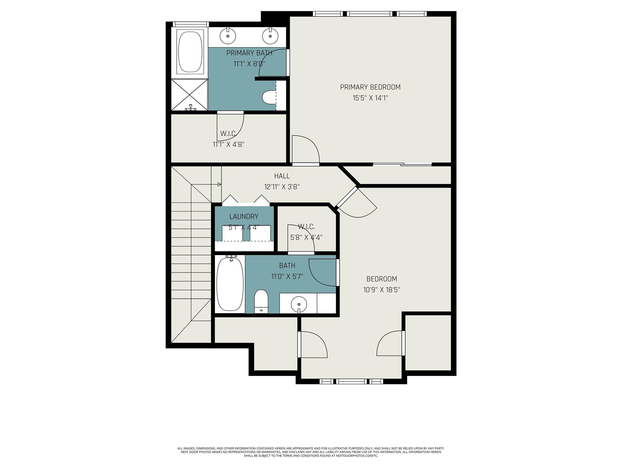 Third FloorPrimary Bedroom:15'5 x 14'1Bedroom:10'9 x 18'5Primary Bath:11'1 x 8'Bath:11' x 5'7Utility Room:12'11 x 3'8