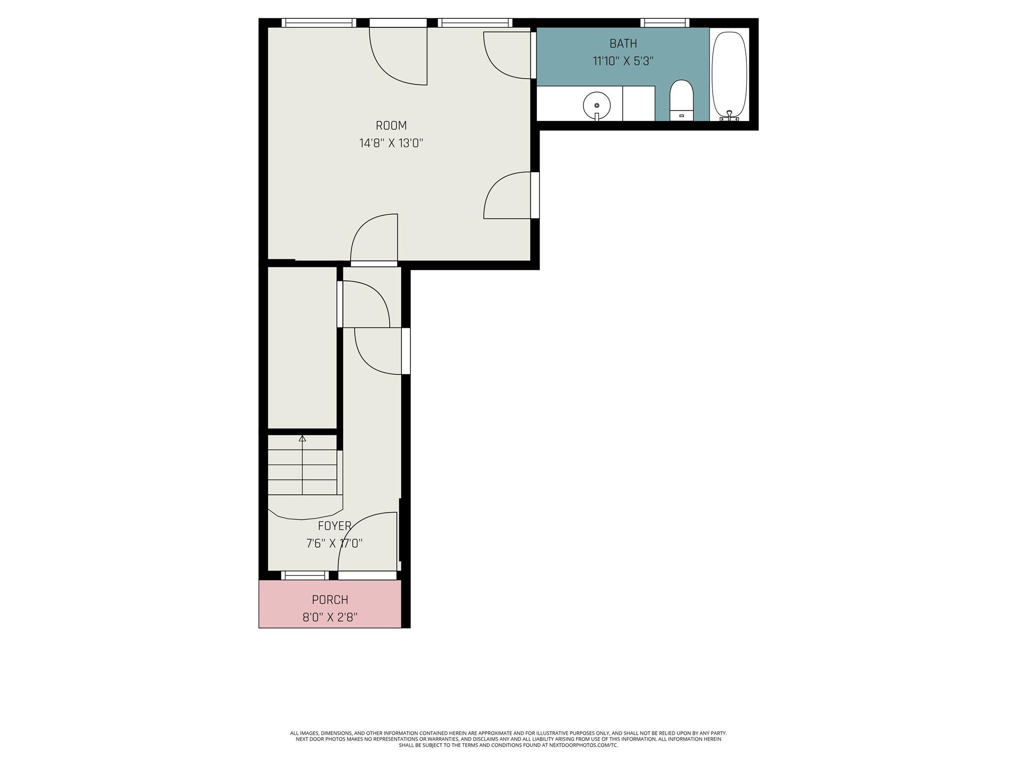 First FloorBedroom:14'8 x 13Bath:11'10 x 5'3Entry:7'6 x 7'