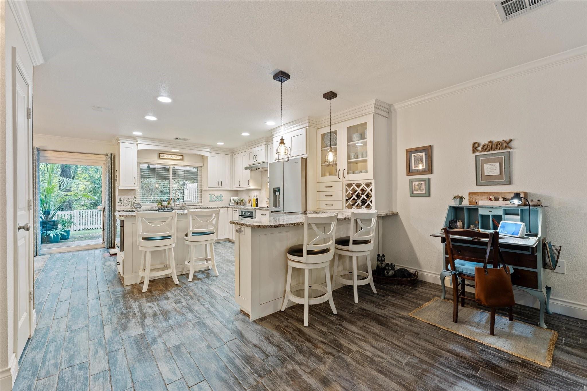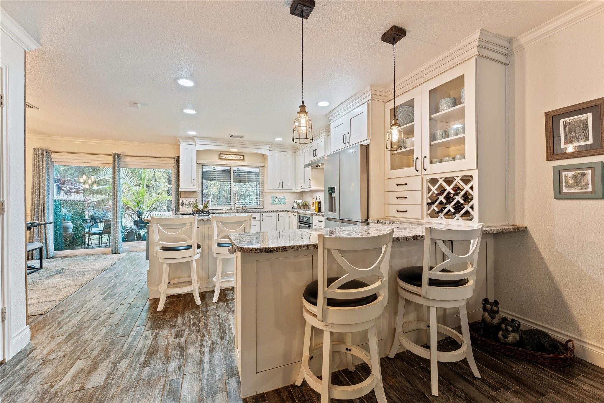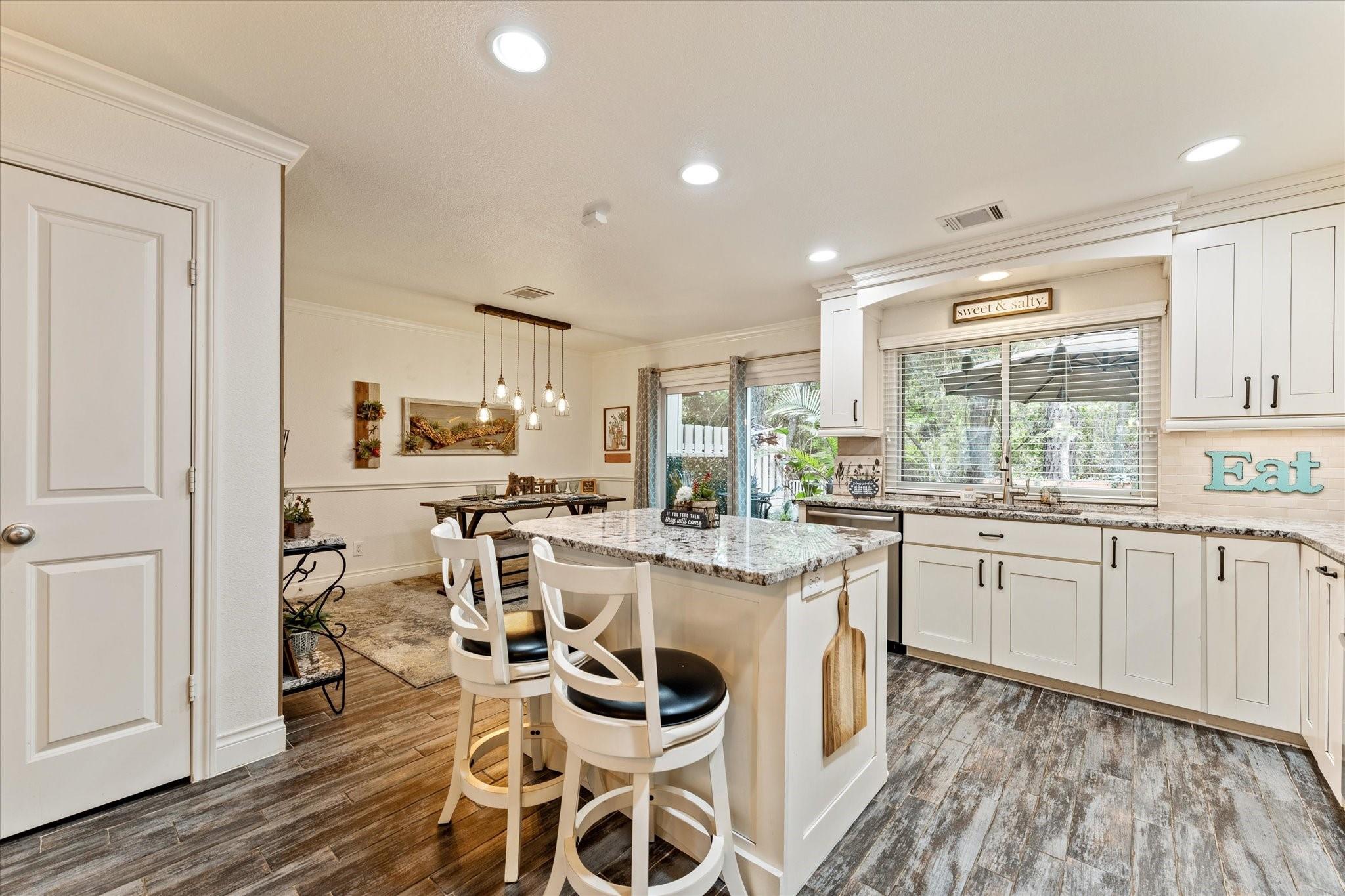 Completely updated 4-bedroom, 2.5-bath townhouse blending modern convenience with classic charm. The main level features a spacious living area anchored by a cozy fireplace—the ideal focal point for relaxing or entertaining. The adjacent windowed kitchen is a chef’s delight, well-appointed with induction cooking, electric oven, microwave, dishwasher, pantry, and breakfast bar for casual meals. A convenient powder room and dining area are also located on the main floor for guests. All four bedrooms are upstairs, offering a private retreat with beautifully remodeled bathrooms featuring contemporary finishes. The exterior features a PRIVATE backyard & manicured, gated front yard with automated sprinkler system. Functional upgrades abound: garage with durable epoxy floors, carport, brand-new 2024 roof, new A/C, & energy-efficient windows. Perfectly situated for an active lifestyle: bike to Market Street, the Mall, & the Waterway, or stroll the path directly to the golf course!