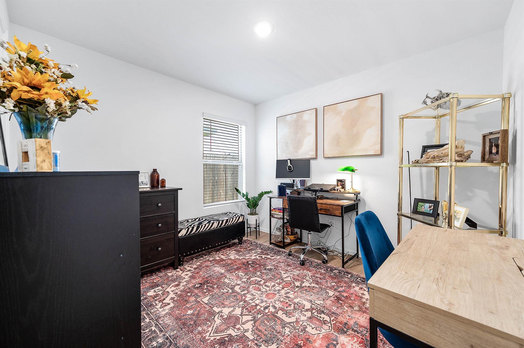 Welcome Home! This beautiful single-story home featuring the popular Camellia floor plan, is thoughtfully designed for both everyday living and easy entertaining. When you walk in, you’re welcomed into a bright, open-concept living space where the kitchen, dining area, and family room flow seamlessly together perfect for hosting friends or relaxing at home. Three secondary bedrooms are located toward the front of the home and share a convenient hall bath, offering flexibility for family, guests, or a home office. The private owner’s suite is tucked away in the back, creating a peaceful retreat complete with an en-suite bath and a spacious walk-in closet.