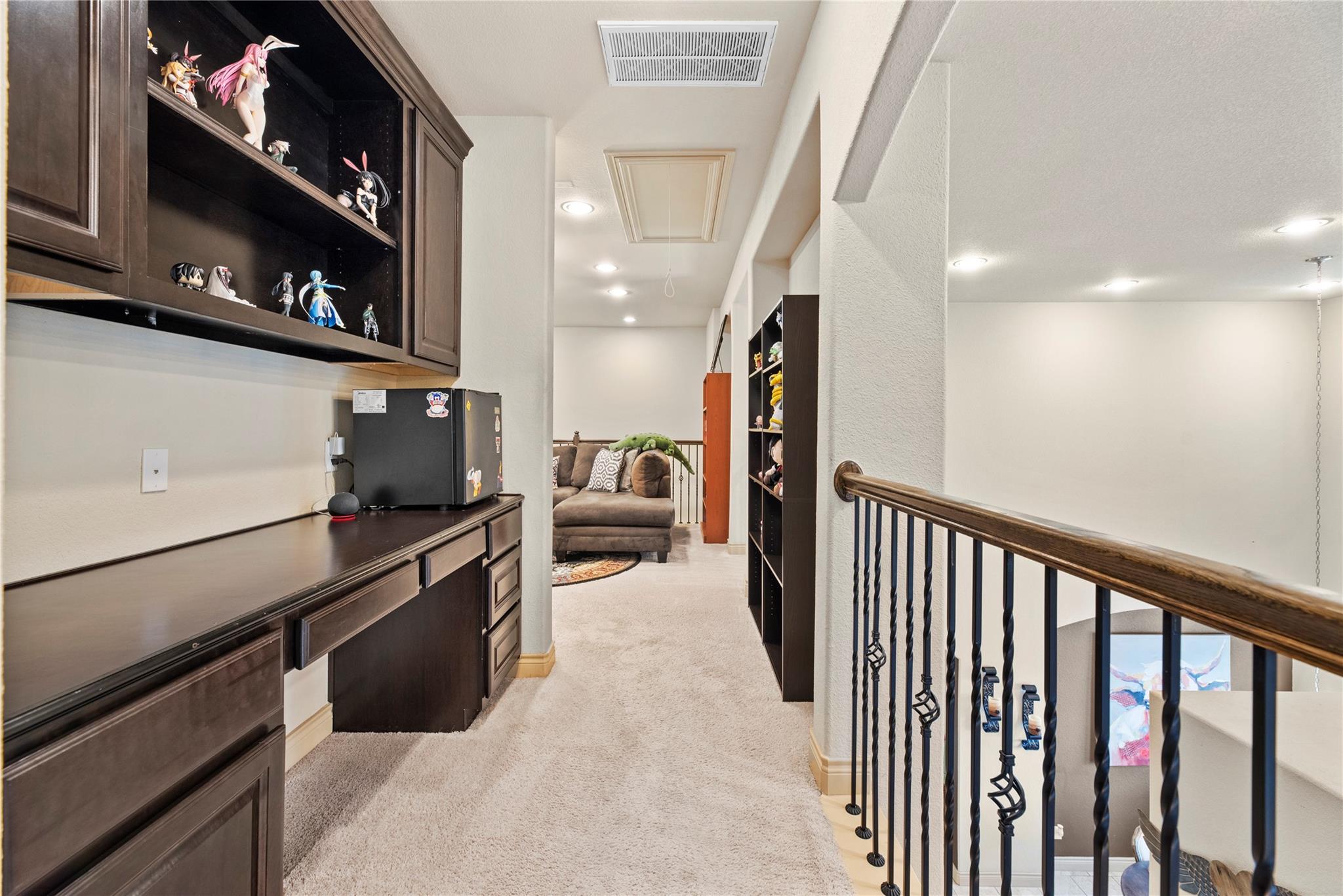 InteriorFireplace:1/Gas ConnectionsFloors:Carpet,Tile,WoodCountertop:GRANITEBathroom Description:Full Secondary Bathroom Down,Primary Bath: Double Sinks,Primary Bath: Shower OnlyBedroom Desc:2 Bedrooms Down,Primary Bed - 1st FloorKitchen Desc:Breakfast Bar,Island w/o Cooktop,Kitchen open to Family Room,PantryRoom Description:Den,Formal Dining,Gameroom Up,Home Office/Study,Utility Room in HouseHeating:Central GasCooling:Central ElectricWasher/Dryer Conn:YesDishwasher:YesDisposal:YesCompactor:NoMicrowave:YesRange:Gas RangeOven:Double Oven,Electric OvenIce Maker:NoAppliances:Electric Dryer Connection,Full SizeEnergy Feature:Attic Vents,Ceiling Fans,Digital Program Thermostat,Energy Star Appliances,Energy Star/CFL/LED Lights,Energy Star/Reflective Roof,High-Efficiency HVAC,Insulated Doors,Insulated/Low-E windows,Insulation - Blown Cellulose,Other Energy Features,Radiant Attic BarrierInterior:Alarm System - Owned,Fire/Smoke Alarm,High Ceiling,Window Coverings
