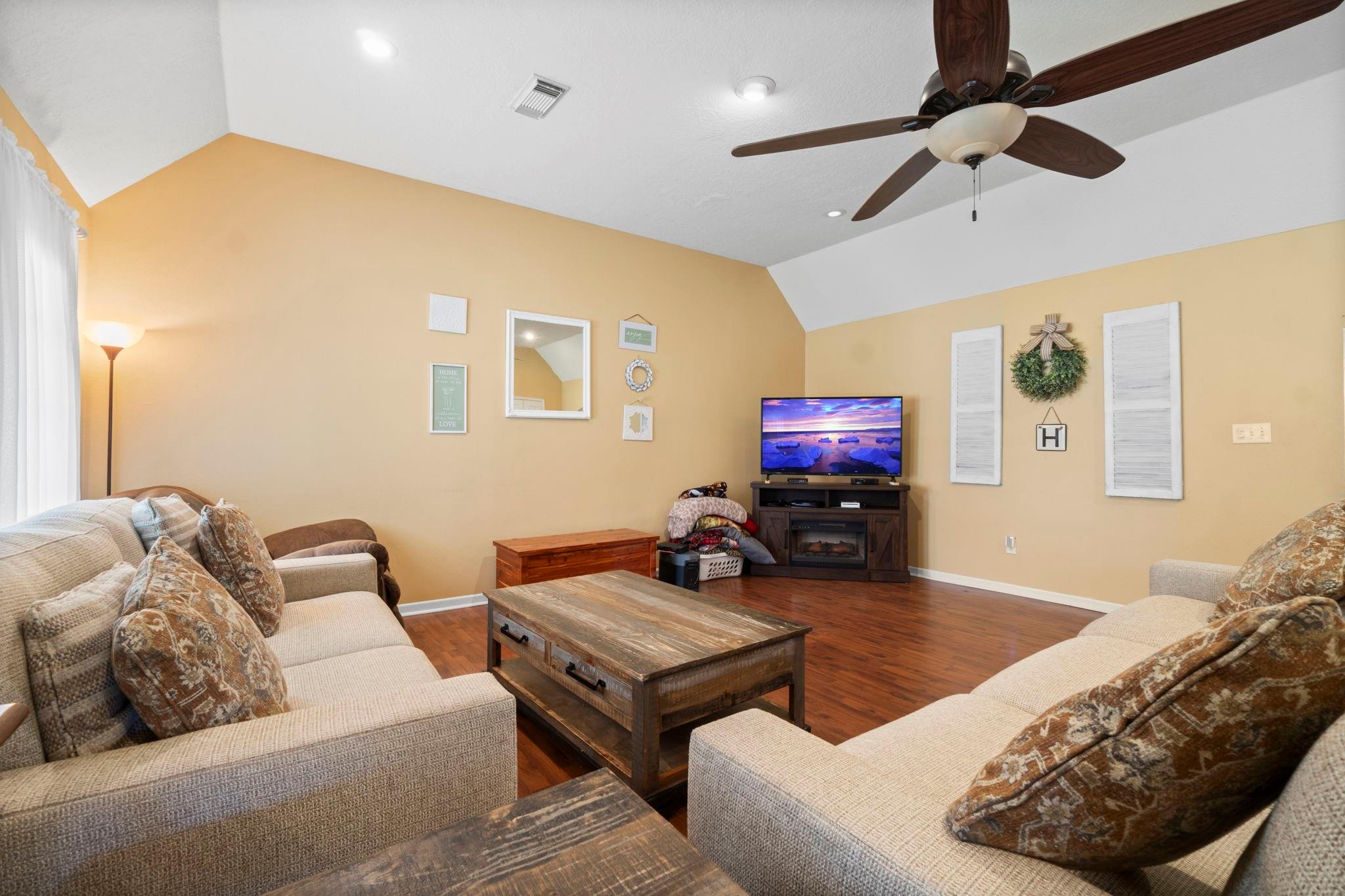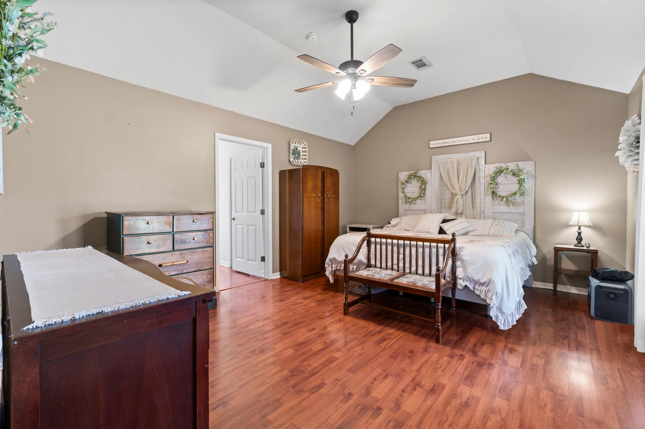 InteriorFloors:Laminate,TileBathroom Description:Primary Bath: Double Sinks,Primary Bath: Separate Shower,Primary Bath: Soaking Tub,Secondary Bath(s): Shower Only,Secondary Bath(s): Tub/Shower ComboBedroom Desc:2 Primary Bedrooms,All Bedrooms Down,En-Suite BathKitchen Desc:Breakfast Bar,Pantry,Walk-in PantryRoom Description:Family Room,Kitchen/Dining Combo,Utility Room in HouseHeating:Central ElectricCooling:Central ElectricConnections:Electric Dryer Connections,Washer ConnectionsDishwasher:YesDisposal:NoCompactor:NoMicrowave:YesRange:Electric RangeIce Maker:NoEnergy Feature:Ceiling FansInterior:High Ceiling