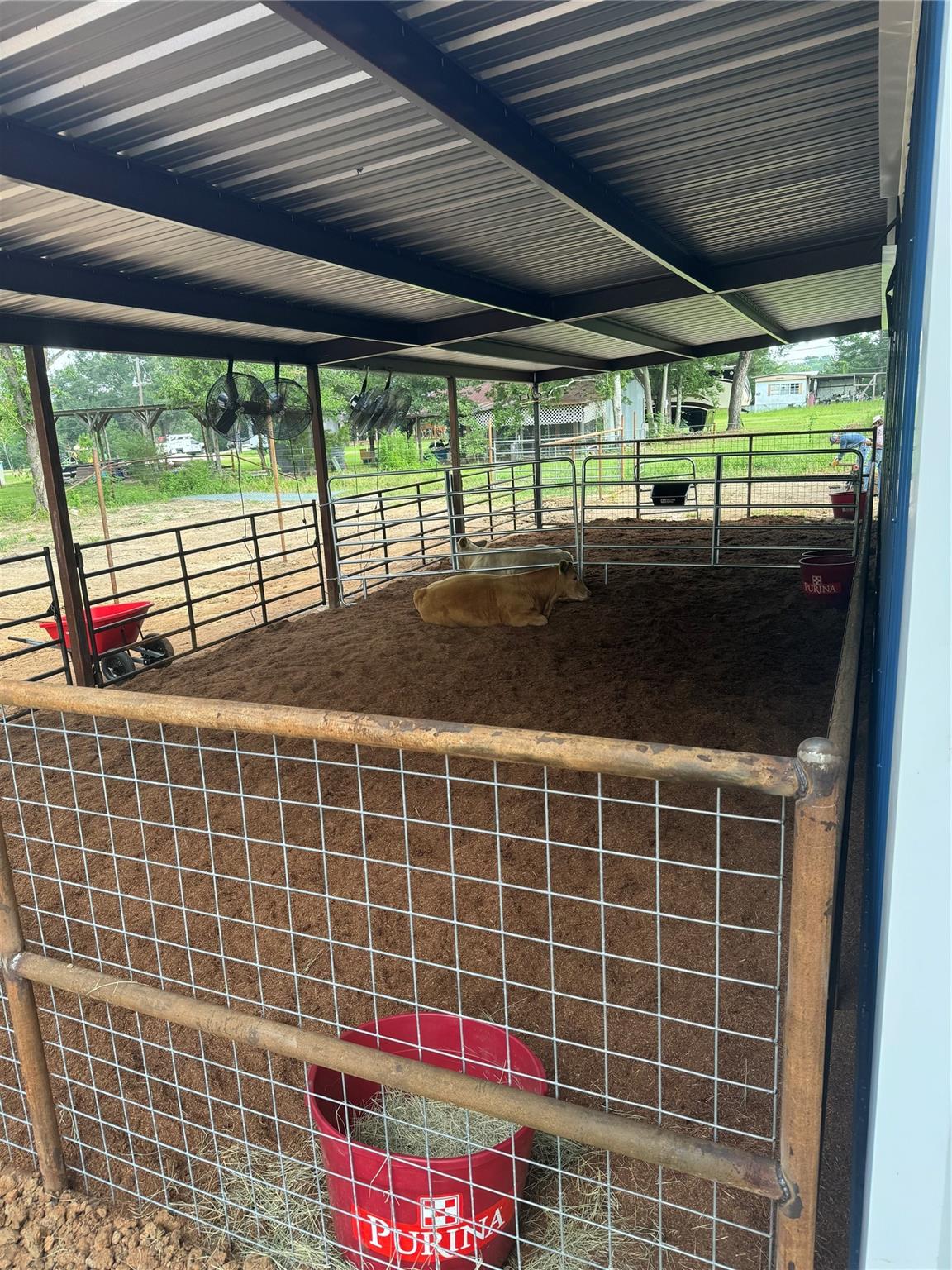 Well-improved 3.5± acre tract featuring a large metal barn with extensive covered working areas. The main barn measures approximately 50’ x 75’ (buyer to verify) and is well-suited for livestock, equipment, storage, or workshop use. The backside includes covered pens measuring approximately 50’ x 20’, providing excellent functionality for animal handling or sheltered storage. Both the side and front feature 20’ covered, concreted awnings, offering ample space for parking, loading, or outdoor work areas. The barn includes one bathroom, with water and electric meters installed and fully run to the building, making the property ready for immediate use. The acreage is cross-fenced for operational efficiency but can be easily removed or reconfigured if desired. A versatile property with solid infrastructure, ideal for agricultural, recreational, or multi-use purposes.