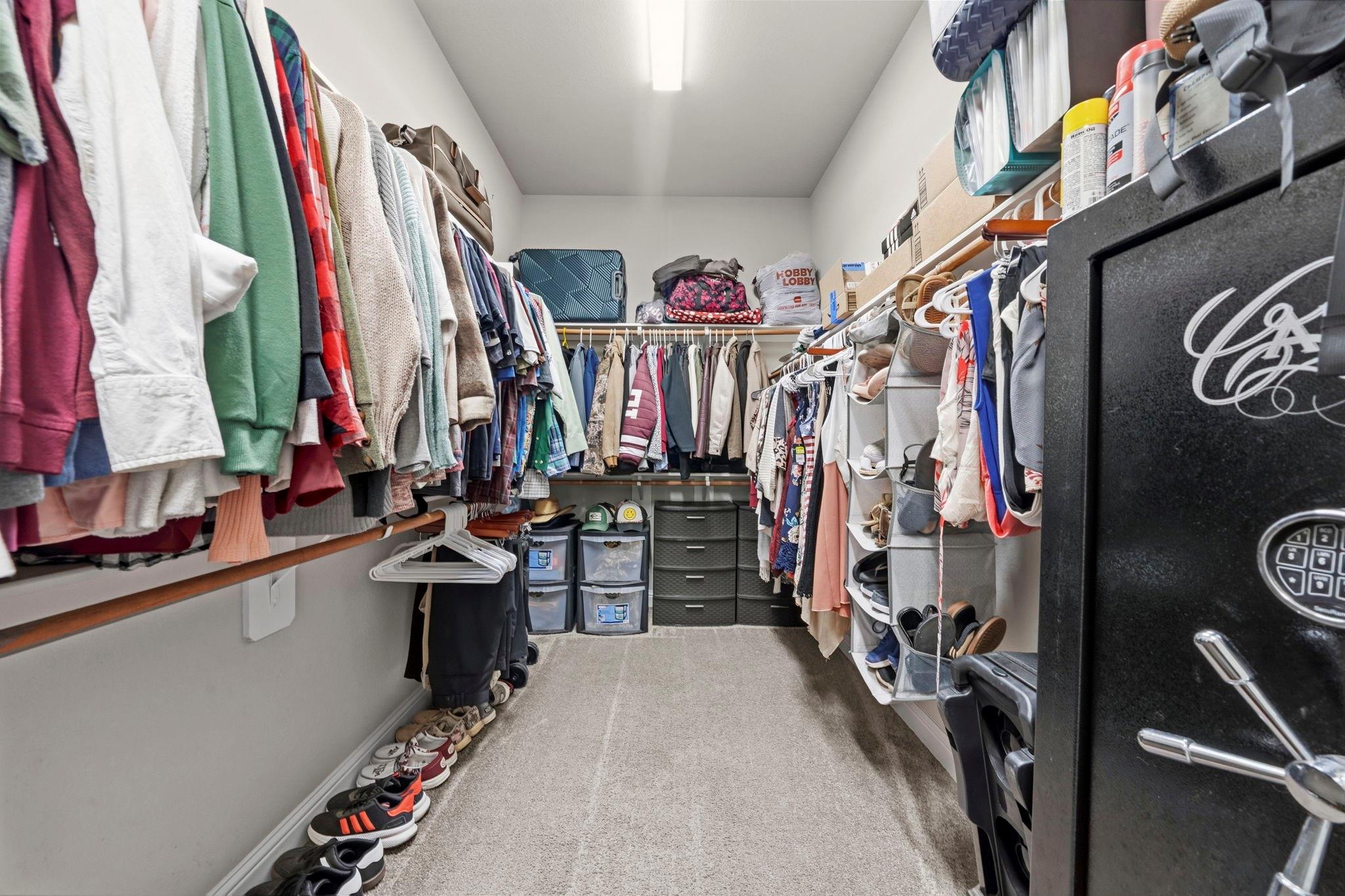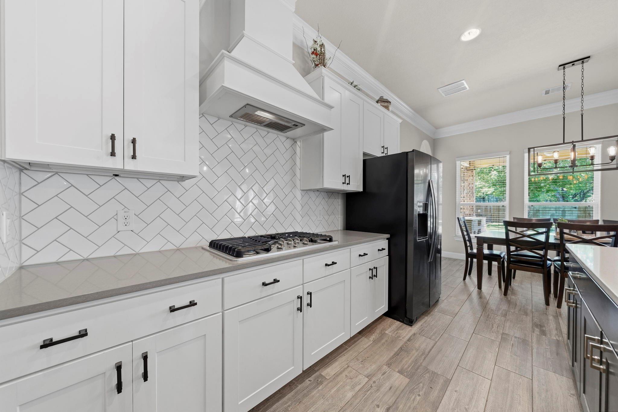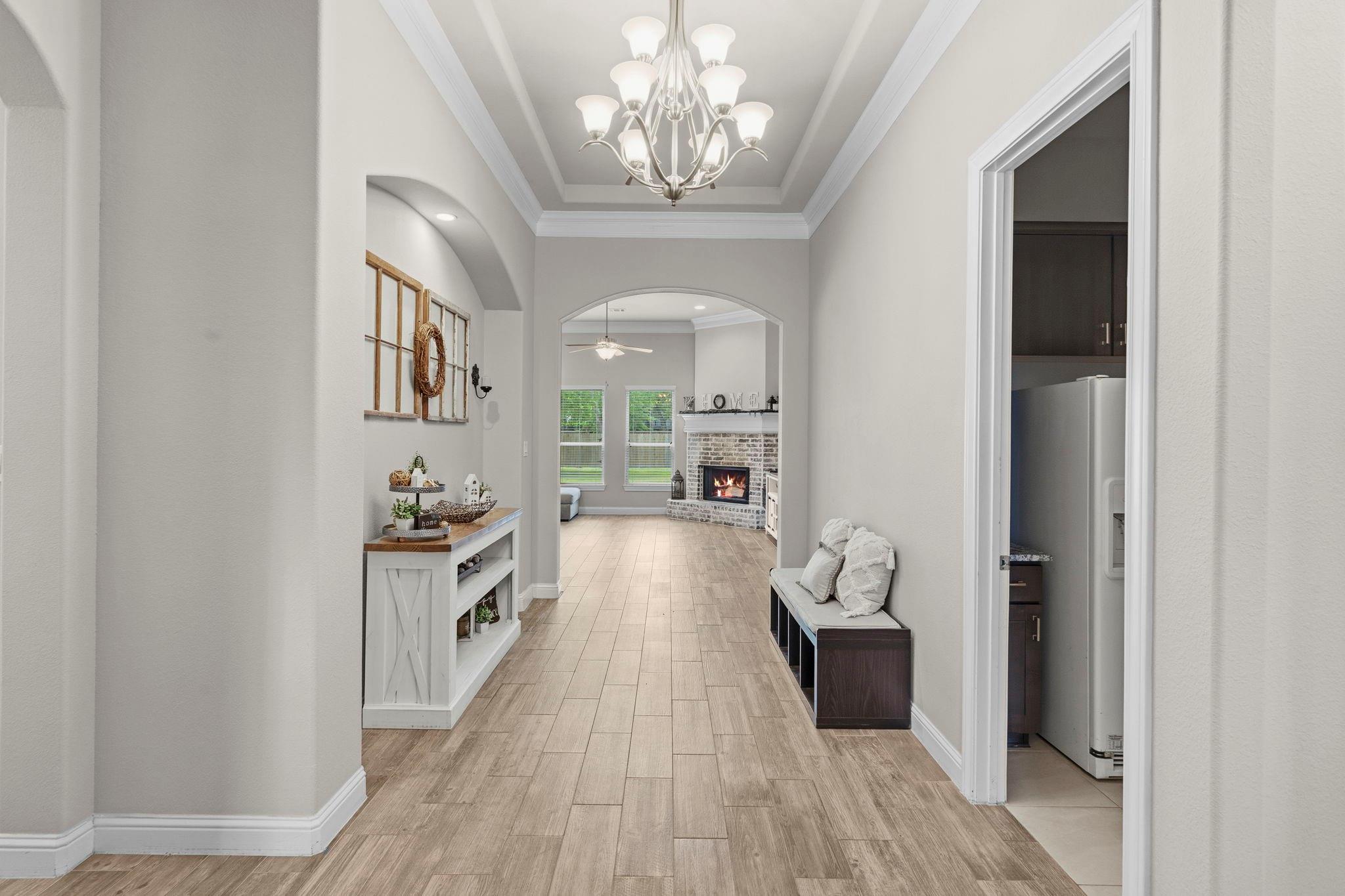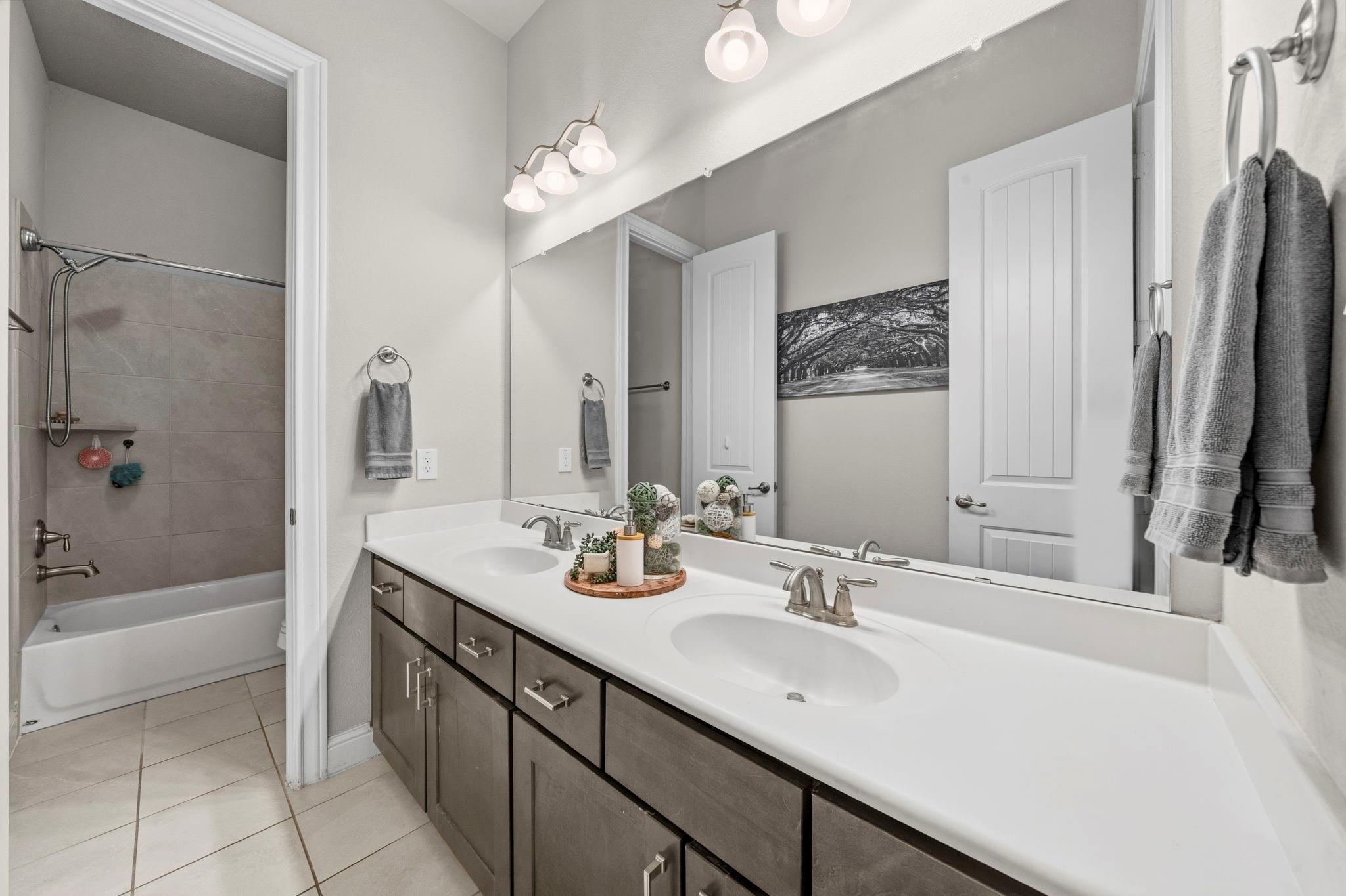 Welcome home! This 5-bed, 2.5-bath home is located in the thriving Hockley area. The massive lot features a very private backyard with mature trees and large covered patio with a brick fire pit and built-in island for outdoor cooking. Inside, you will find wood-look tile throughout the main living spaces, an open-concept living, kitchen, and dining area. The gourmet kitchen boasts quartz countertops, a large island with a double sink, a glass pantry door, pendant lights, tile backsplash, stainless-steel appliances, and large casual eat-in dining space. The large game room includes a closet and an attached half-bath, allowing it to easily serve as a fifth bedroom if needed. Secondary bedrooms are generously sized, and the primary guest bathroom features a separate double-sink vanity. The huge study could easily accommodate two desks, and the oversized two-car garage includes an extra five feet of space. Additional features include a security system and a recently updated water heater.