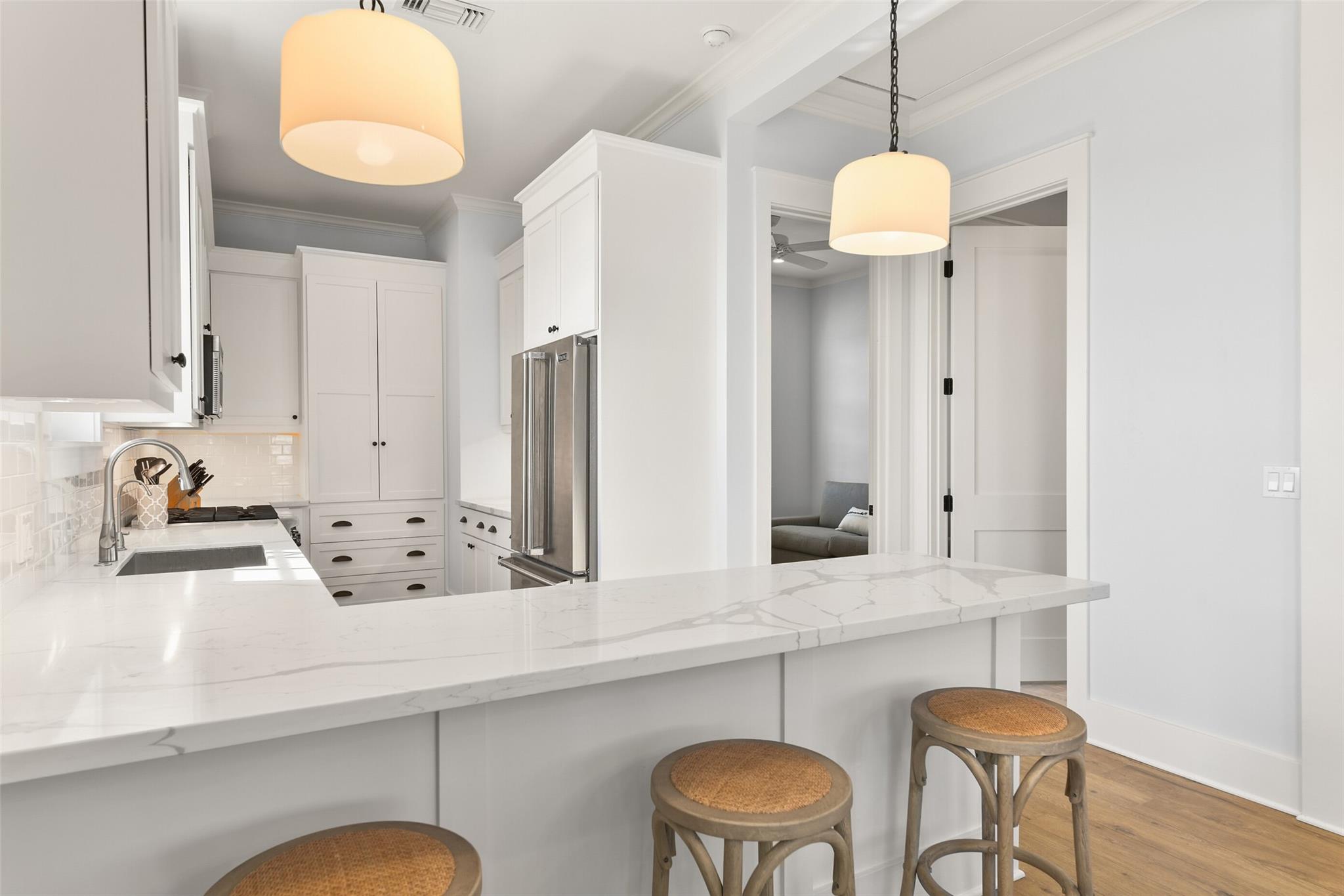 InteriorPets:W/ RestrictionsFloors:TileBathroom Description:Primary Bath: Double Sinks,Primary Bath: Jetted Tub,Primary Bath: Separate ShowerBedroom Desc:2 Bedrooms Down,Walk-In ClosetKitchen Desc:Kitchen open to Family Room,Pots/Pans Drawers,Soft Closing Cabinets,Soft Closing Drawers,Under Cabinet LightingRoom Description:Family Room,Living Area - 2nd Floor,Living/Dining ComboHeating:Heat PumpCooling:Heat PumpDishwasher:YesDisposal:YesCompactor:NoMicrowave:YesRange:Gas RangeOven:Gas OvenIce Maker:NoAppliances:Dryer Included,Full Size,Refrigerator,Washer IncludedInterior:Alarm System - Owned,Balcony,Central Laundry,Crown Molding,Elevator,Refrigerator Included,Window Coverings