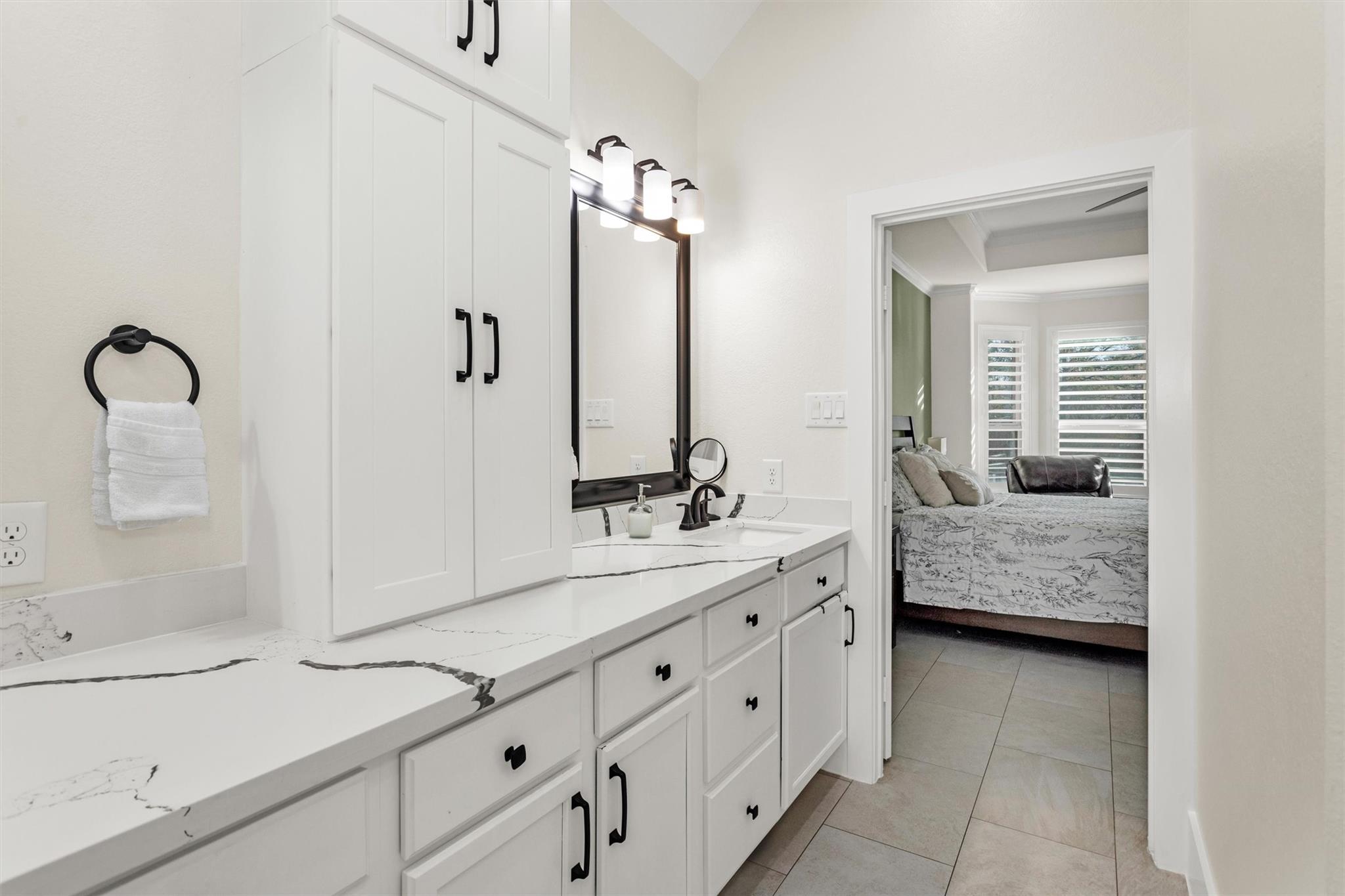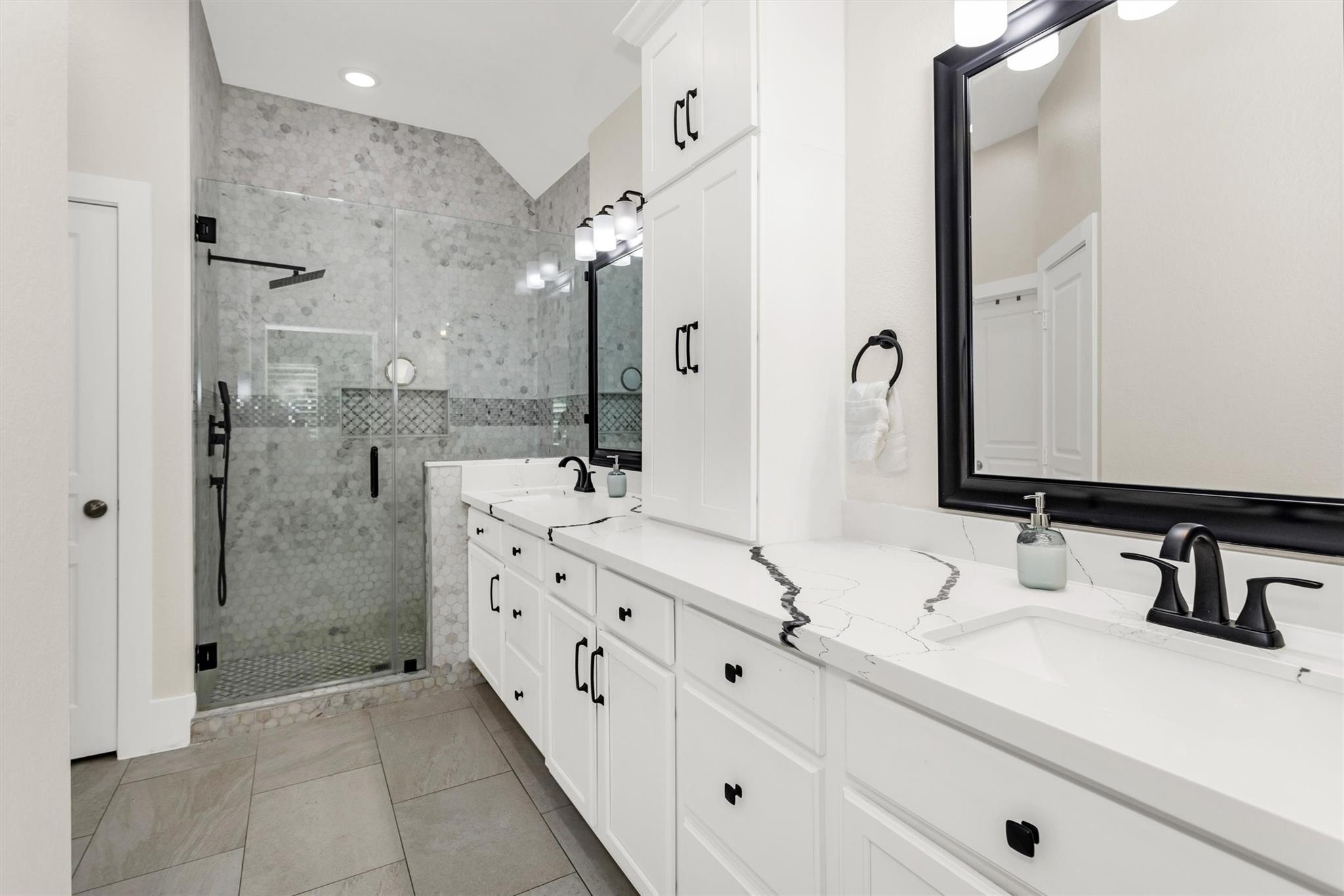 This lot is everything! Nestled on a premium lot showcasing a POOL w/ledge loungers & SPA, an extremely private backyard, no back neighbors, views of pond, on a cul-de-sac & on an easement. The 1.5 story home located in Woodforest's master-planned community offers all 4 bedrooms downstairs, plantation shutters, beautiful Pretiosa porcelain tile downstairs, wood stairs that lead to a massive GAMEROOM & MEDIA ROOM, study & half bath. Highly sought light & bright kitchen w/an oversized granite island. Breakfast room has great windows that look out to the private & peaceful backyard w/views of the pond. Living room is spacious w/a wall of windows & gorgeous stone fireplace to the ceiling w/gas logs. Primary suite showcases upgraded flooring, recessed ceilings & bay window upgrade. Primary bath is stunning & newly renovated, offering a walk-in closet that conveniently leads directly to the laundry room from the closet. Don't miss all the amenities that Woodforest has to offer!
