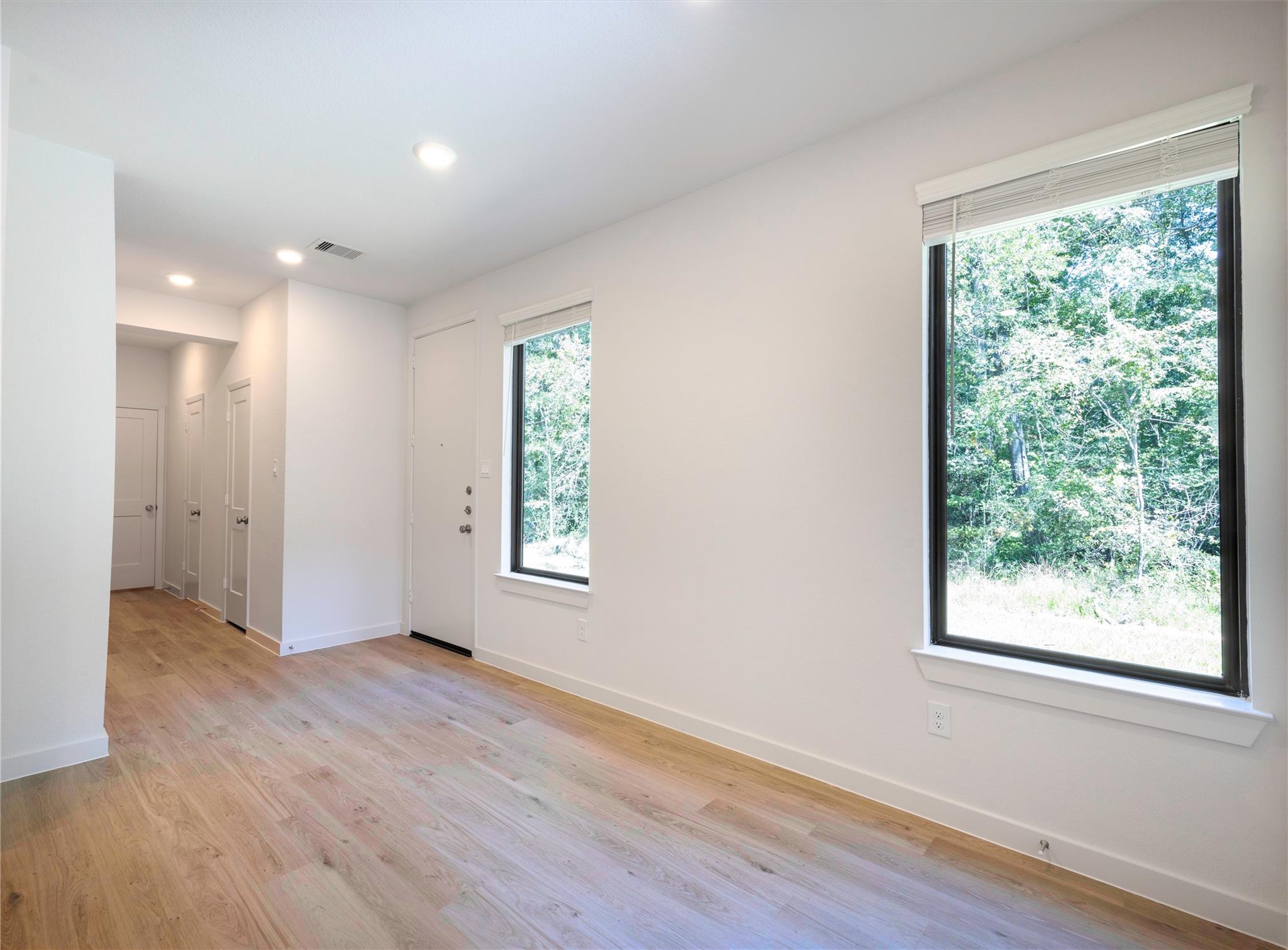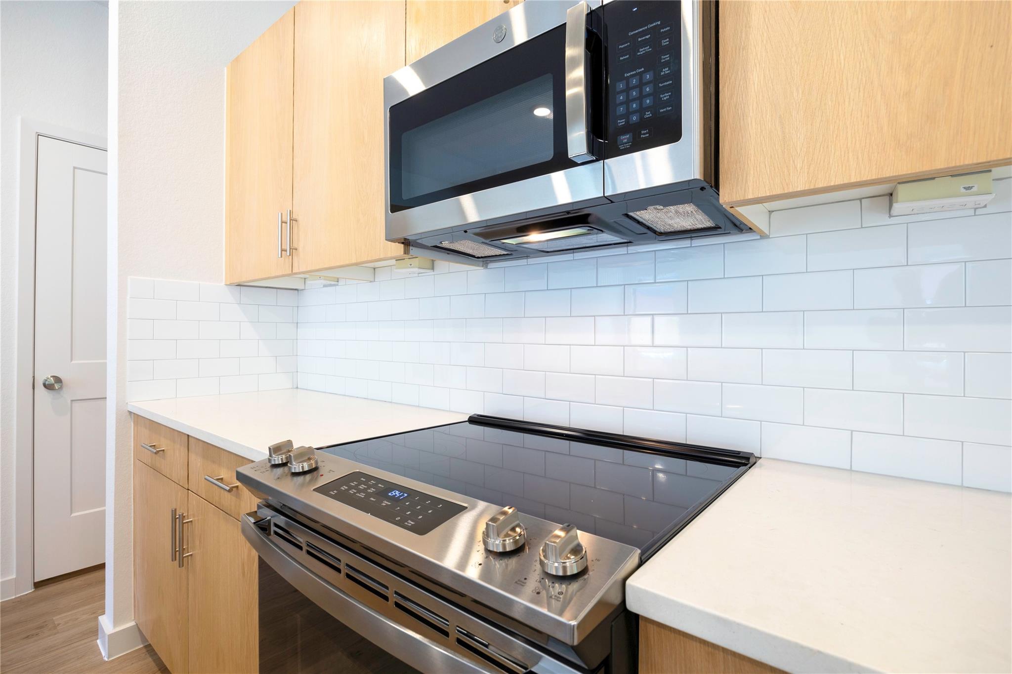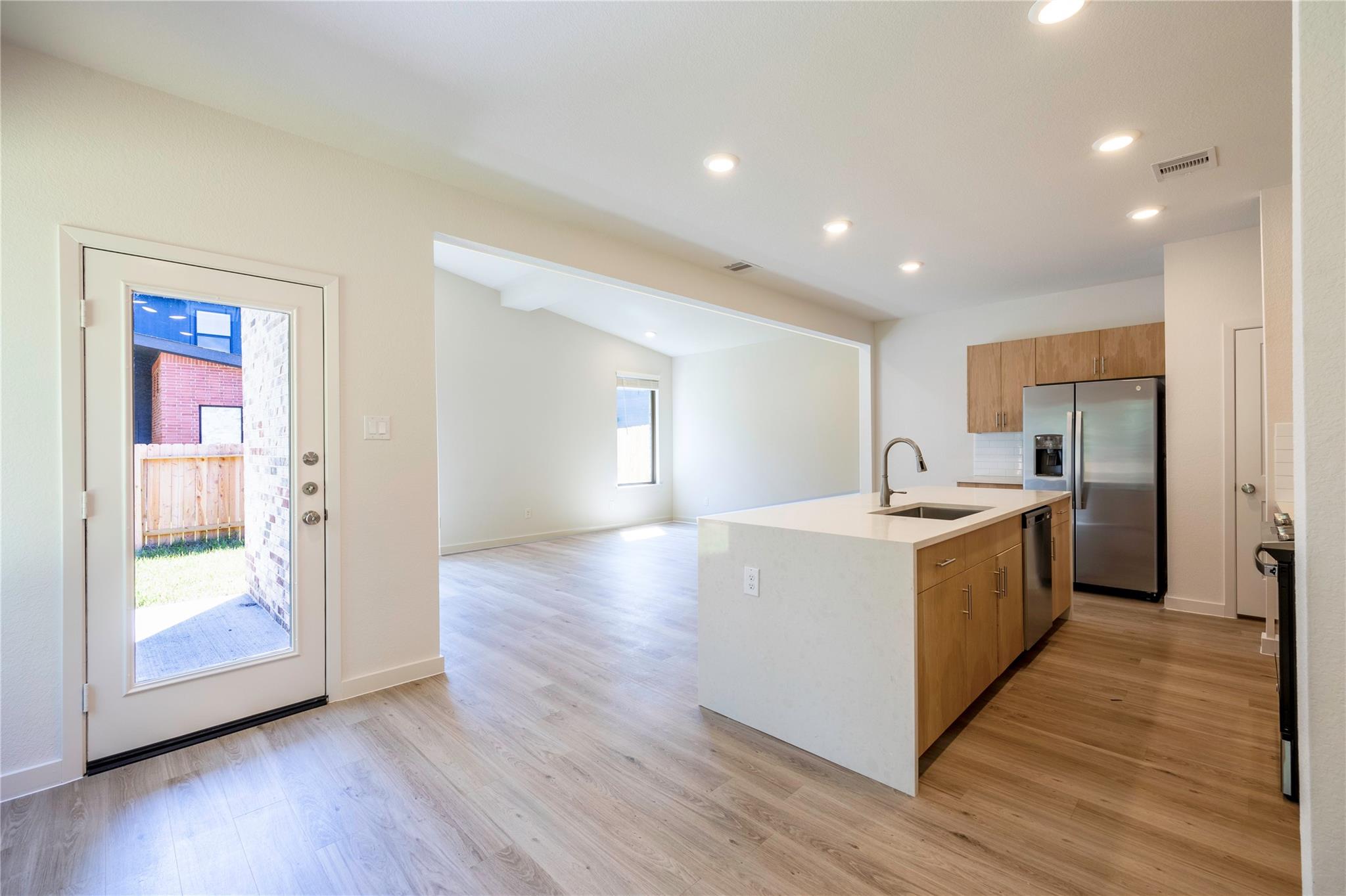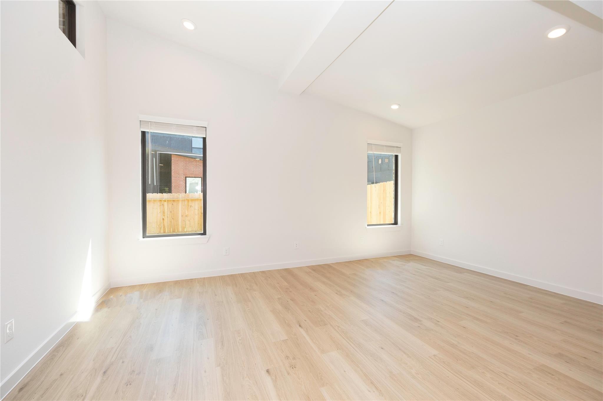 Modern Architecture Townhome! Both Units have 3 bedrooms and 2.5 bathrooms. First floor boasts bright open concept floor plan with high ceilings, gourmet style kitchen with quartz waterfall island, featuring GE stainless appliances/fridge included, soft close cabinets and walk in pantry that overlooks the living room. Large utility room and half bath downstairs. All bedrooms High Ceilings! Primary bedroom has crazy high ceiling! primary bath has 5ft walk in shower, two separate vanities and a walk-in closet. Luxury vinyl plank flooring throughout. Back yard is fenced has a patio and full yard sprinkler system. Check out the Matterport Tour For A Better Look Inside (Illustrates interior layout/Exterior features may vary)!