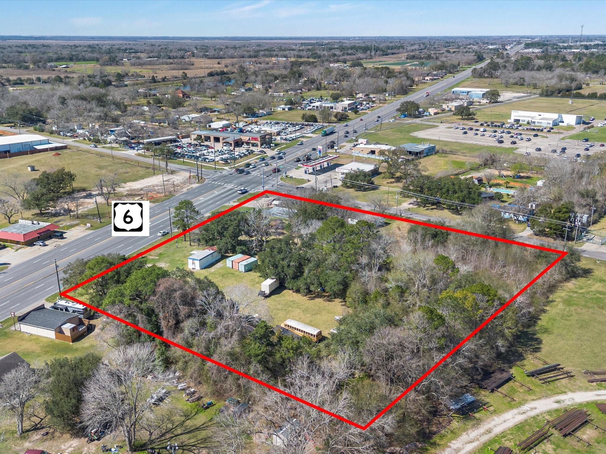 Prime hard corner opportunity offering nearly 4 acres at the signalized intersection of Hwy 6 & County Road 149 with approximately 410 ft of Hwy 6 frontage and excellent visibility. This versatile property includes multiple income-producing improvements: an office building with waiting area, restrooms, and storage shed, a single-family home (2 bed, 1 bath) on a partially fenced lot, a duplex with two 2 bed / 1 bath units, and a single-wide mobile home currently used for storage (contents do not convey). Most structures are leased to long-term tenants, providing existing income. Property remained high and dry during Hurricane Harvey. Three tax IDs included and must be sold together: 0420-0022-000, 0420-0088-000, 0420-0041-000. Do not disturb tenants. Buyer to verify all measurements and perform independent due diligence regarding property use. Contact listing agent for additional information.