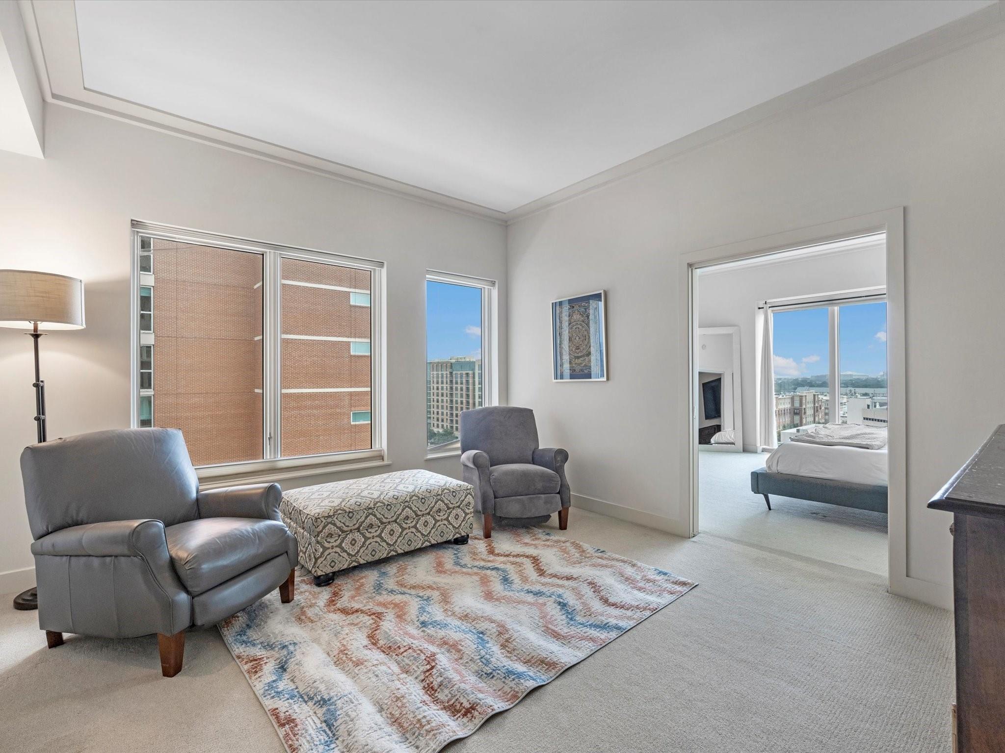 Beautiful two-story SE corner unit facing Rice Village/Med center/NRG stadium. Available for immediate occupancy. Located on a high floor(10th level), this lovely unit was redesigned during construction making it a unique floor plan from other unit in the building. Spacious high ceiling living room & dining rm w/art lighting & wall with nearly floor to ceiling windows. Kitchen boasts custom pull-out shelving w/ stainless appliances including gas burning stove top, and granite counter tops. All main living areas enjoy gorgeous natural light with southern exposure. Covered balcony with 2 storage closets. 24 hr concierge service. Truly lock and leave building!