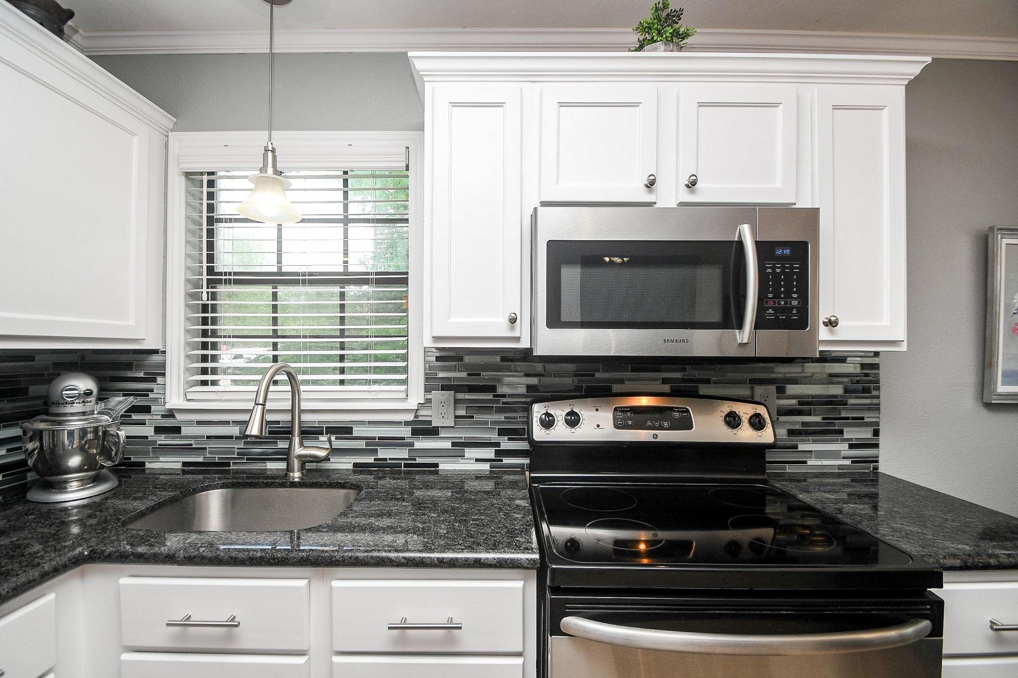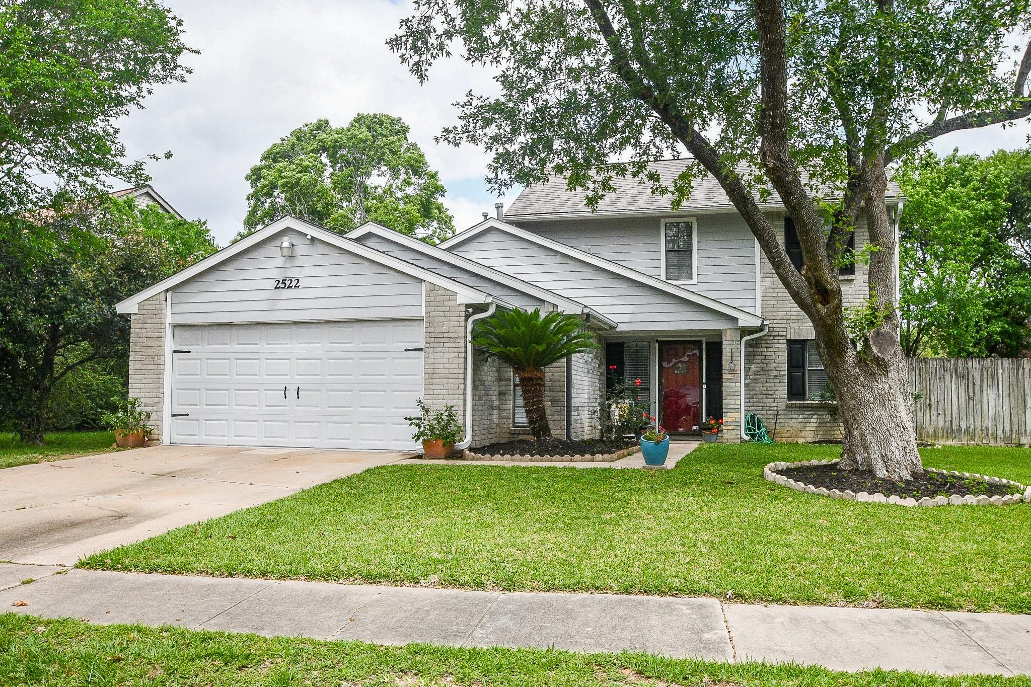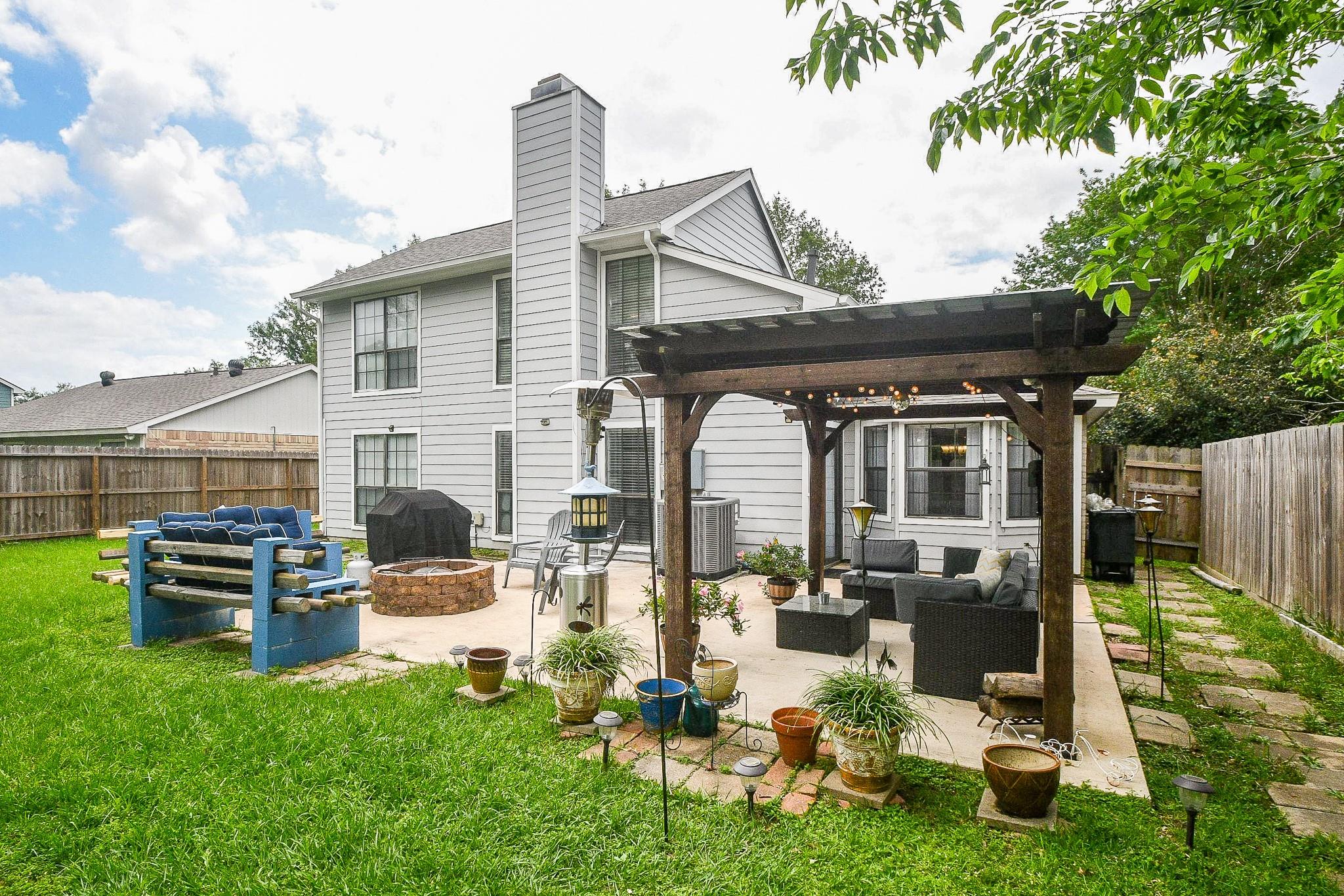 Exceptionally clean and well maintained home! Sensible two story home effectively has two primary bedrooms - one upstairs and one down. The two story den & dining room lend a voluminous feel to the home. The kitchen has been updated with cabinets, granite counter-tops, glass backsplash, and stainless steel appliances. The kitchen opens to a breakfast room with bay window overlooking the glorious backyard. The numerous upgrades, updates, and special features include: 2025 roof shingles (35 year!), interior doors, interior paint, water heater, backyard pergola, electric breaker box & main power wire, wood on the stairs, and two sides of the fence. The upstairs bathroom tub enclosure, sinks, and flooring are also superbly done. Also: Two backyard benches & firepit in a very large yard, epoxy on garage floors, upstairs landing with wrought iron rail, front & back gutters, rose bushes, and storm doors. Part of the garage has been converted to a utility room. The second pantry will stay.
