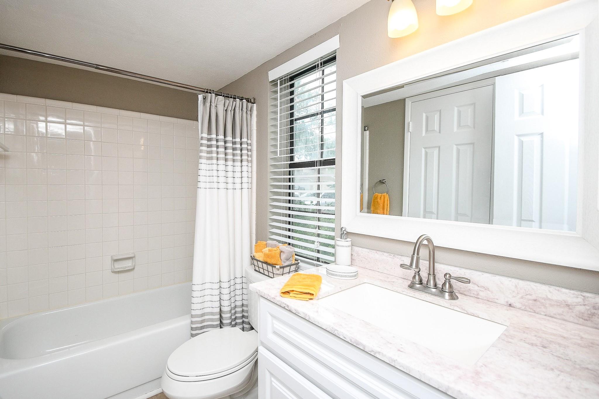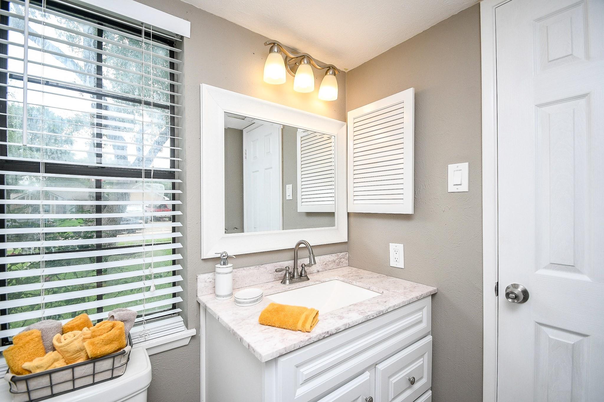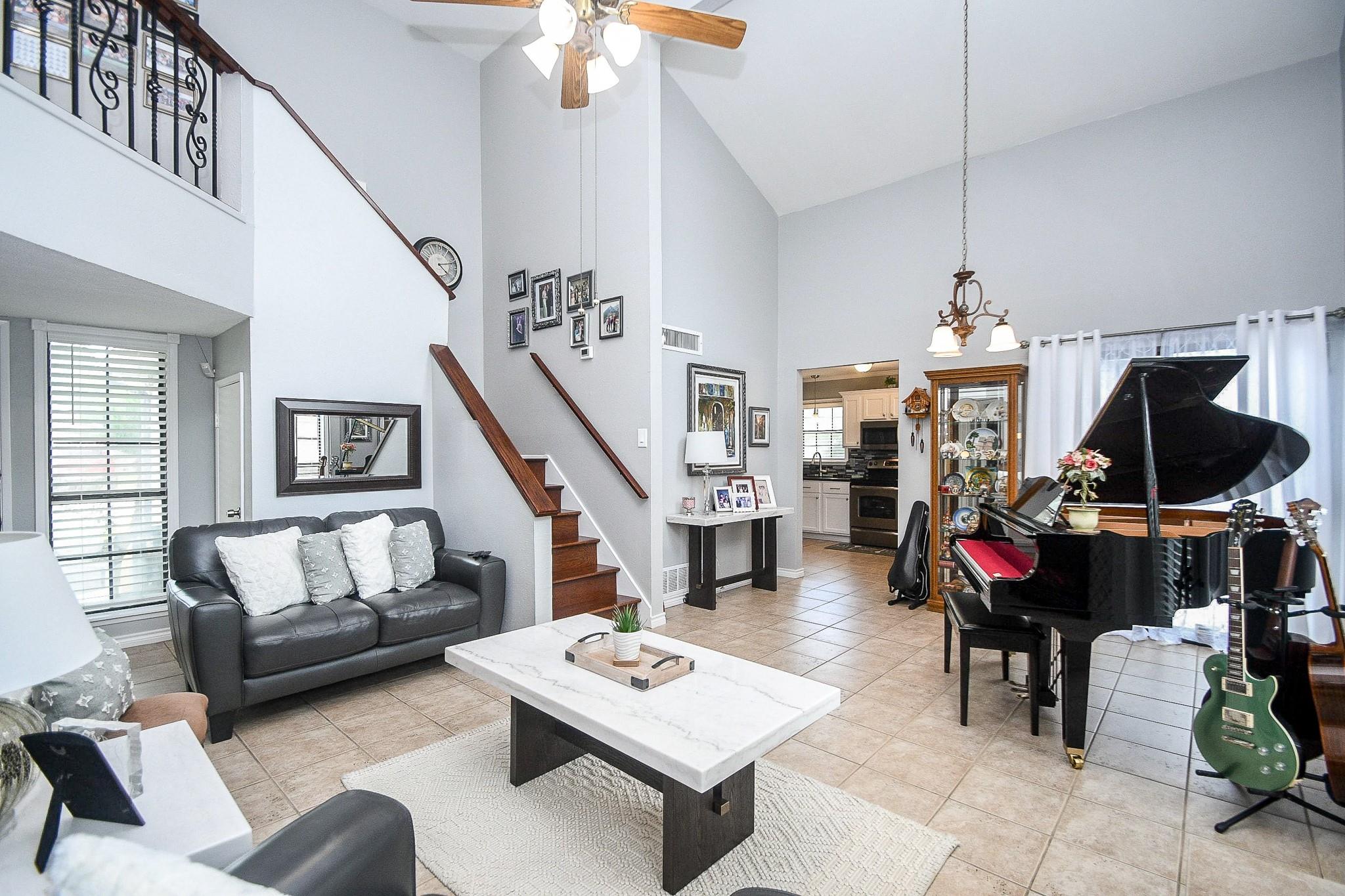 Exceptionally clean and well maintained home! Sensible two story home effectively has two primary bedrooms - one upstairs and one down. The two story den & dining room lend a voluminous feel to the home. The kitchen has been updated with cabinets, granite counter-tops, glass backsplash, and stainless steel appliances. The kitchen opens to a breakfast room with bay window overlooking the glorious backyard. The numerous upgrades, updates, and special features include: 2025 roof shingles (35 year!), interior doors, interior paint, water heater, backyard pergola, electric breaker box & main power wire, wood on the stairs, and two sides of the fence. The upstairs bathroom tub enclosure, sinks, and flooring are also superbly done. Also: Two backyard benches & firepit in a very large yard, epoxy on garage floors, upstairs landing with wrought iron rail, front & back gutters, rose bushes, and storm doors. Part of the garage has been converted to a utility room. The second pantry will stay.