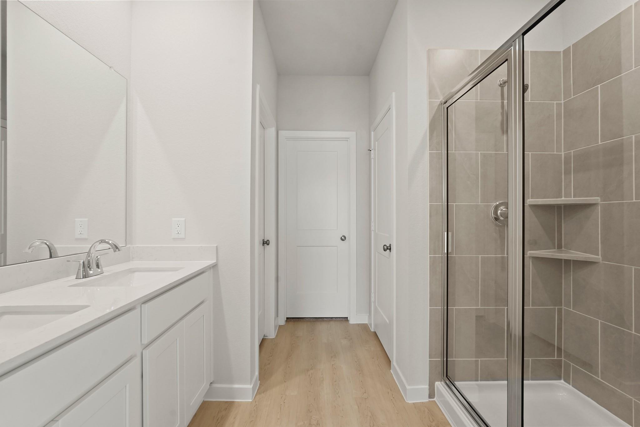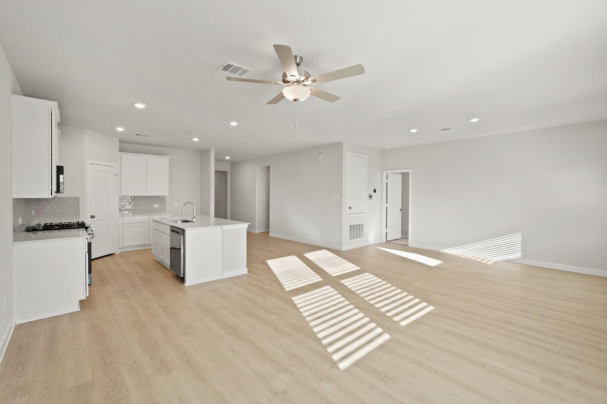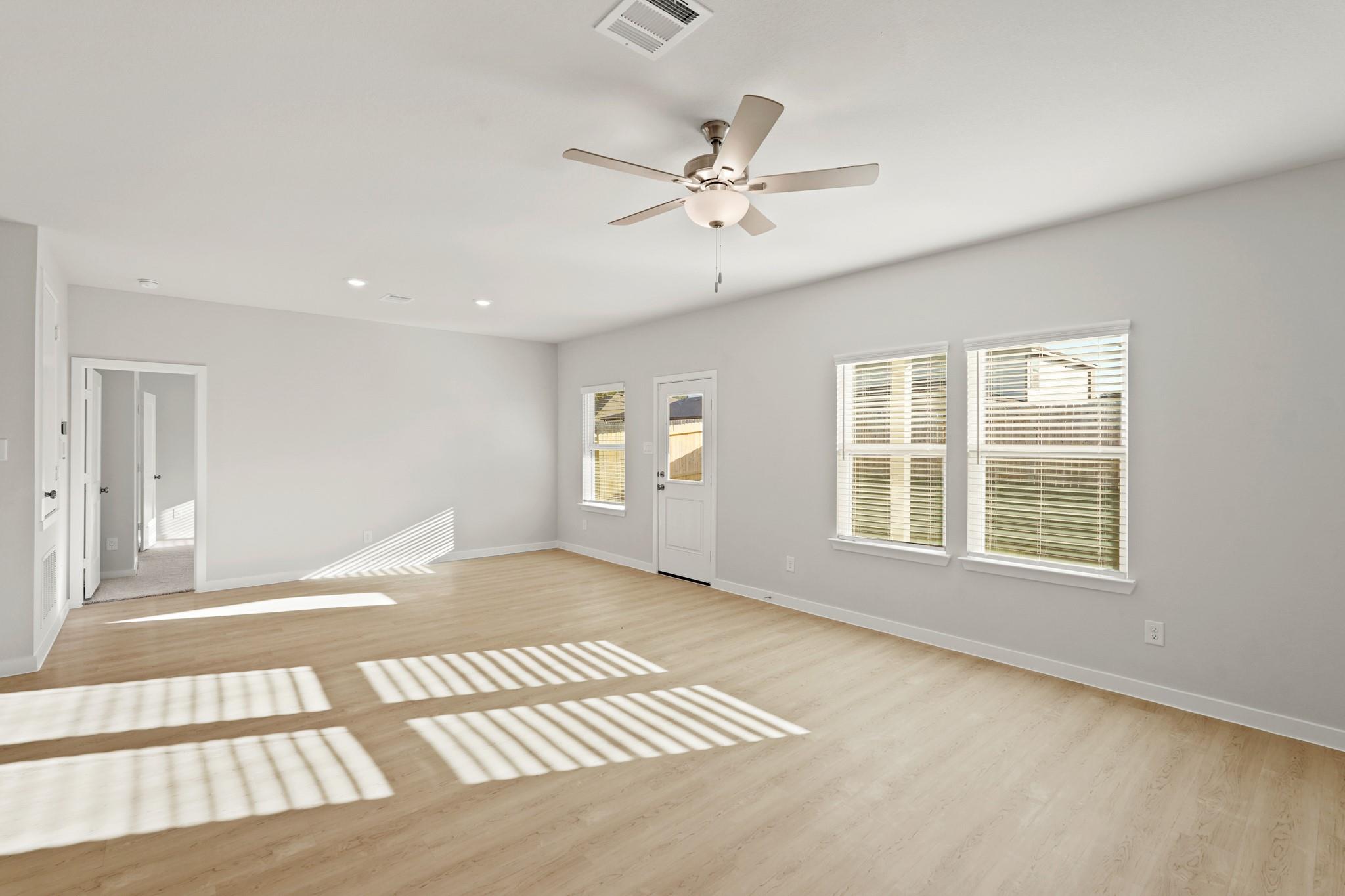 Featuring a thoughtfully designed single-story layout, the Buchanan offers plenty of private and common living space. Toward the front of the home, two bedrooms share a full hall bath. At the heart of the home, an inviting kitchen—featuring a center island and corner pantry—overlooks an open-concept area with a spacious great room and elegant dining area, providing access to a comfortable covered patio. Completing the home, a lavish primary suite includes a large walk-in closet and a private bath.