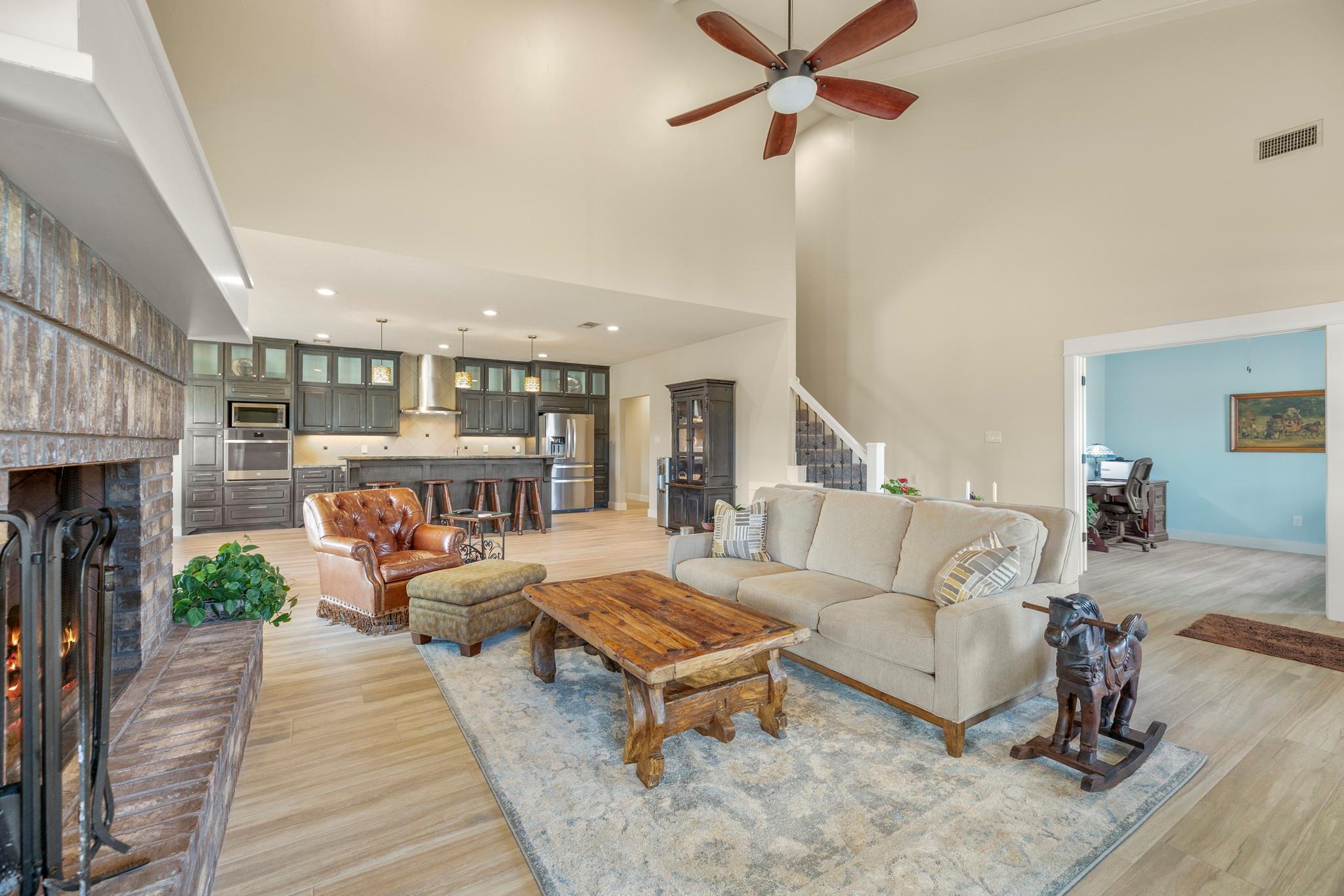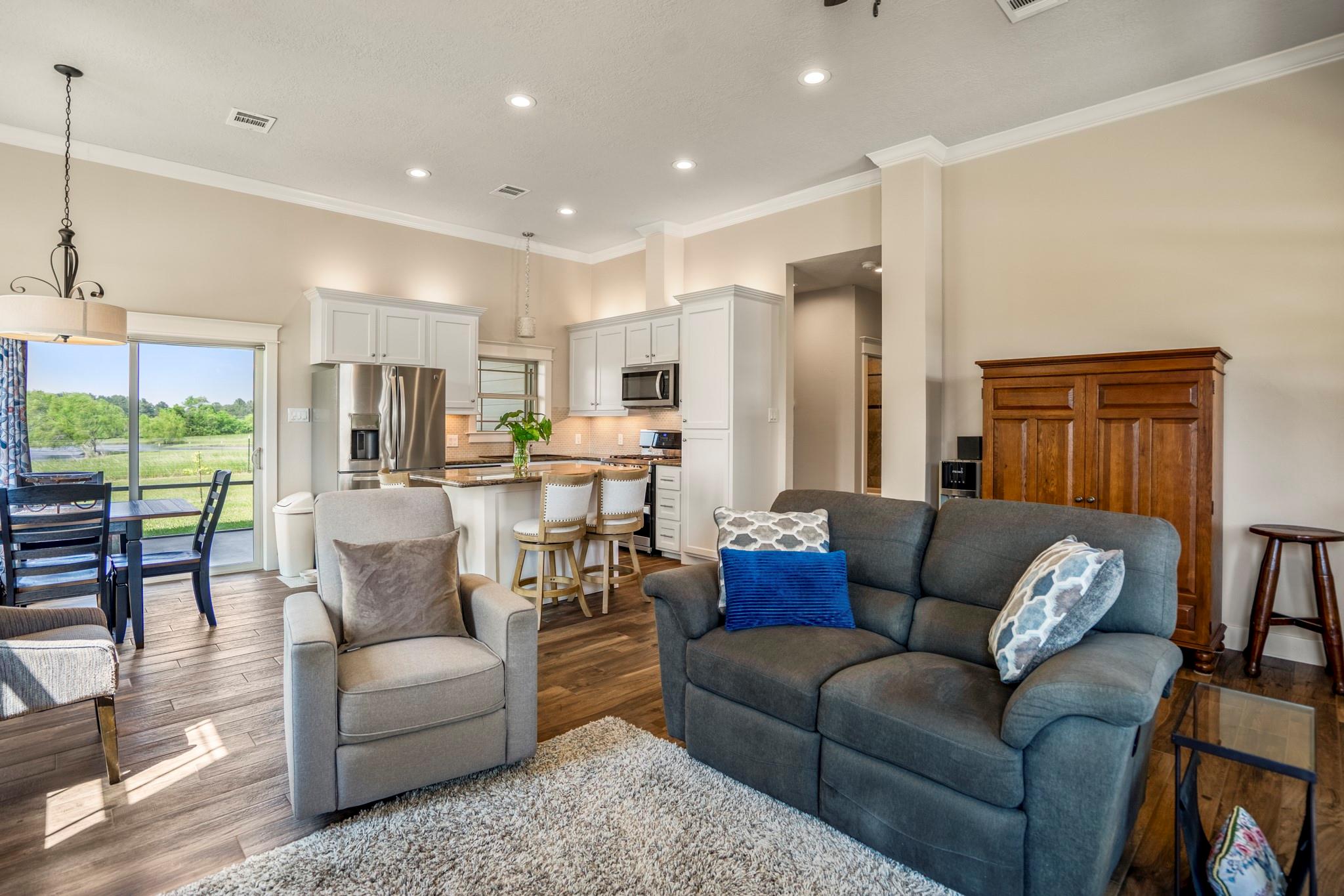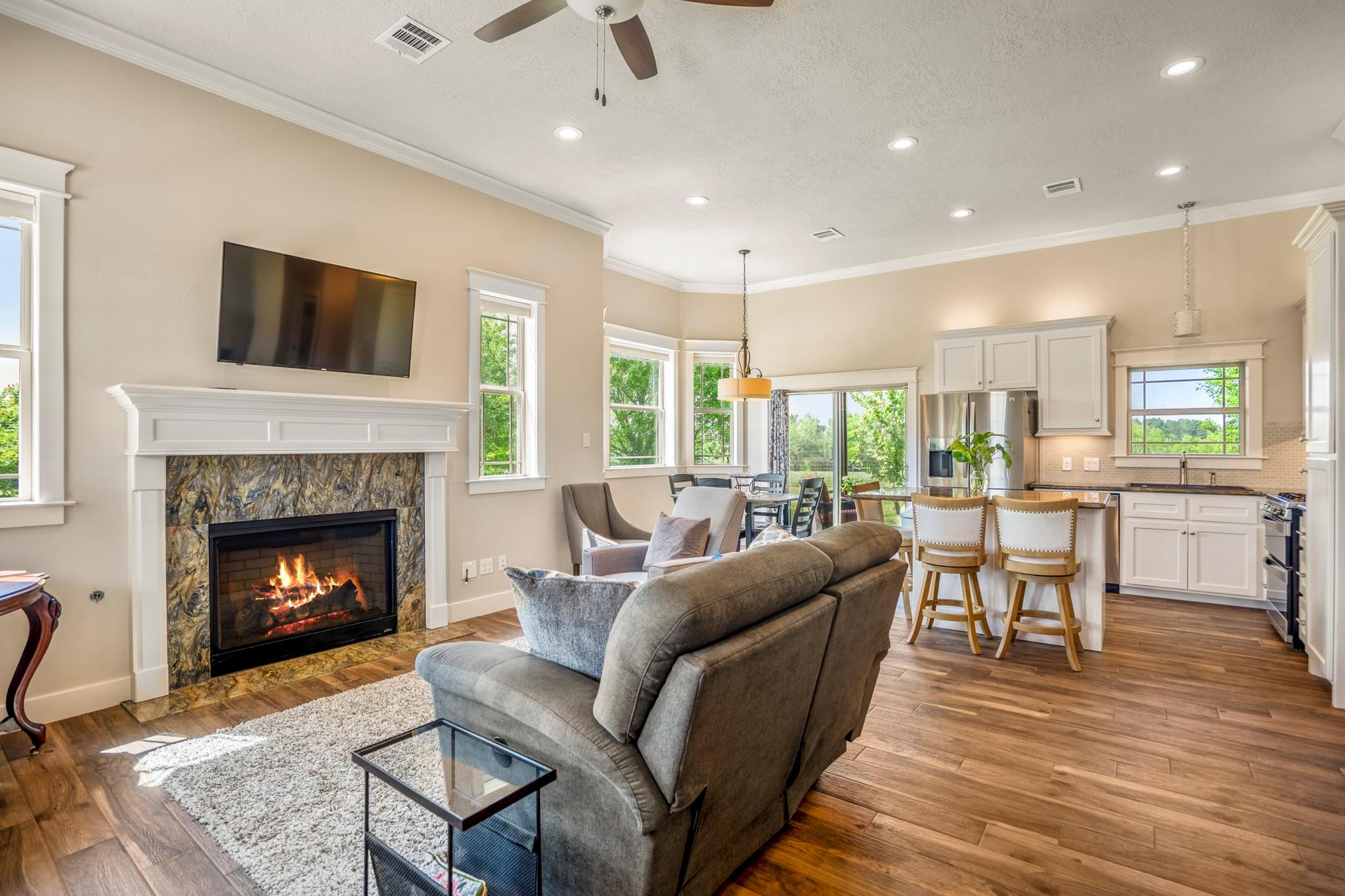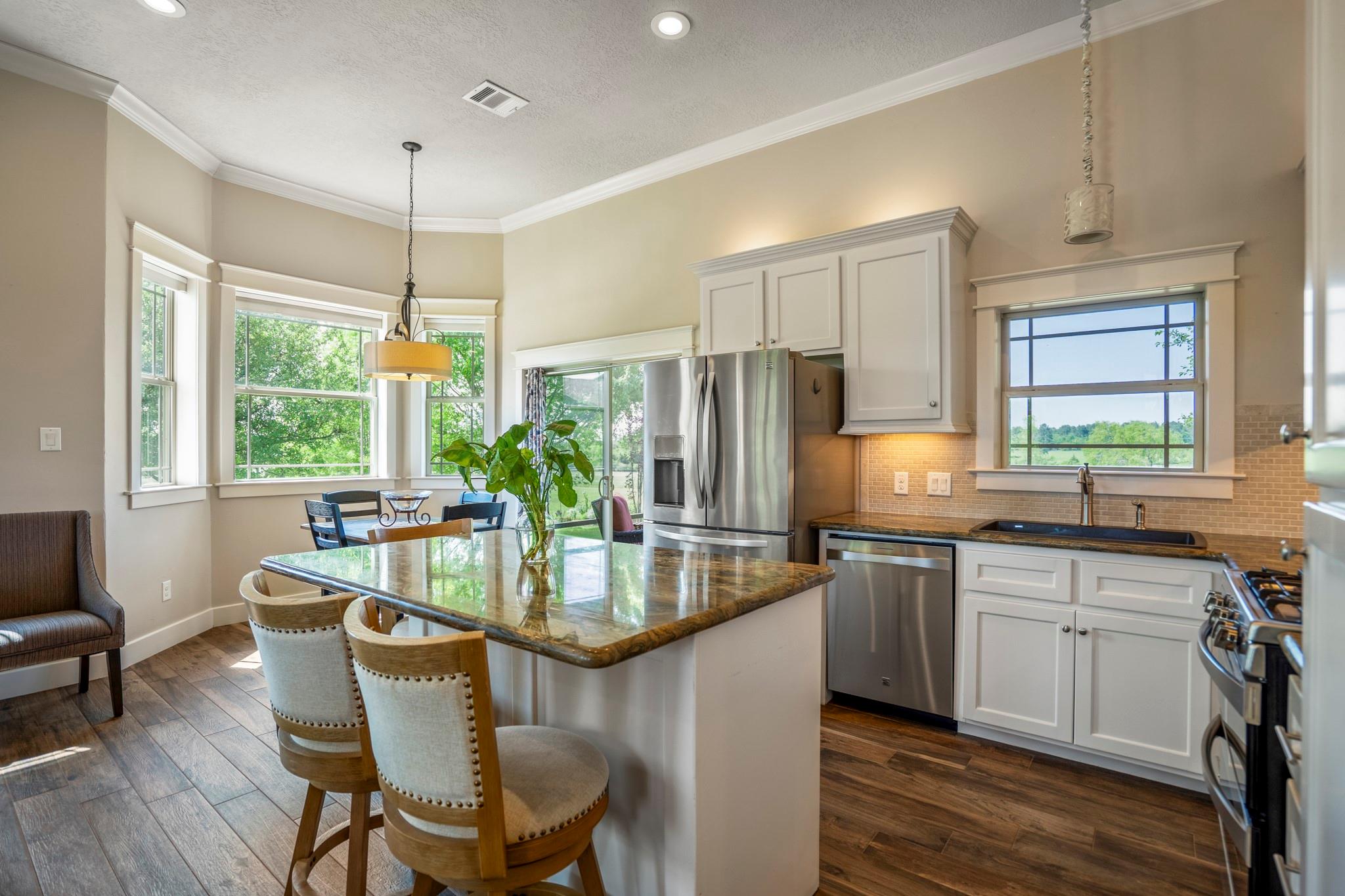 InteriorFireplace:2/Wood Burning FireplaceFloors:Carpet,Concrete,Tile,Vinyl PlankCountertop:GraniteBathroom Description:Disabled Access,Full Secondary Bathroom Down,Primary Bath: Double Sinks,Primary Bath: Shower Only,Secondary Bath(s): Soaking TubBedroom Desc:Primary Bed - 1st FloorKitchen Desc:Breakfast Bar,Island w/o Cooktop,Kitchen open to Family Room,Pots/Pans Drawers,Under Cabinet Lighting,Walk-in PantryRoom Description:Home Office/Study,Kitchen/Dining Combo,Living Area - 1st Floor,Living Area - 2nd Floor,Utility Room in HouseHeating:Central Electric,Heat Pump,ZonedCooling:Central Electric,Heat Pump,ZonedConnections:Electric Dryer Connections,Washer ConnectionsDishwasher:YesDisposal:YesCompactor:NoMicrowave:YesRange:Gas CooktopOven:Electric Oven,Single OvenIce Maker:NoEnergy Feature:Attic Vents,Ceiling Fans,Digital Program Thermostat,High-Efficiency HVAC,Insulated Doors,Insulated/Low-E windows,Insulation - Other,Radiant Attic Barrier,Tankless/On-Demand H2O HeaterInterior:Central Vacuum,Disabled Access,Fire/Smoke Alarm,High Ceiling,Refrigerator Included,Water Softener - Owned,Window Coverings