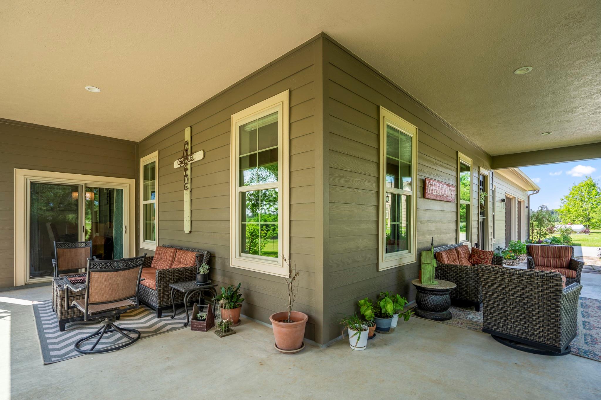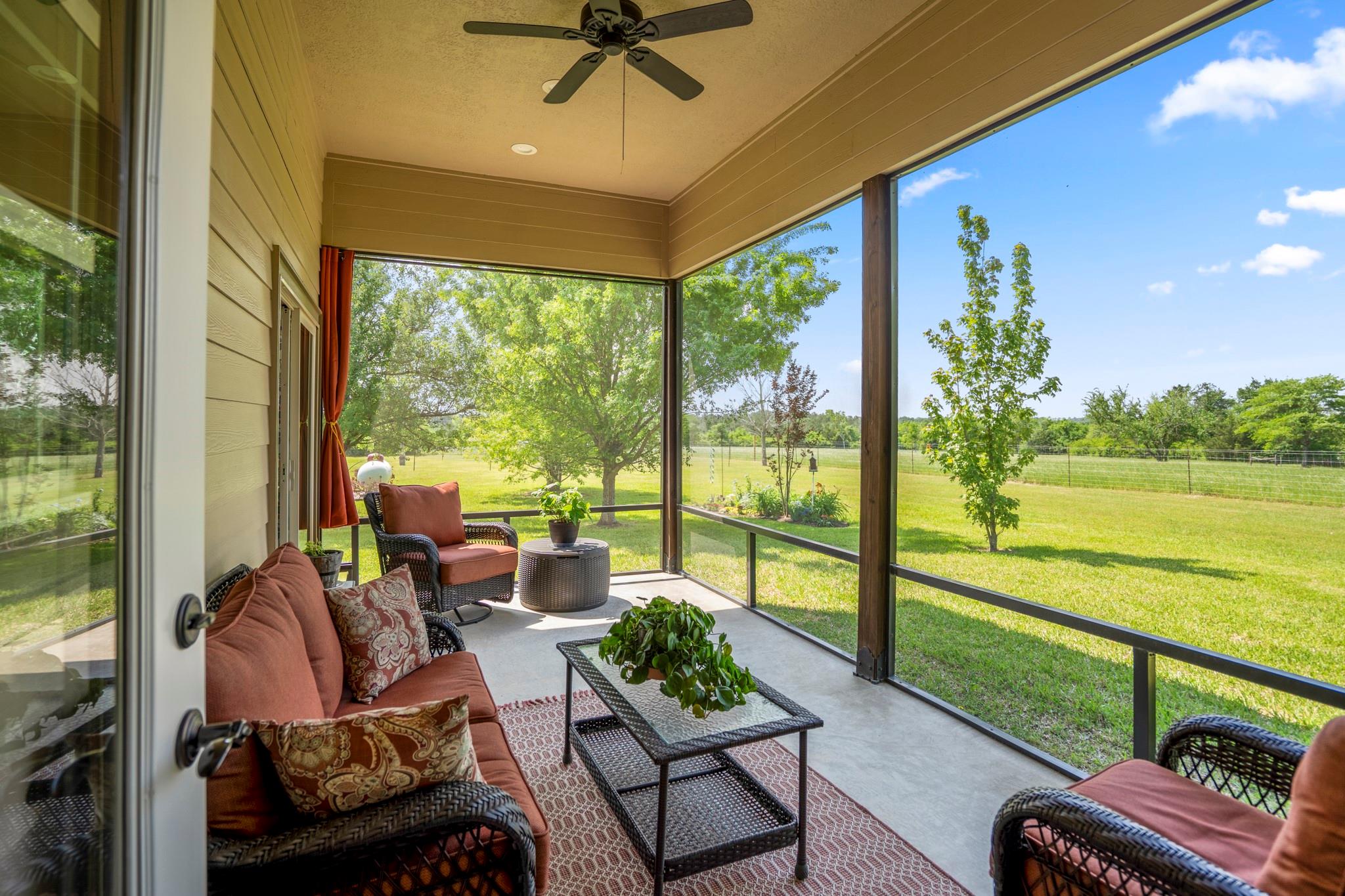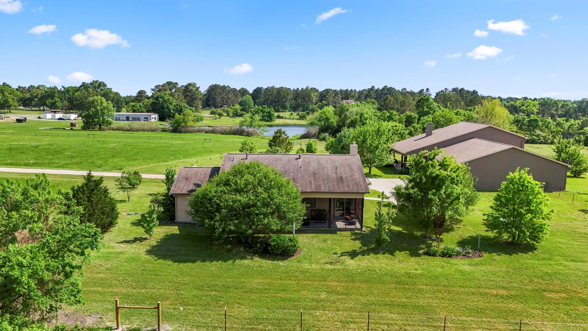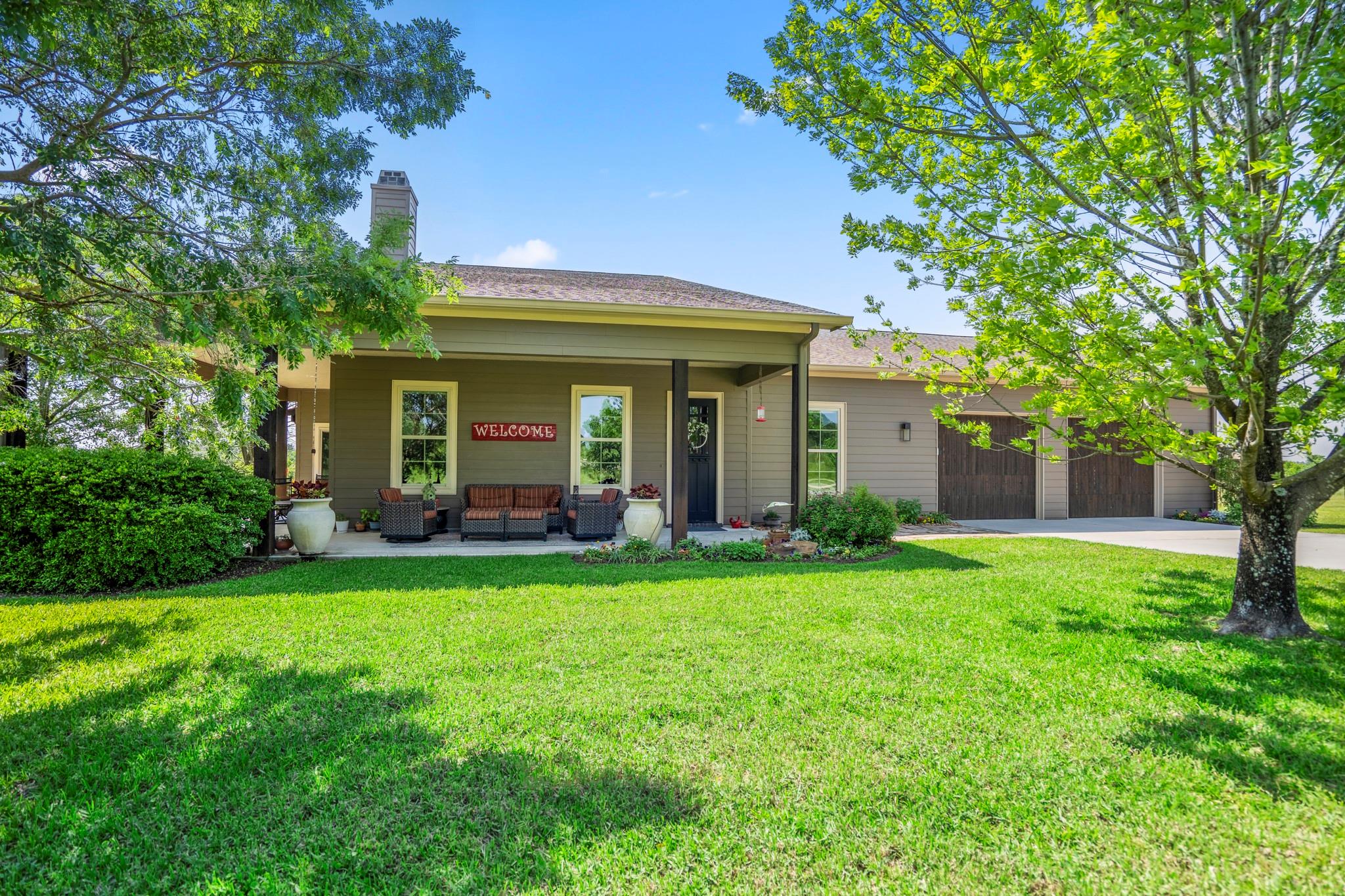 Two homes on 10.2 beautifully maintained, deed-restricted acres (7 acres are ag exempt). Perfect for multi-generational living or extended guests. Main home features open concept living w/3 beds/3 full baths, study, large upstairs den or game room, central vac, spacious closets, tandem 4-car garage w/storage cabinetry and workbench, insulated garage doors. Primary bed downstairs. Guest house is a 2 bed, 2 bath, 1 car garage. Nice closet built-ins, screened rear porch, curbless shower in primary bath and 3' door openings. Combined square footage is approx. 3700' with 5 beds, 5 full baths. Fabulous porches on both homes!!!! 2x6 exterior walls, BIBS insulation, tankless water heaters, propane fireplaces, heat pump HVAC systems, water softeners, 2 sprinkler systems, aerobic septic systems. Fully fenced, livestock-friendly, gated keypad entry, separately metered homes. Gate/well house on separate meter w/RV plug. Well house has additional storage. LOW utility bills. Move in ready!!!! MISD.