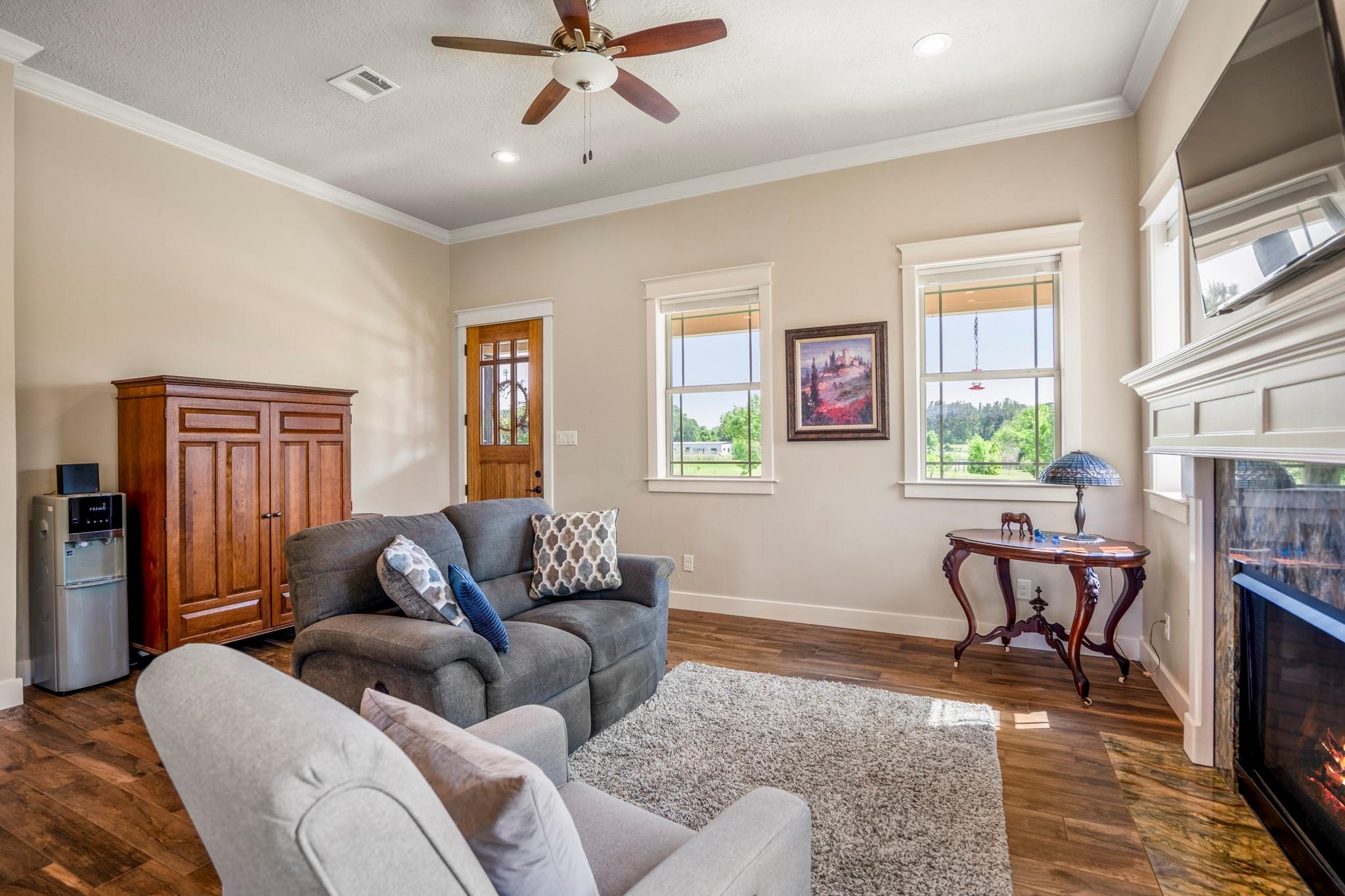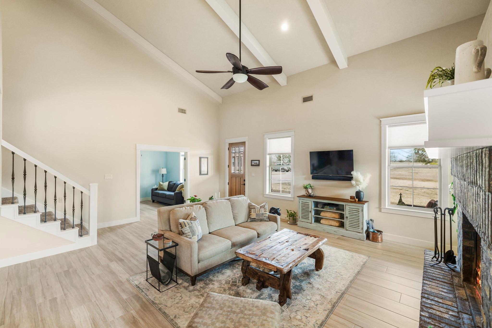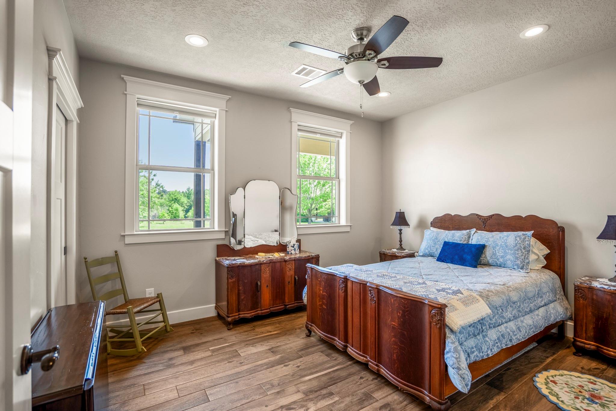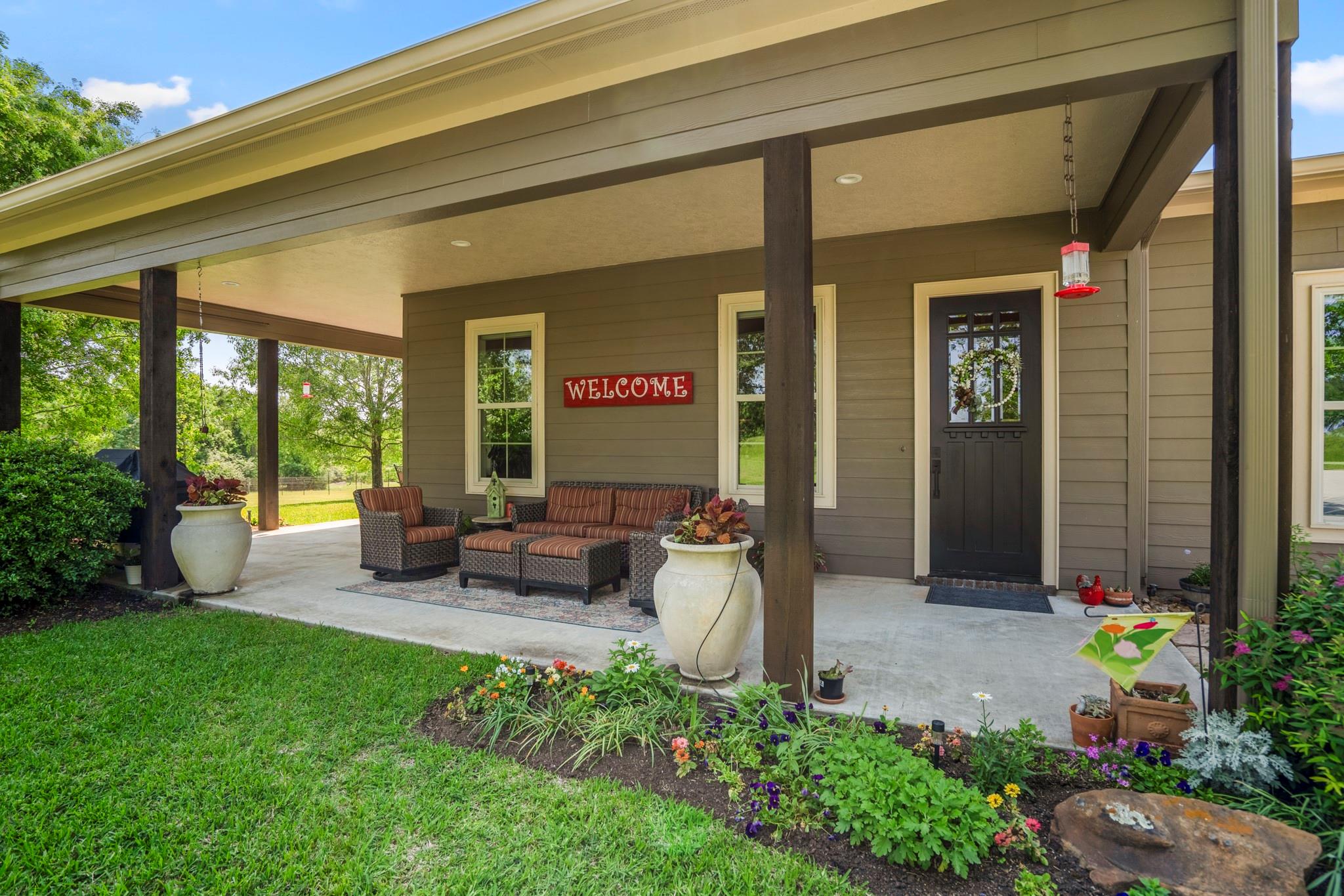 Two homes on 10.2 beautifully maintained, deed-restricted acres (7 acres are ag exempt). Perfect for multi-generational living or extended guests. Main home features open concept living w/3 beds/3 full baths, study, large upstairs den or game room, central vac, spacious closets, tandem 4-car garage w/storage cabinetry and workbench, insulated garage doors. Primary bed downstairs. Guest house is a 2 bed, 2 bath, 1 car garage. Nice closet built-ins, screened rear porch, curbless shower in primary bath and 3' door openings. Combined square footage is approx. 3700' with 5 beds, 5 full baths. Fabulous porches on both homes!!!! 2x6 exterior walls, BIBS insulation, tankless water heaters, propane fireplaces, heat pump HVAC systems, water softeners, 2 sprinkler systems, aerobic septic systems. Fully fenced, livestock-friendly, gated keypad entry, separately metered homes. Gate/well house on separate meter w/RV plug. Well house has additional storage. LOW utility bills. Move in ready!!!! MISD.