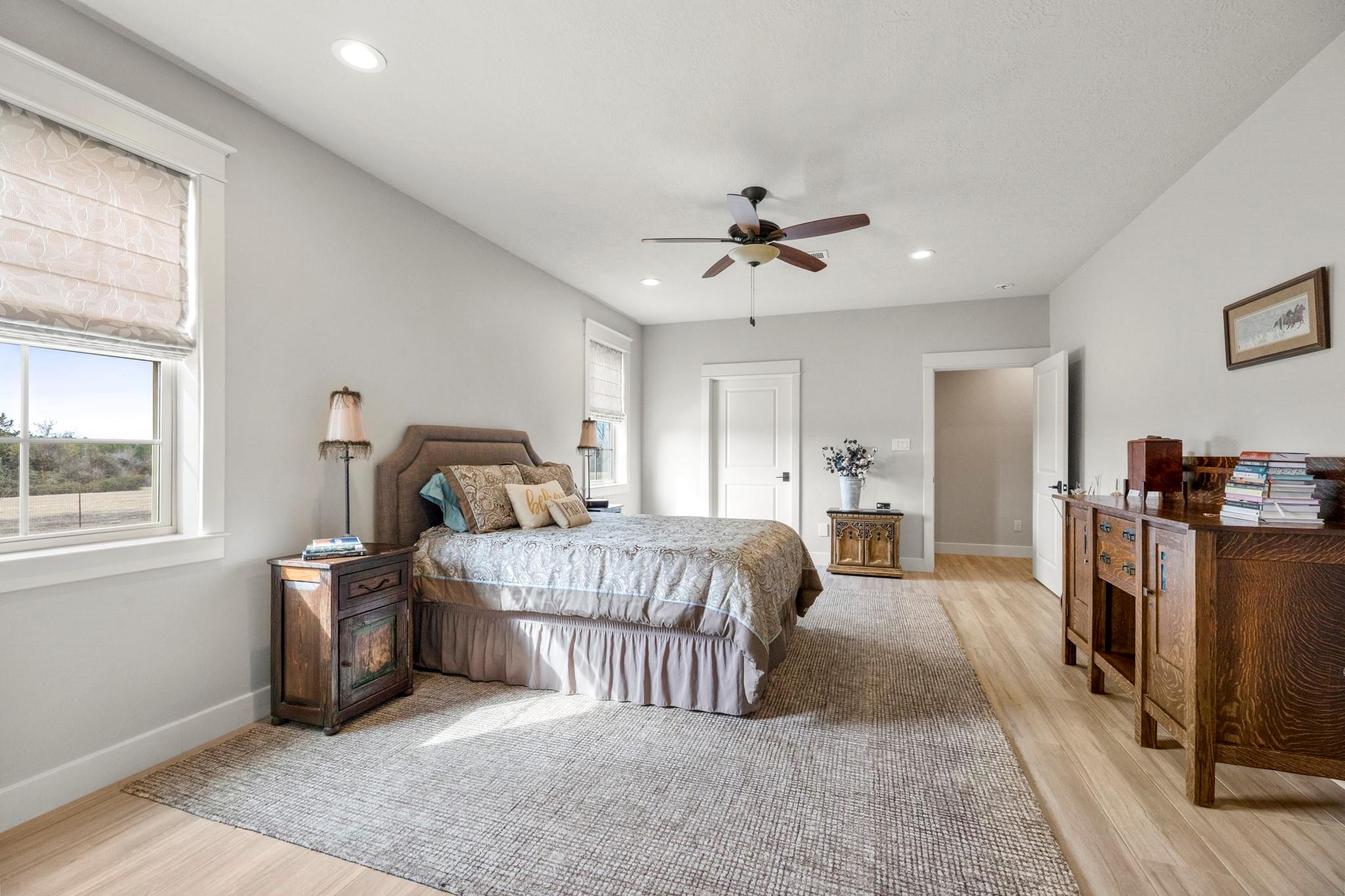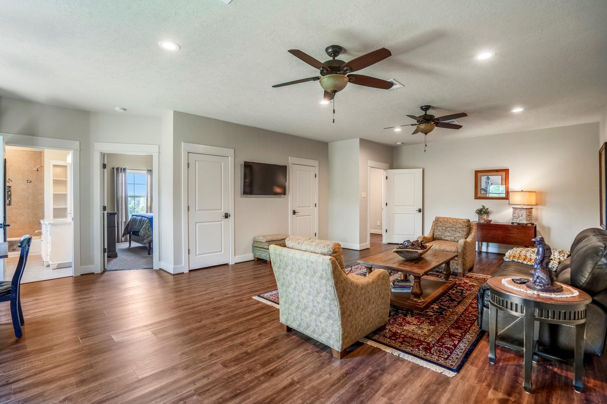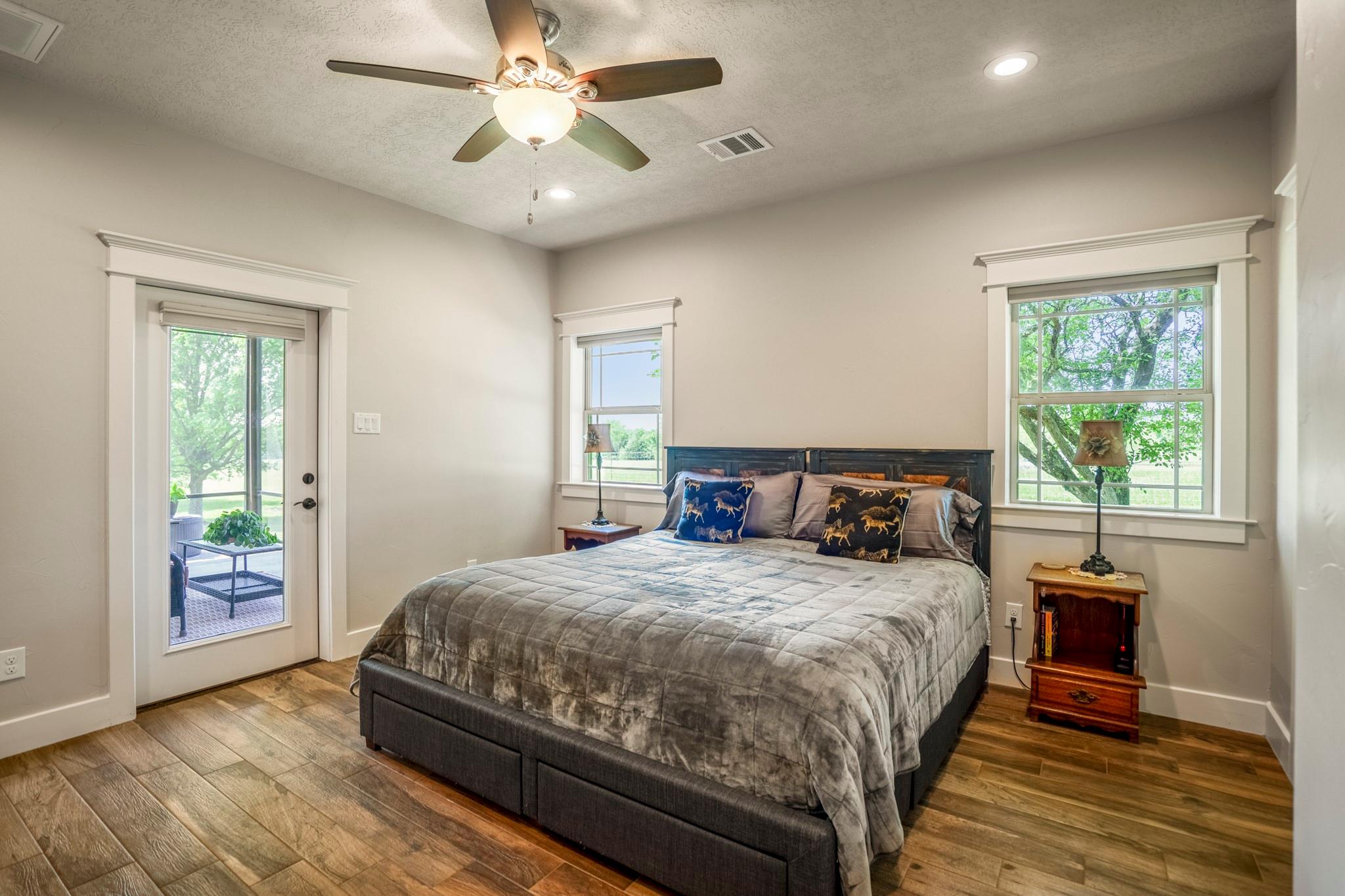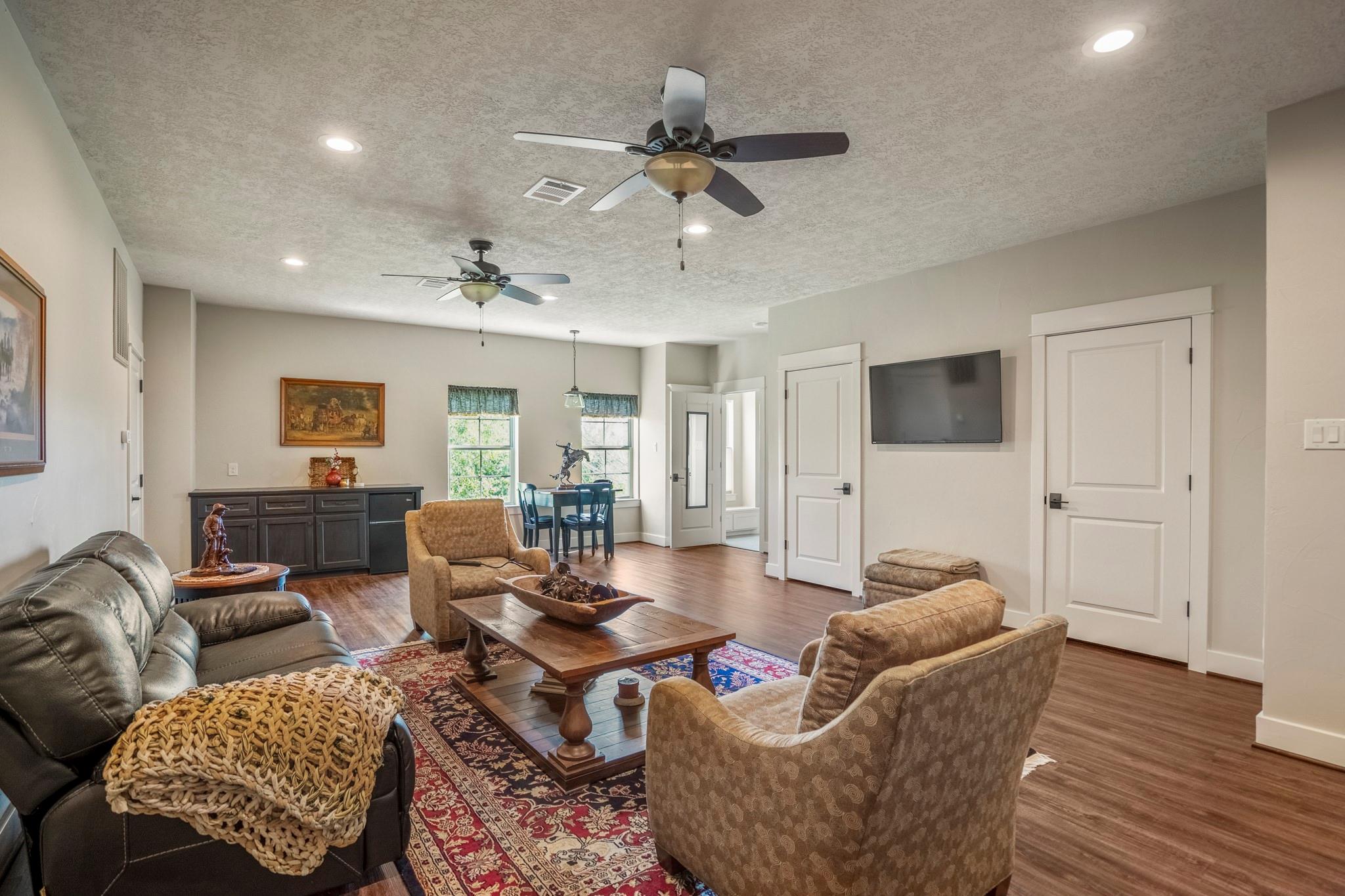 Two homes on 10.2 beautifully maintained, deed-restricted acres (7 acres are ag exempt). Perfect for multi-generational living or extended guests. Main home features open concept living w/3 beds/3 full baths, study, large upstairs den or game room, central vac, spacious closets, tandem 4-car garage w/storage cabinetry and workbench, insulated garage doors. Primary bed downstairs. Guest house is a 2 bed, 2 bath, 1 car garage. Nice closet built-ins, screened rear porch, curbless shower in primary bath and 3' door openings. Combined square footage is approx. 3700' with 5 beds, 5 full baths. Fabulous porches on both homes!!!! 2x6 exterior walls, BIBS insulation, tankless water heaters, propane fireplaces, heat pump HVAC systems, water softeners, 2 sprinkler systems, aerobic septic systems. Fully fenced, livestock-friendly, gated keypad entry, separately metered homes. Gate/well house on separate meter w/RV plug. Well house has additional storage. LOW utility bills. Move in ready!!!! MISD.