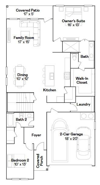 First FloorFamily Room:17x15Dining:10x12Kitchen:1stPrimary Bedroom:16x13Bedroom:10x11Exterior Porch/Balcony:17x5