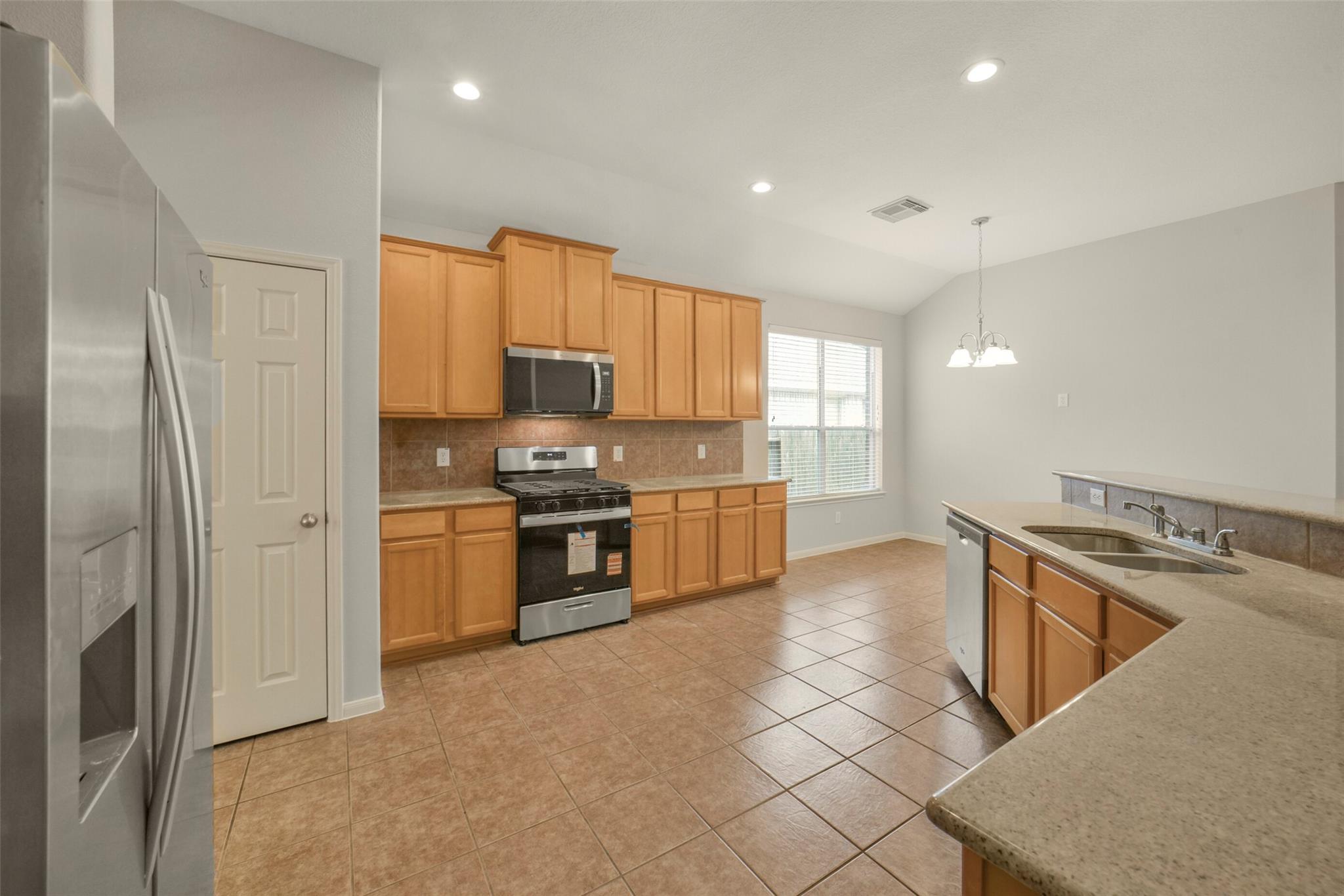 Beautifully maintained 1-story home in Cinco West at Seven Meadows, zoned to Katy ISD. This 3-bedroom, 2-bath home offers 1,940 sq ft of functional living space with open floor plan & ready for your immediate move in. Seller to provide a brand-new roof before closing with warranty. The open living concept with gas log fireplace, kitchen, breakfast and dining room, & family room overlooks a covered patio & fenced yard. No carpet throughout. The Large Primary Suite has a large bath with double sinks, tub, shower, & large closet. Laundry room leads to the garage. Like new stainless-steel appliances included, refrigerator, washer and dryer included. Easy walk to school w/ easy access to 99 & Westpark. Zoned to award-winning Katy ISD schools, this home offers luxury, space, and an unbeatable location in the heart of Cinco Ranch. LOW TAX RATE 1.96* Community amenities include area pool and recreational facilities. Convenient access to shopping, dining, and major roadways in Fort Bend County.