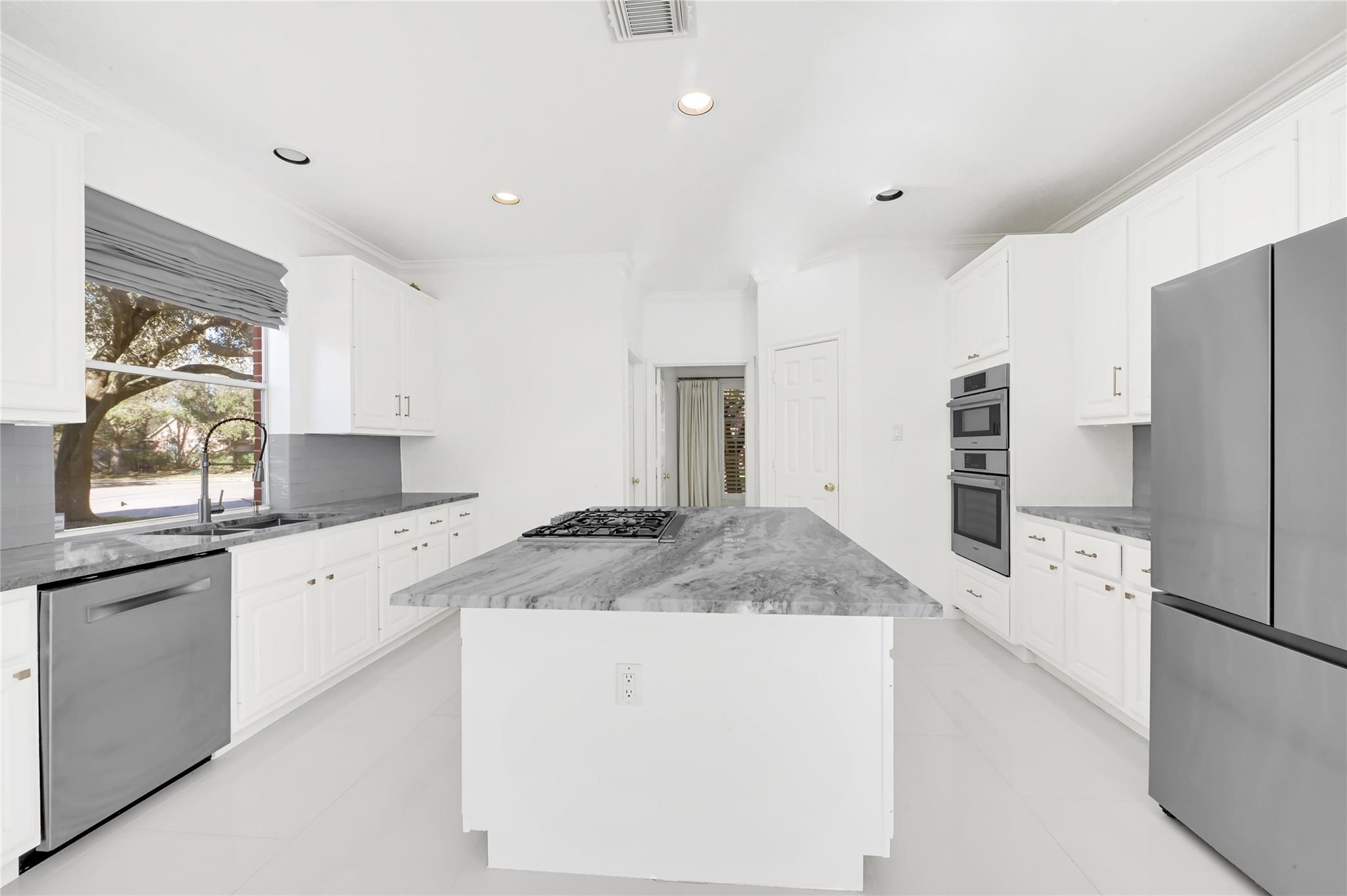 /monthRecently refreshed with a crisp, all-white paint palette, this home feels bright, airy, and modern, allowing natural light to enhance every space.As you enter through beautiful French doors, you're greeted by a dedicated office space featuring built-in bookshelves, perfect for a home library or workspace. The inviting living room boasts abundant storage and seamlessly flows into a sunny breakfast nook, ideal for casual dining and morning coffee.The gourmet kitchen is a chef's dream, equipped with granite countertops, a center island, Thermador 5-burner cooktop, under-cabinet lighting, and extensive cabinetry. Step outside to your private backyard oasis, complete with a newly plastered PebbleTec pool, separate Jacuzzi, and a fully equipped outdoor kitchen, making it an entertainer's paradise.The home's prime location offers convenient access to downtown Houston, The Woodlands, Old Town Spring, and major employers like Exxon, all within a short drive.