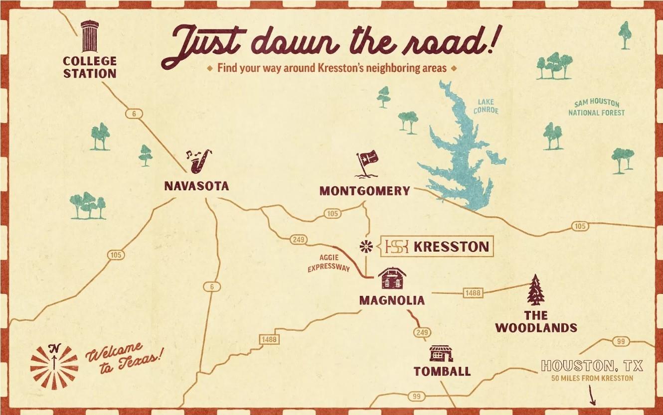 Available NOW! Your Dream Home Awaits – Move-In Ready! This boutique section showcases elegant paver driveways and walkways for lasting curb appeal. The Lauren Plan boasts a spacious open-concept design with a gourmet kitchen featuring a large island, perfect for gatherings. A standout feature is the optional pocket office, offering added flexibility for work or hobbies. The luxurious primary bath includes a freestanding tub, while the covered patio creates a relaxing backyard oasis. Wood-look tile enhances the main areas with modern durability. Chesmar Homes is committed to making home the happiest place in the world within Magnolia ISD’s vibrant Kresston community. Conveniently located between Hwy 249 and Hwy 105 along FM 1486, this Johnson Development master-planned neighborhood will feature The Boot House, pickleball, splash pad, event lawn, playground, dog park, scenic trails, lush parks. Secure this home today before it’s gone!