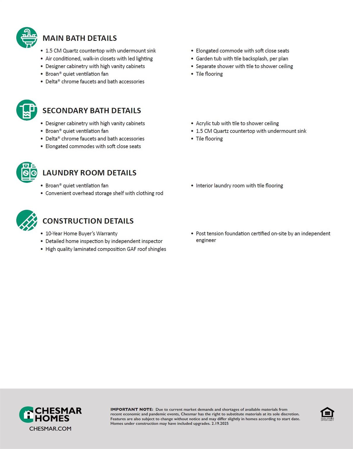 InteriorFloors:Carpet,TileCountertop:GraniteBathroom Description:Primary Bath: Double Sinks,Primary Bath: Separate Shower,Primary Bath: Soaking Tub,Secondary Bath(s): Tub/Shower ComboBedroom Desc:En-Suite Bath,Primary Bed - 1st Floor,Walk-In ClosetKitchen Desc:Kitchen open to Family RoomRoom Description:Family Room,Home Office/Study,Utility Room in HouseHeating:Central GasCooling:Central ElectricConnections:Electric Dryer Connections,Washer ConnectionsDishwasher:YesDisposal:YesCompactor:NoMicrowave:YesOven:Convection OvenIce Maker:NoEnergy Feature:Digital Program Thermostat,Energy Star Appliances,High-Efficiency HVAC,Insulated/Low-E windowsInterior:Fire/Smoke Alarm,High Ceiling,Prewired for Alarm System,Window Coverings