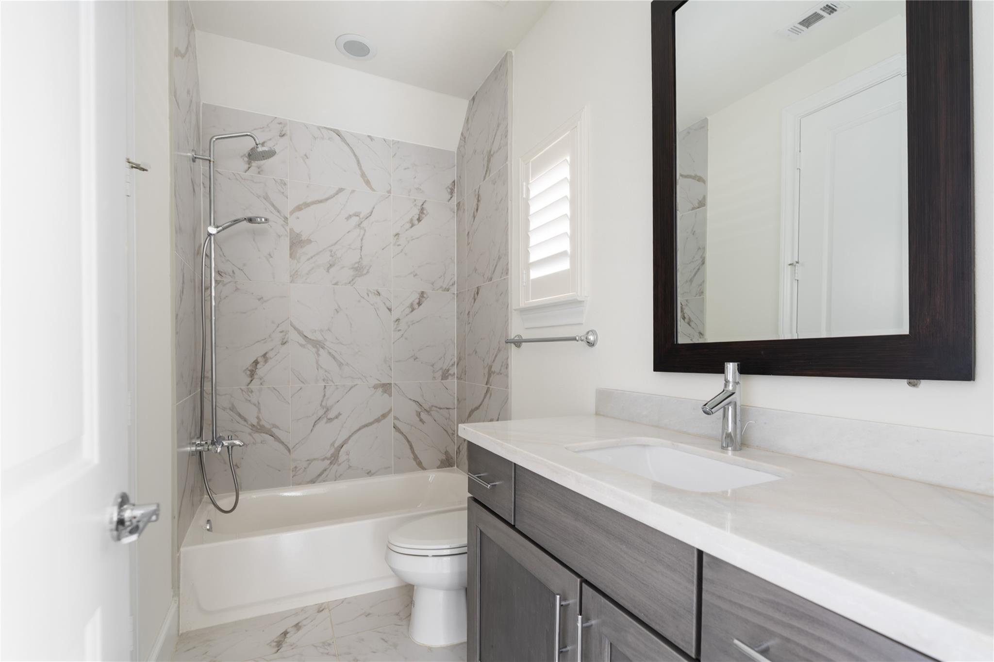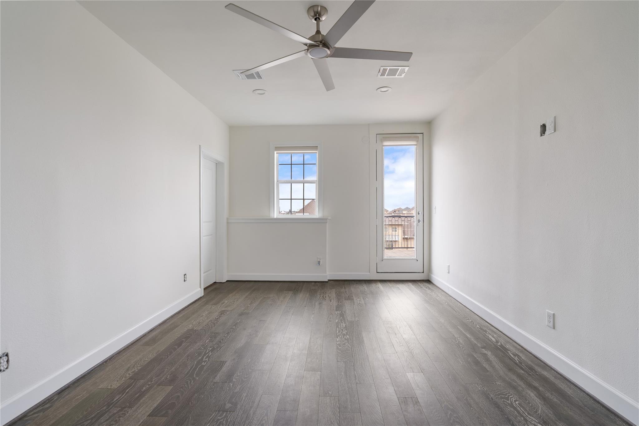 Ideally located on a corner lot in the gated community of Cottage Grove Lake, this home benefits from all of the community features (central lake, resort style pool, dog parks, walking paths) while still offering easy street-front gated access & guest street parking. ELEVATOR equipped 3BR, 3.5BA with soaring ceilings, abundant light,& elegant finishes throughout including wide-slat plantation shutters on all windows. The open-concept 2nd floor boasts 12' ceilings, hardwood floors, speakers & walls of windows. The chef’s kitchen features granite countertops, stainless appliances, wine refrigerator & walk-in pantry. The 3rd-floor primary suite includes a spa-like bath with freestanding soaking tub, frameless shower, dual vanities & large closet. All bedrooms have ensuite baths and walk-in closets. Customizations including a fourth floor built-out game room with access to a stunning rooftop patio with unobstructed skyline views.