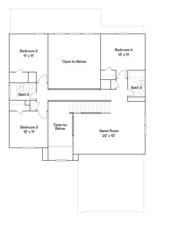 Second FloorBedroom:13x11Bedroom 2:12x11Bedroom 3:11x11Game Room:22x12