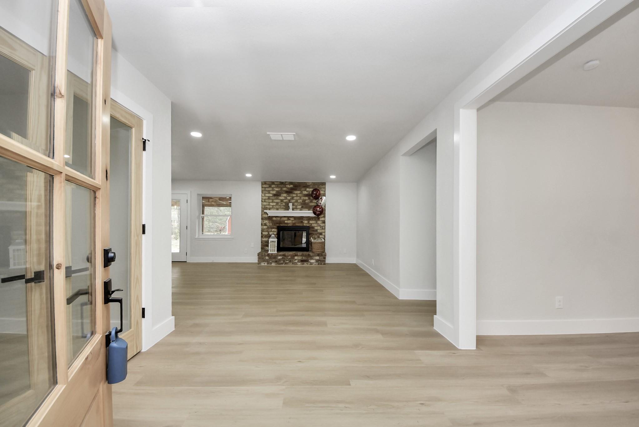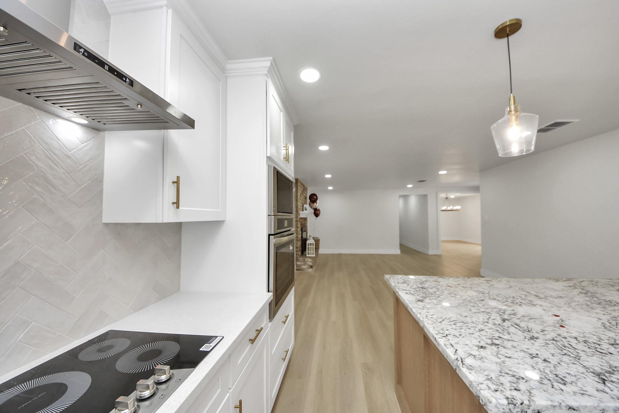 Move-in ready and beautifully redesigned, this home blends style, comfort, and quality craftsmanship throughout. Luxury vinyl plank flooring flows seamlessly, creating a warm and modern feel. The stunning kitchen features a custom oversized island with quartz countertops, a striking herringbone backsplash, white farmhouse sink, and brand-new stainless steel appliances—perfect for entertaining. Bathrooms have been tastefully updated with designer tilework and elegant finishes. New energy-efficient windows fill the home with natural light and include a transferable lifetime warranty. Enjoy the redesigned patio overlooking lush landscaping, with no HOA and peaceful outdoor living. With a transferable lifetime foundation warranty, this home offers lasting value and peace of mind.
