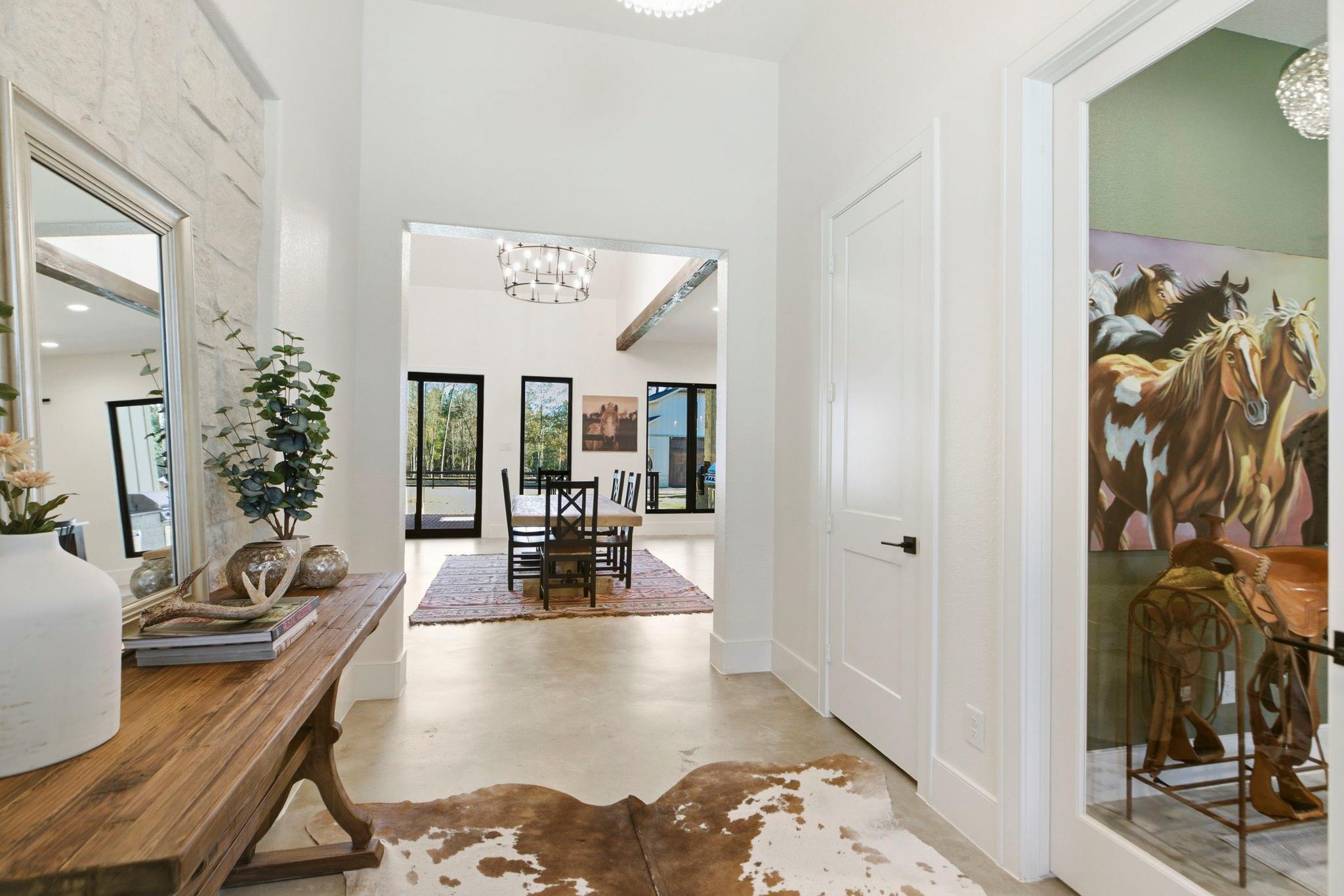 26211 Crown Ranch…Beautiful 3,399-sq-ft custom home and 2 acres surrounded by expansive grounds and thoughtfully designed amenities! The home showcases an open-concept kitchen, dining, and living area with raised ceilings, natural light, and quality craftsmanship throughout! 4 bedrooms | 3.5 baths | Private office | playroom/flex space | Gorgeous primary suite with spa-style ensuite bath | His-and-hers closets | Outdoor kitchen perfect for entertaining | Seamless indoor-outdoor flow | Whole-home generator. Equestrian & Exterior Highlights: Architecturally matching horse barn/shop | Partially Cleared and usable acreage | Ample space for additional structures or residence | Special property that combines luxury living, functional acreage, and equestrian amenities in the highly sought after Crown Ranch community. An additional 2 acres is also available! Minutes from 249, Montgomery and Magnolia! Magnolia ISD