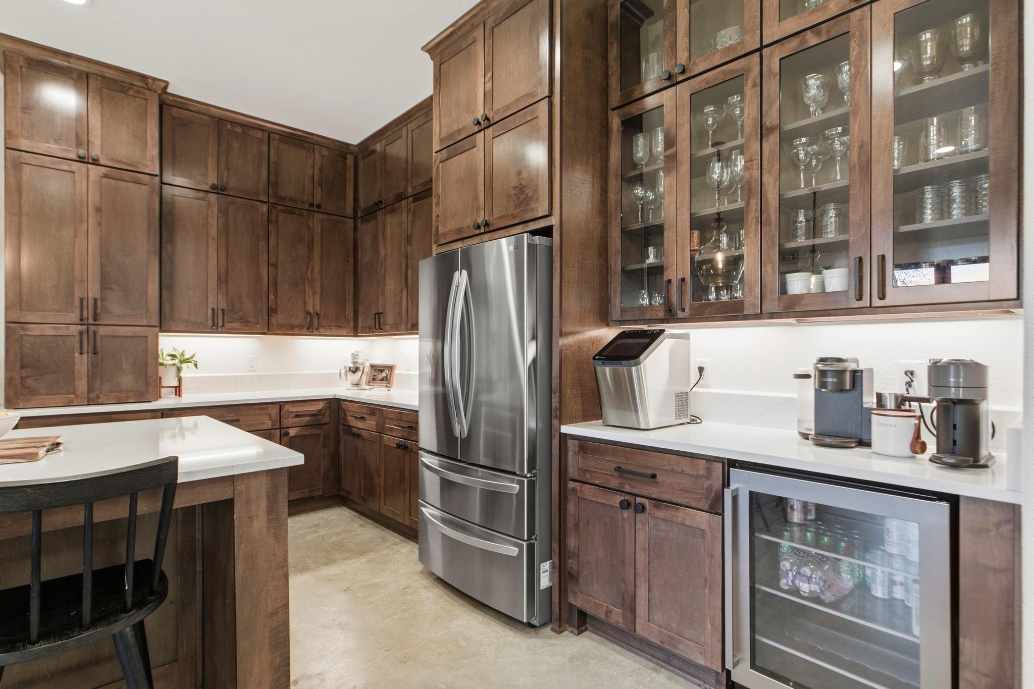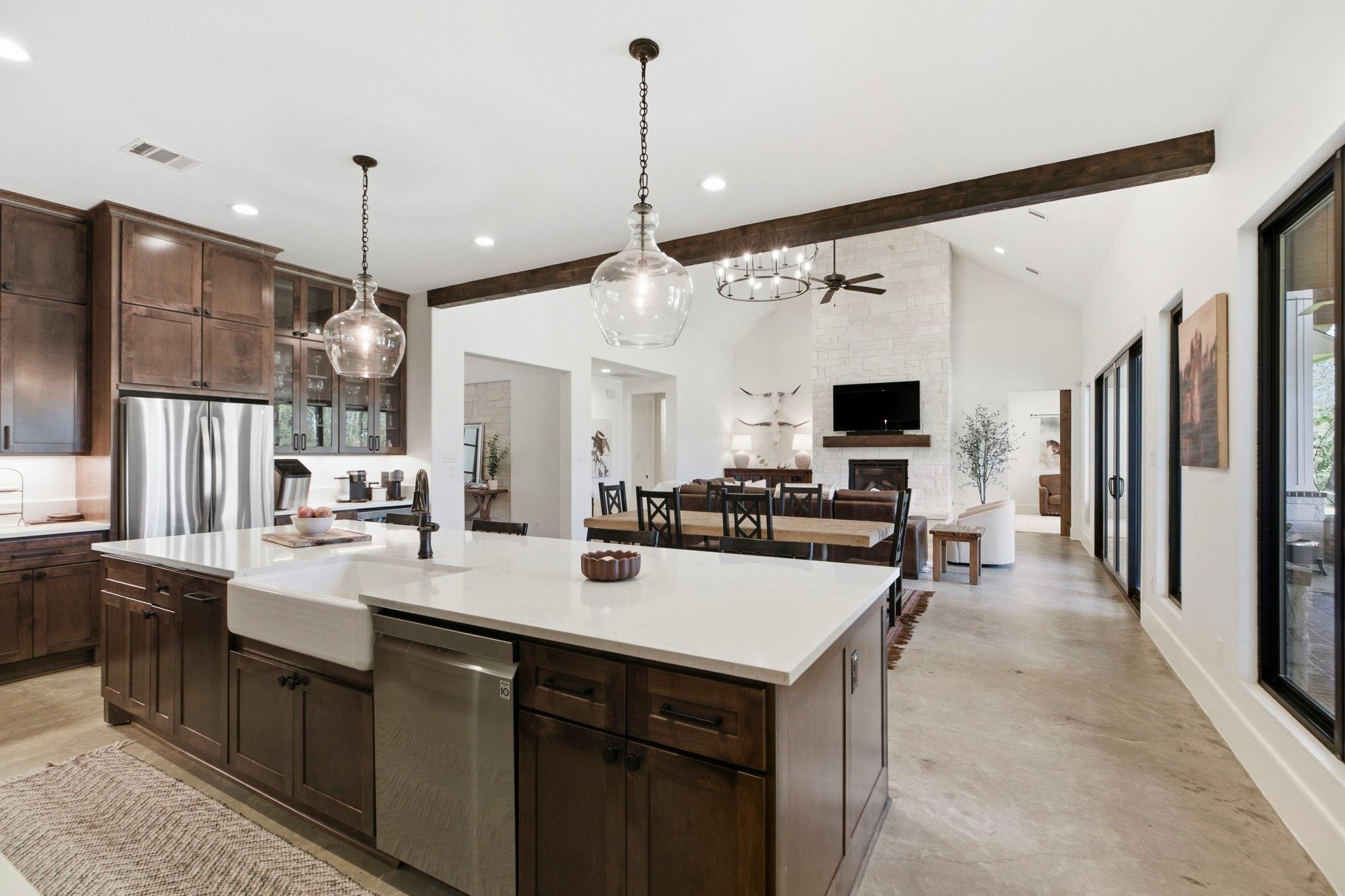 InteriorFireplace:1/Wood Burning FireplaceFloors:Carpet,Concrete,TileCountertop:GraniteBathroom Description:Full Secondary Bathroom Down,Half Bath,Primary Bath: Double Sinks,Primary Bath: Separate Shower,Secondary Bath(s): Double Sinks,Secondary Bath(s): Separate ShowerBedroom Desc:All Bedrooms Down,En-Suite Bath,Primary Bed - 1st Floor,Split Plan,Walk-In ClosetKitchen Desc:Breakfast Bar,Instant Hot Water,Island w/o Cooktop,Kitchen open to Family Room,Pantry,Pot Filler,Pots/Pans Drawers,Under Cabinet Lighting,Walk-in PantryRoom Description:Family Room,Home Office/Study,Kitchen/Dining Combo,Living/Dining Combo,Utility Room in GarageHeating:Central ElectricCooling:Central ElectricConnections:Electric Dryer Connections,Washer ConnectionsDishwasher:YesDisposal:YesMicrowave:YesRange:Gas RangeEnergy Feature:Ceiling Fans,Digital Program Thermostat,Energy Star Appliances,Generator,HVAC>13 SEER,Insulated Doors,Insulated/Low-E windowsInterior:Crown Molding,Fire/Smoke Alarm,Formal Entry/Foyer,High Ceiling,Prewired for Alarm System,Refrigerator Included,Vaulted Ceiling,Wine/Beverage Fridge