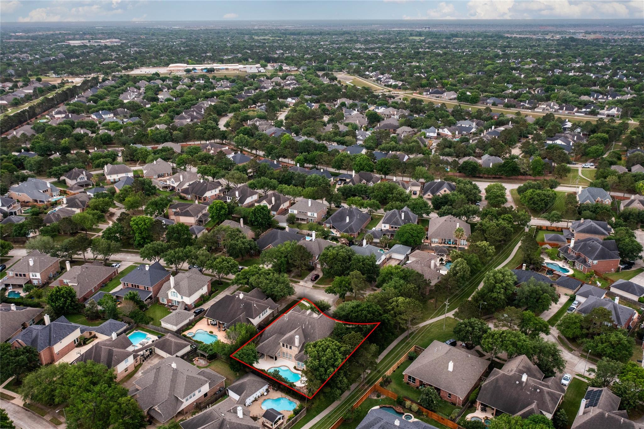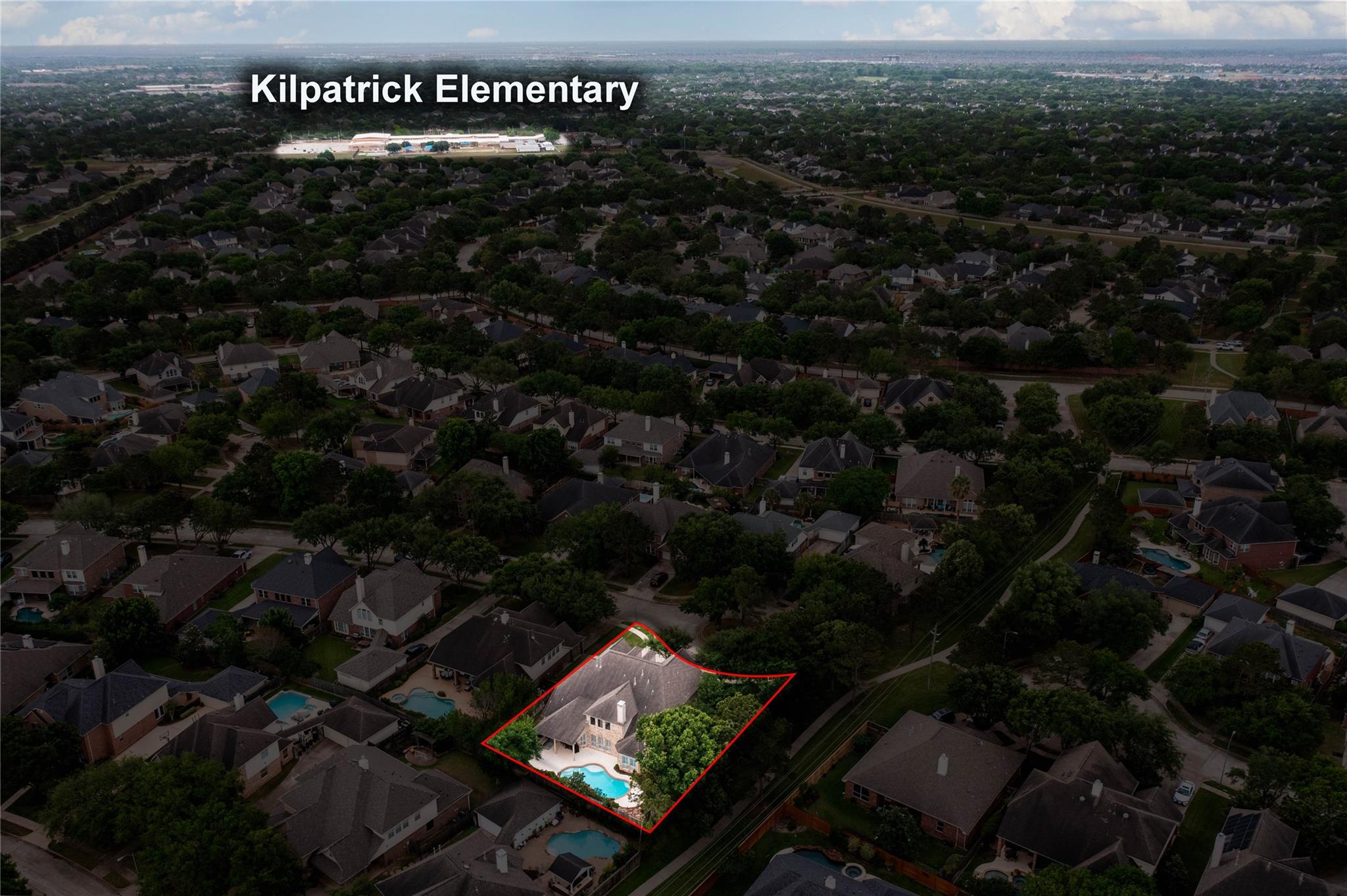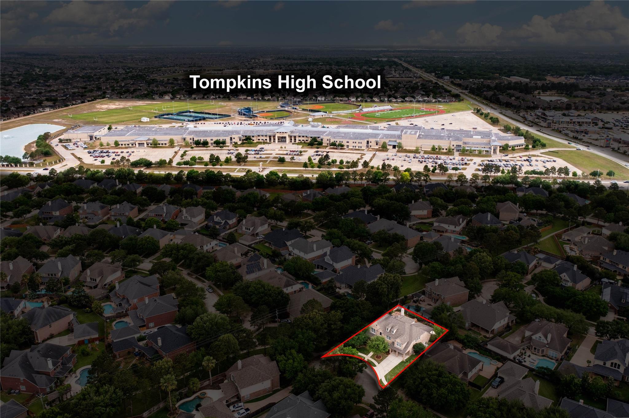 WALK OR BIKE RIDE to A+ TOMPKINS HS and KILPATRICK ELEMENTARY SCHOOLS!! Meticulously maintained 5 bedroom home with POOL in CINCO RANCH at the END OF THE CUL-DE-SAC and next to a GREENBELT!! Oversized tile flooring in entry, family room, kitchen, breakfast, utility room & bathrooms. Engineered wood flooring in the formal dining room, LARGE STUDY & 2 upstairs bedrooms. The kitchen includes plenty of premier 42" 'built on-site' cabinets, large granite island & countertops, GAS COOK TOP, under cabinet lighting & Butler's pantry. SPACIOUS PRIMARY SUITE with super durable SPC flooring & UPDATED BATH! Good sized secondary bedrooms upstairs...EACH WITH WALK-IN CLOSETS. Gameroom. 2nd FLOOR WALK-IN ATTIC STORAGE...this home has amazing storage & storage shelves. Outdoor oasis with POOL & WATERFALL, tongue & groove covered patio ceiling, gas line for future grill, playhouse & BUTTERFLY GARDEN landscaping. RECENT IMPROVEMENTS : 2 water heaters (2025), downstairs a/c & fence (2024), ROOF (2020).