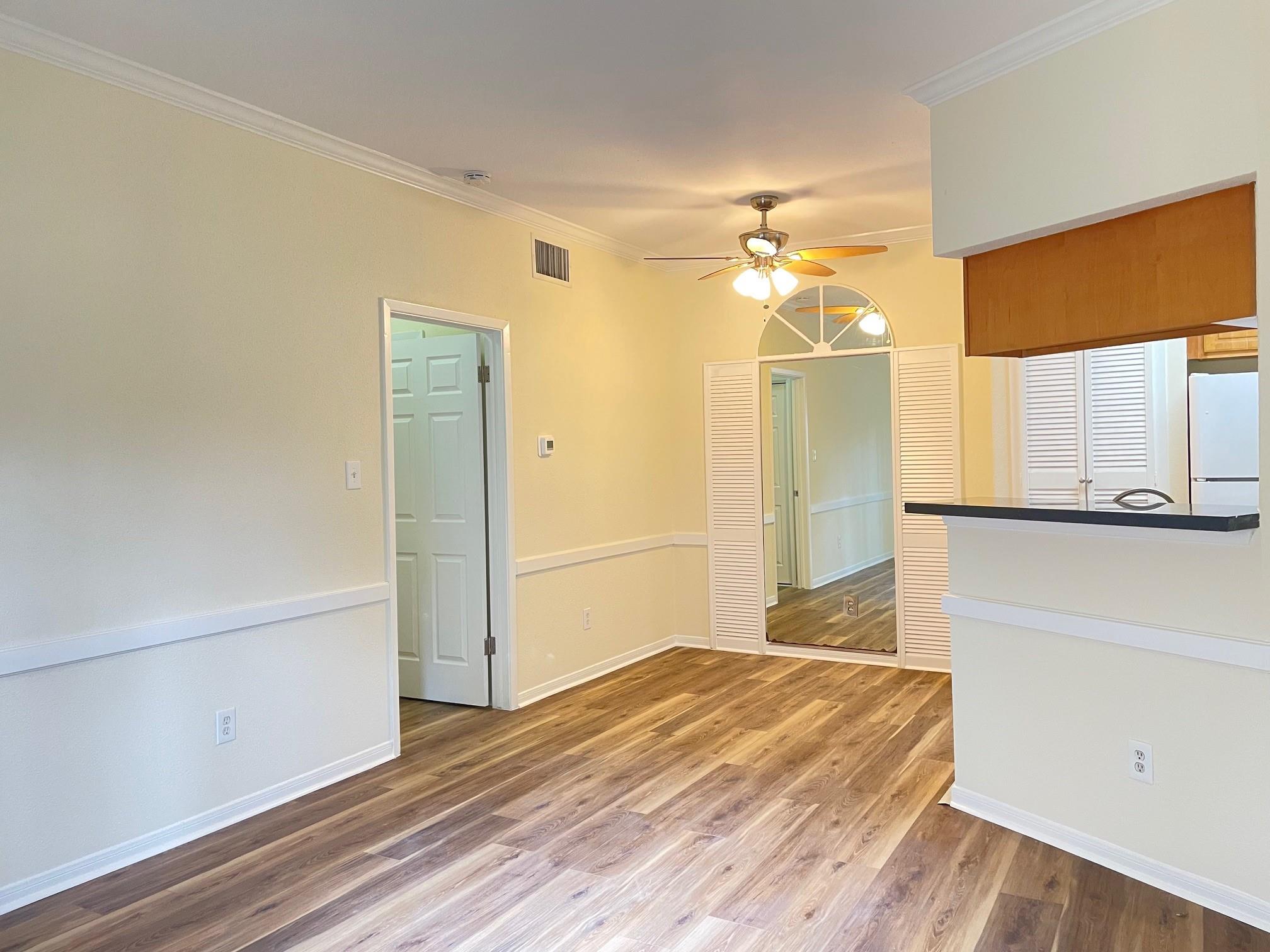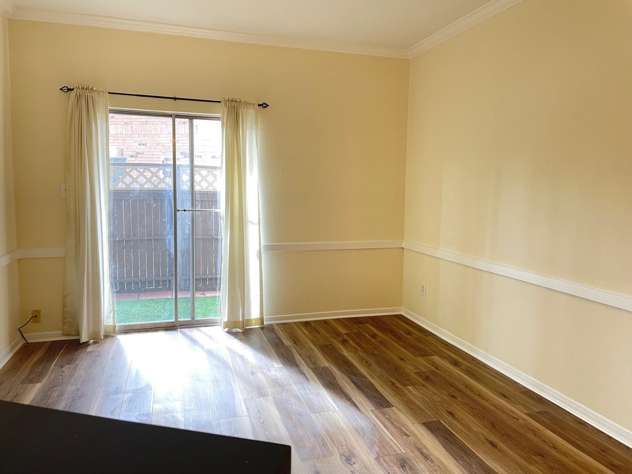 1 Bedroom / 1 Bath unit for lease on Holly Hall off Almeda, minutes from the medical center. Fully remodeled recently, ground floor, No stairs to climb. Comes with refrigerator + in-unit Washer and Dryer. New tile floor and granite countertop in kitchen. New wood flooring in living / dining/ corridor/ bedroom. Remodeled bathroom with new faucet, shower/tub and granite countertop. Tiled backyard space for BBQ.