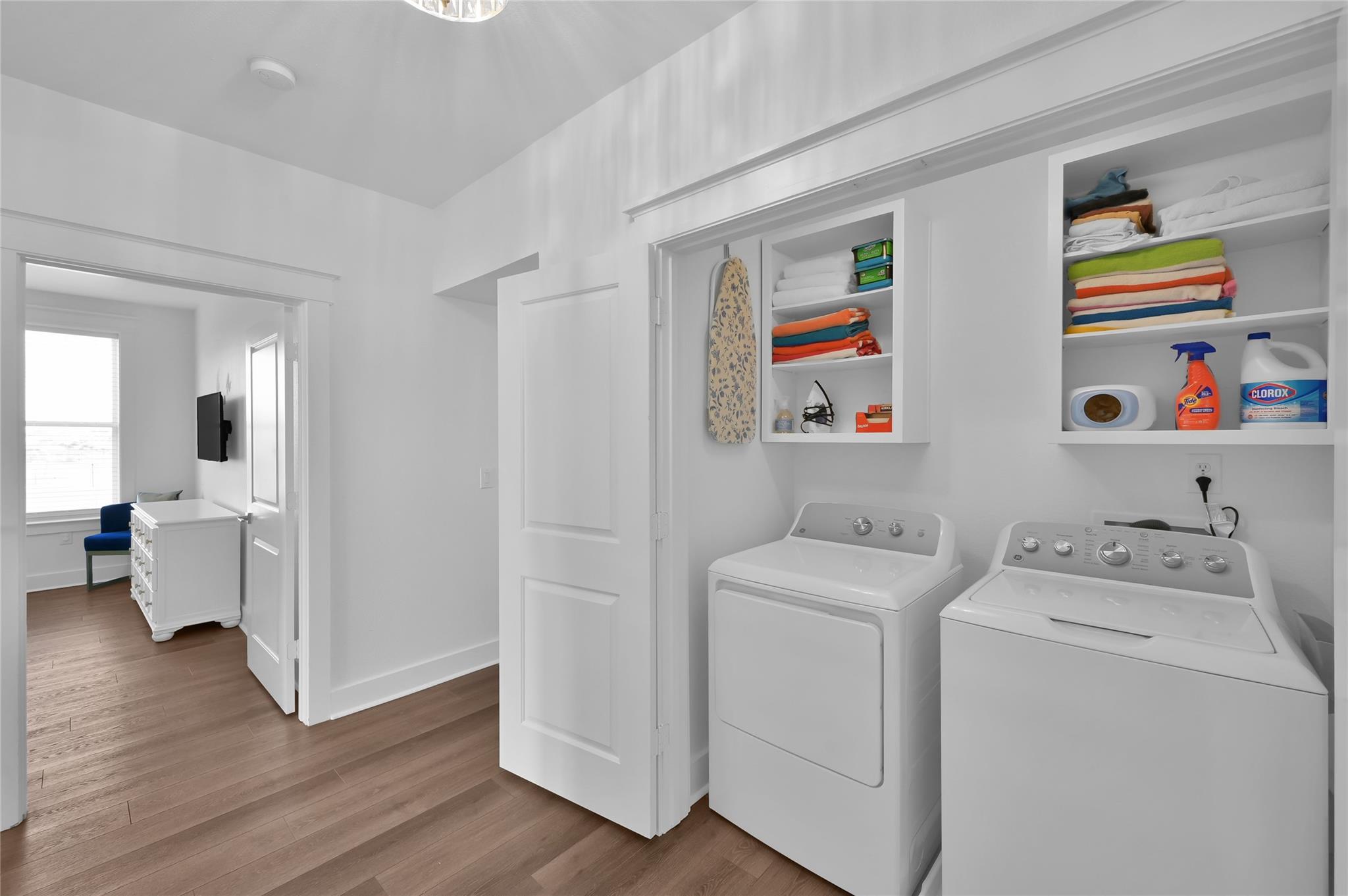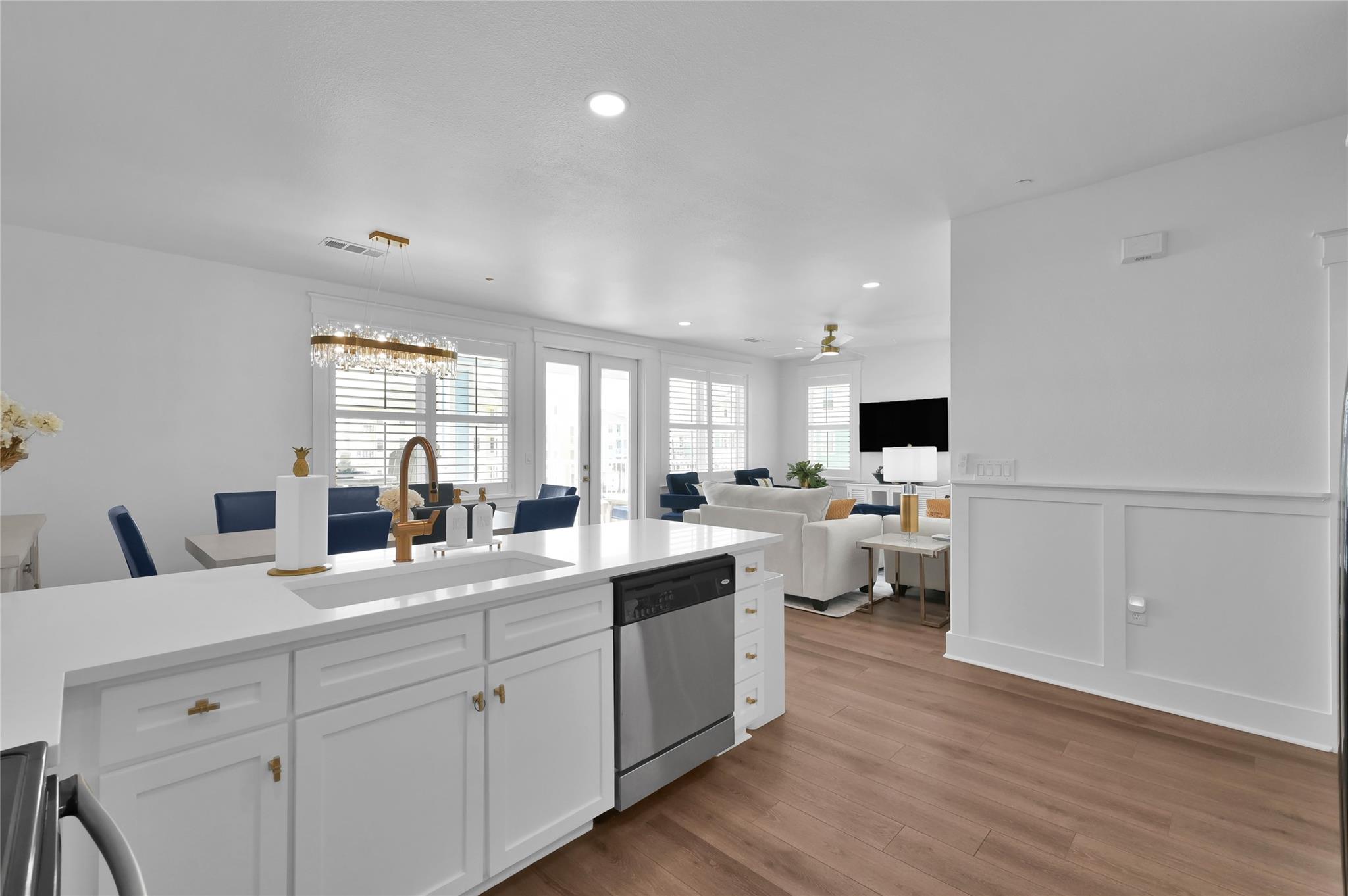 InteriorFloors:LaminateBathroom Description:Primary Bath: Double Sinks,Primary Bath: Shower Only,Secondary Bath(s): Tub/Shower ComboBedroom Desc:All Bedrooms Down,Primary Bed - 1st Floor,Walk-In ClosetKitchen Desc:Kitchen open to Family RoomRoom Description:1 Living Area,Entry,Family Room,Kitchen/Dining Combo,Living Area - 1st Floor,Living/Dining Combo,Utility Room in HouseHeating:Central ElectricCooling:Central ElectricDishwasher:YesDisposal:YesCompactor:NoMicrowave:YesRange:Electric Range,Freestanding RangeOven:Electric Oven,Freestanding OvenIce Maker:NoAppliances:Dryer Included,Full Size,Refrigerator,Washer IncludedEnergy Feature:Ceiling Fans,Digital Program ThermostatInterior:Fire/Smoke Alarm,Window Coverings
