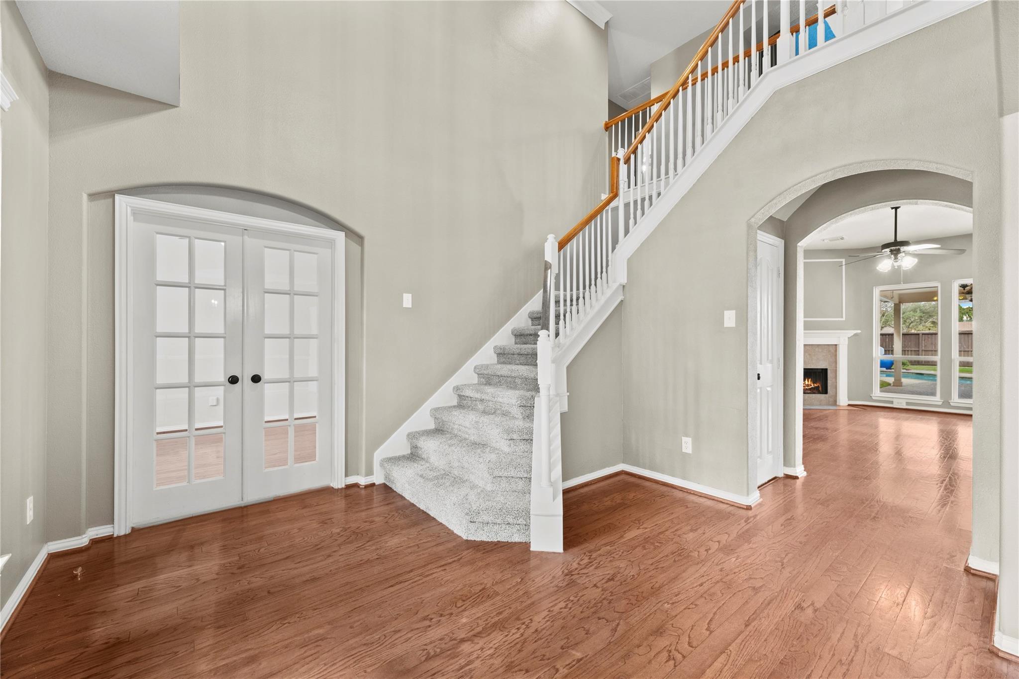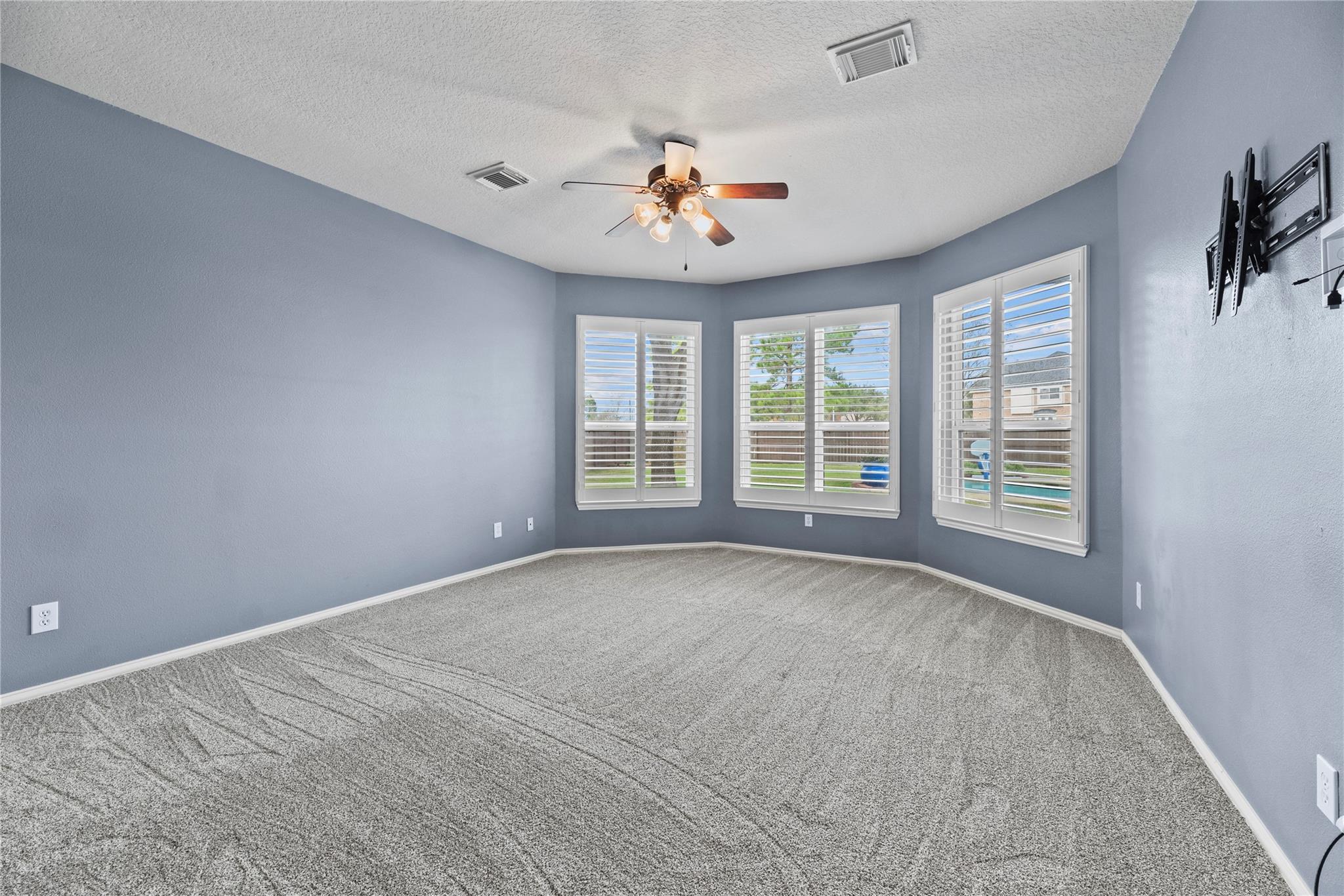 /monthStunning home located in Woodcreek Reserve. Formal Dining Room. Study is spacious and has French Doors for privacy. Family room opens to the kitchen with large windows to view the oversized back yard with covered patio and pool. Beautiful kitchen is complete with double ovens, gas cooktop and tons of storage space. Kitchen also features a kitchen desk that is a great work space to oversee homework or sitting to make your grocery list. Spacious laundry room with beverage cooler. Primary bedroom is large and very spacious primary bath with 2 closets. Solid flooring throughout the downstairs. New carpet has been installed upstairs. All secondary bedrooms are spacious. Massive media room /game room up. Comes with large screen & projector. The backyard has a sparkling pool, firepit. Property is surrounding with mature trees. Tons of room to play and garden. Homes is fully fenced with remote gate entrance. 3 car garage. Pool and yard maintenance are included in this lease.