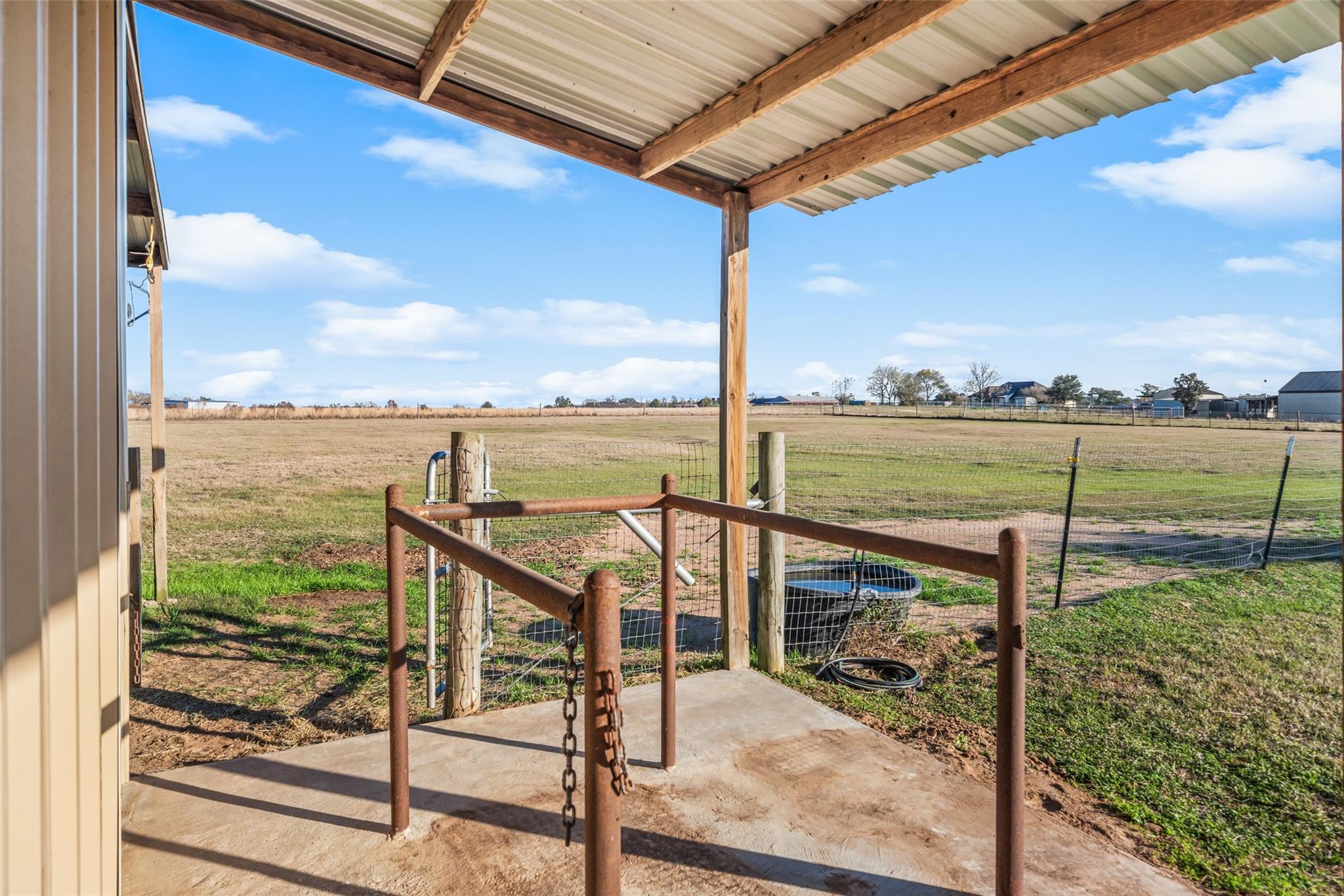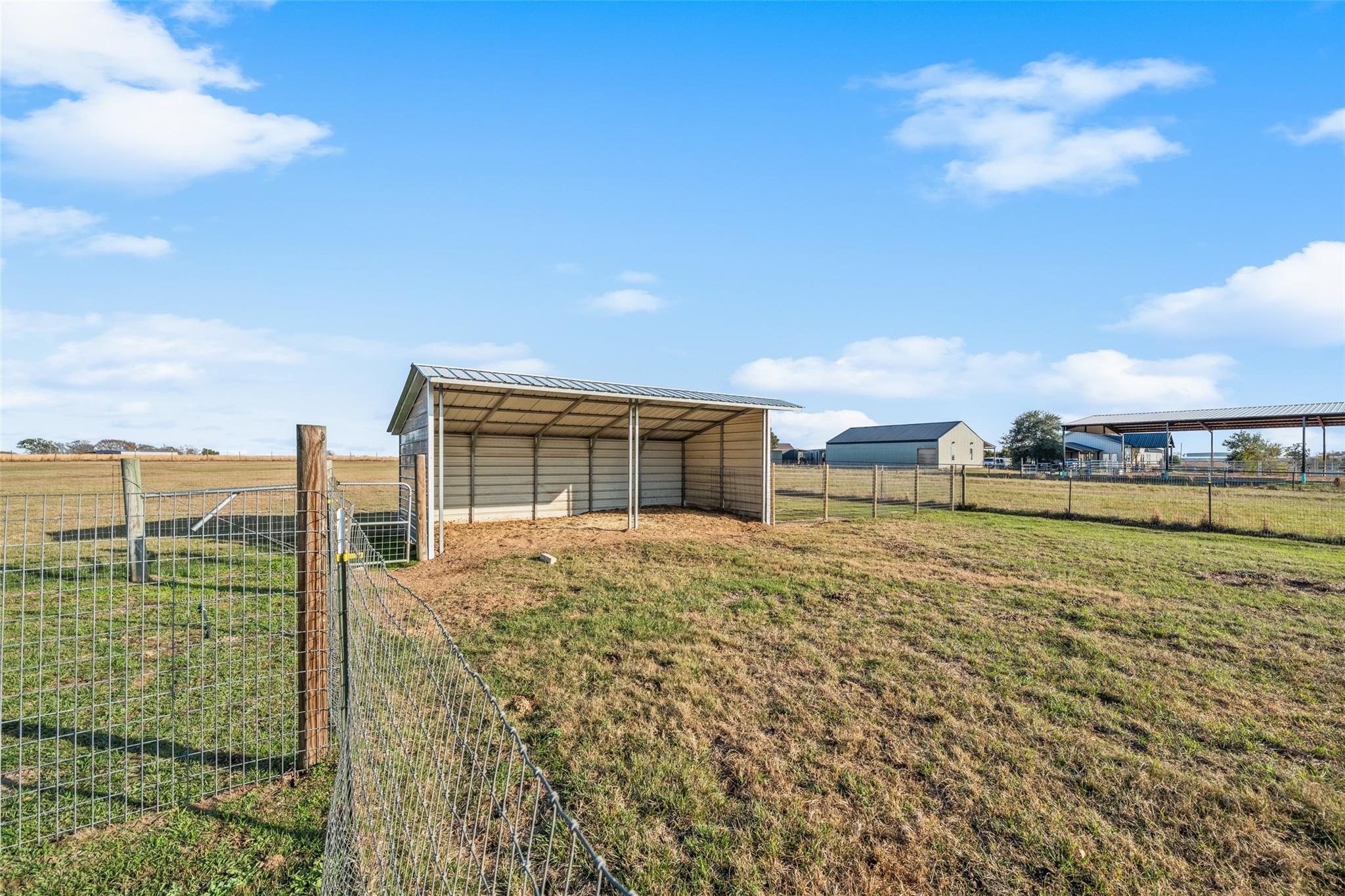 Set on fully fenced and cross-fenced acreage with 5-ft no-climb fencing, this well-maintained country property blends comfortable living with functional equestrian improvements. The home features polished concrete floors, vaulted ceilings with exposed beams, crown molding, and a floor-to-ceiling stone fireplace with wood mantel. The kitchen offers granite countertops, travertine backsplash, custom wood cabinetry, stainless steel appliances, and a farmhouse sink overlooking the backyard. Outdoor living includes a screened-in patio, extended concrete areas, and a pergola with open pasture views. The horse barn measures approximately 30x32 and includes two 10x12 stalls, a 10x10 feed room, water to the barn, and a 14-foot covered overhang. Additional improvements include a sprinkler system around the house, new fencing, a new roof installed in 2024, & HVAC replaced in 2021. A private drive, mature trees, & open pasture complete this versatile property with space to grow & room to roam.